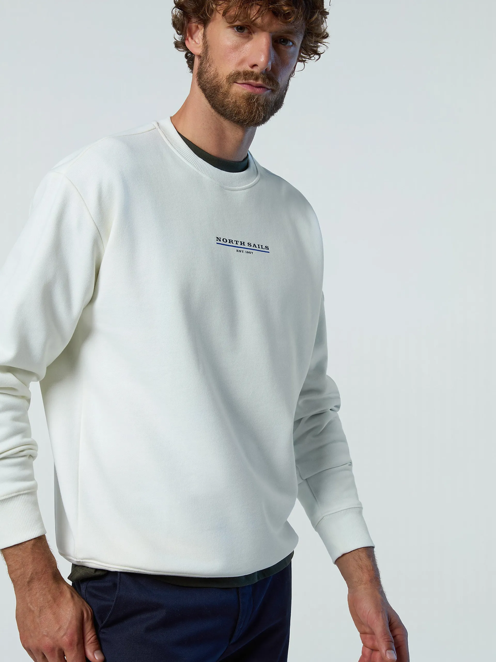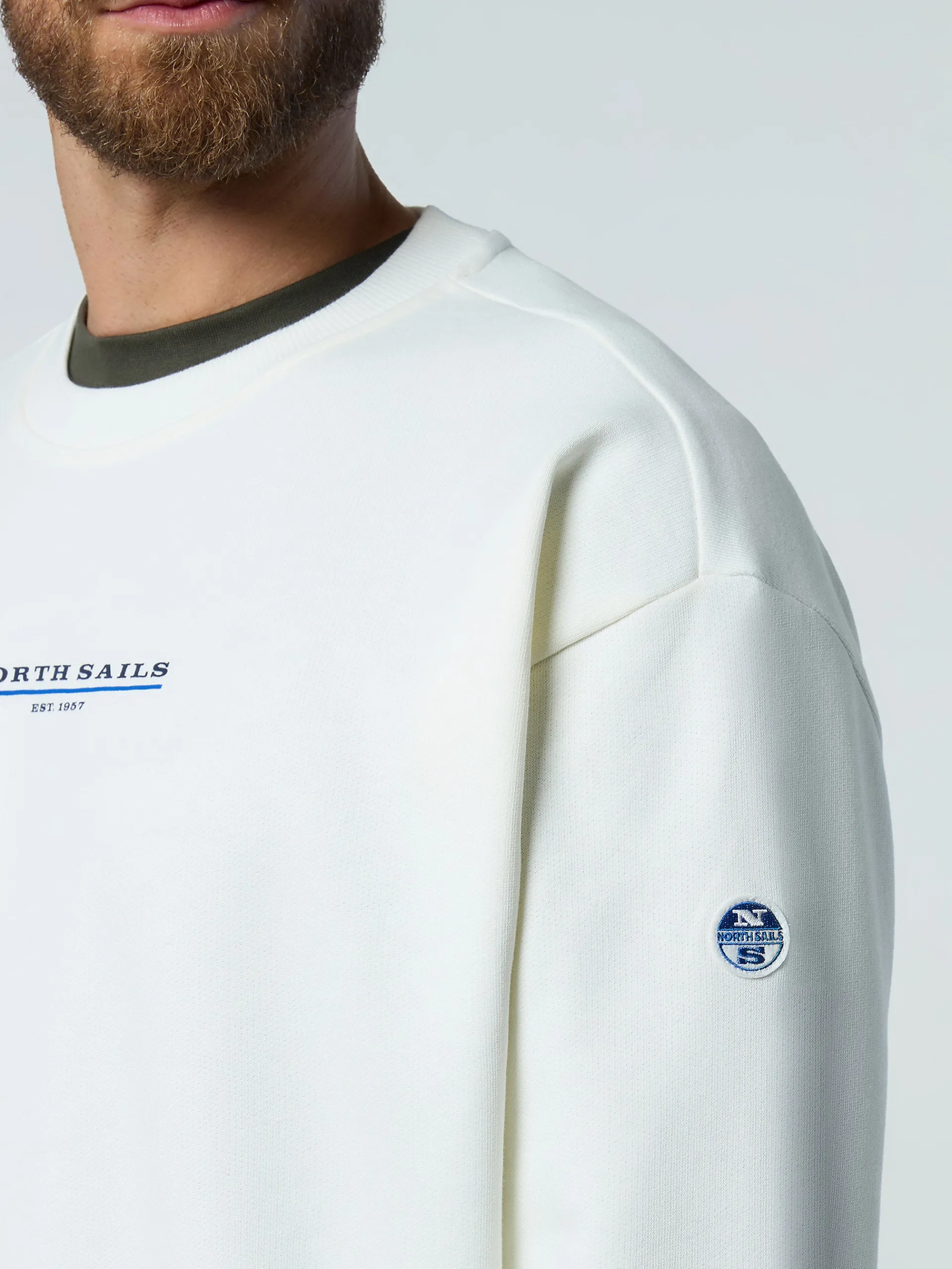 La felpa da uomo pensata per i momenti leisure e le occasioni quotidiane. Il modello è realizzato in cotone organico coltivato con un consumo di acqua limitato rispetto alle fibre tradizionali ed estremamente soffice sulla pelle. Si caratterizza per il lettering North Sails a rilievo dall'effetto gommato che crea un ricercato effetto tattile.