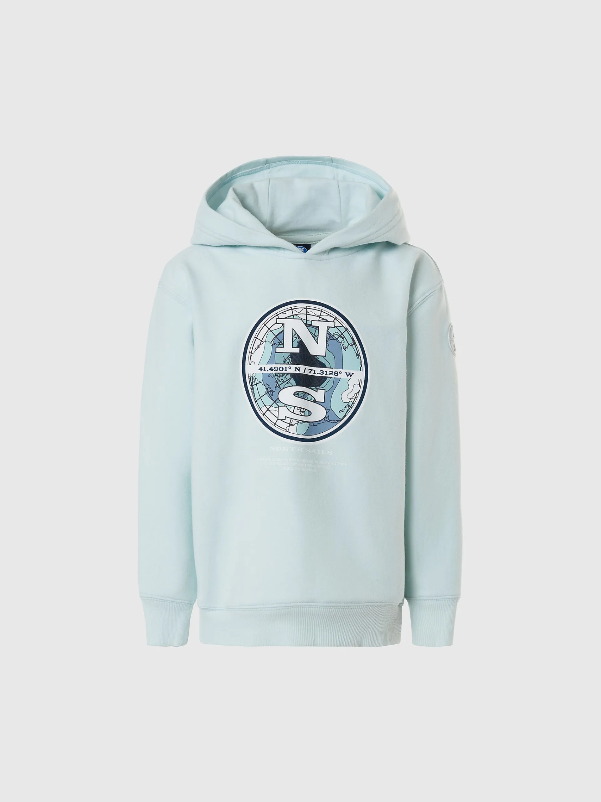 Questa felpa con cappuccio da bambino è realizzata in cotone organico stretch, trattato con un finish super soffice effetto pesca. La stampa grafica sul davanti richiama la nostra passione per l'avventura e la protezione dell'oceano: un'espressione orgogliosa del DNA North Sails.