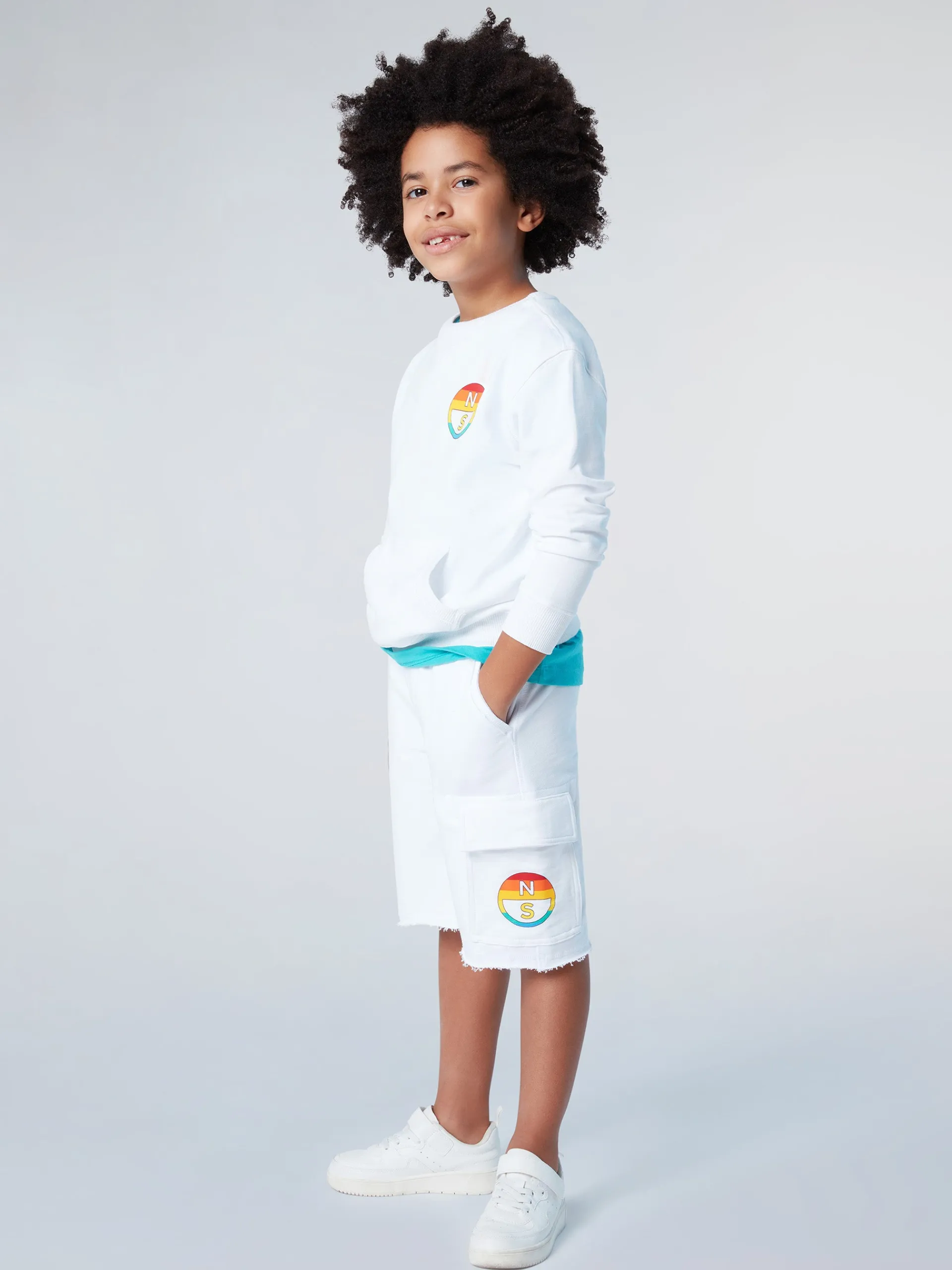 La felpa North Sails da bambino dal design accogliente e moderno. Realizzato in cotone organico fiammato a basso impatto ambientale, il modello si caratterizza per lo sprone a V d'ispirazione sport e le comode tasche a marsupio. Il logo reinterpretato con i colori dell'arcobaleno è la nota grafica vivace che aggiorna il look.
