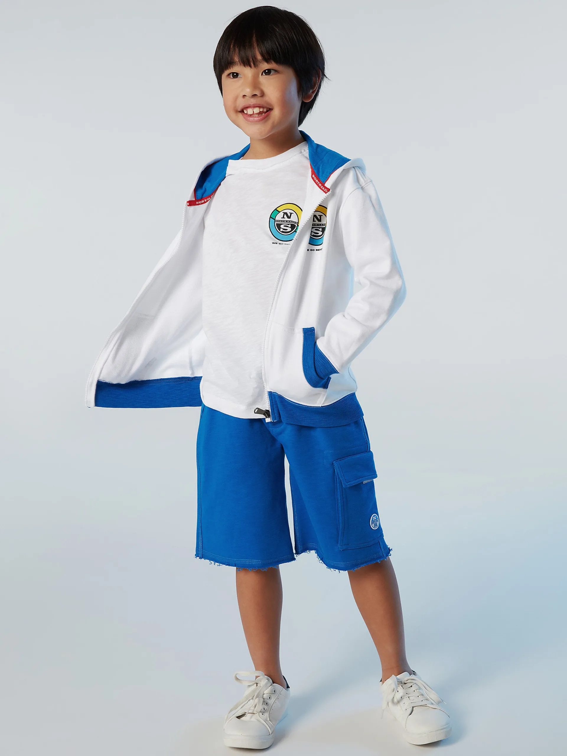 Questa felpa con cappuccio è l'elemento grafico ironico che aggiorna il guardaroba dei bambini. Realizzata in cotone organico fiammato che riduce le emissioni e il consumo d'acqua. La stampa grafica sul retro celebra la nostra passione per l'Oceano. I bordi a costine dal colore a contrasto e la chiusura con zip offrono massimo comfort.