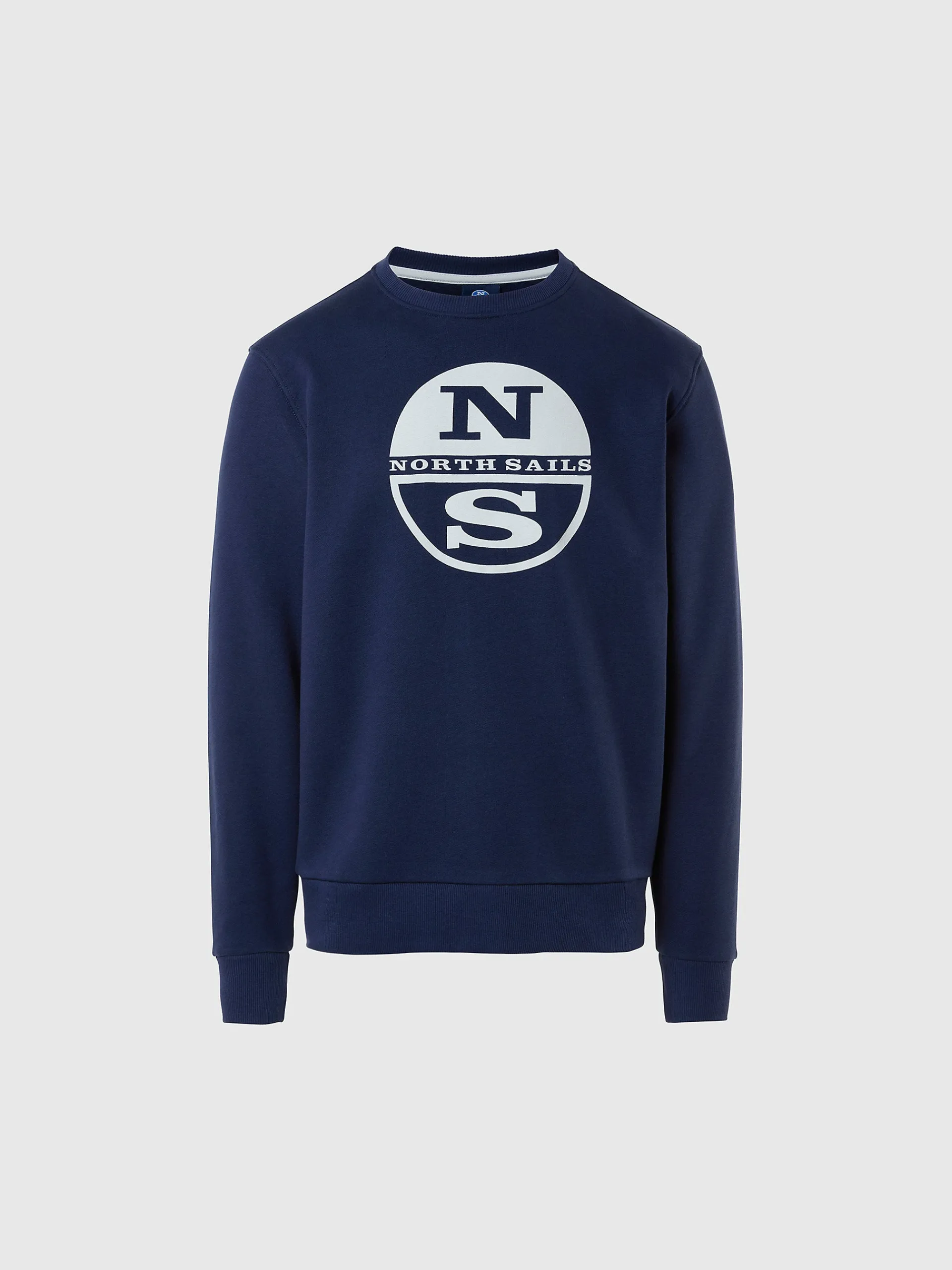 La felpa girocollo che esprime in ogni dettaglio lo spirito North Sails. Perfetto per lo sport e il tempo libero, il modello è realizzato in cotone organico che riduce il consumo di acqua e le emissioni rispetto alle fibre tradizionali. Si caratterizza per il maxi logo stampato sul davanti per una decisa dichiarazione di stile.