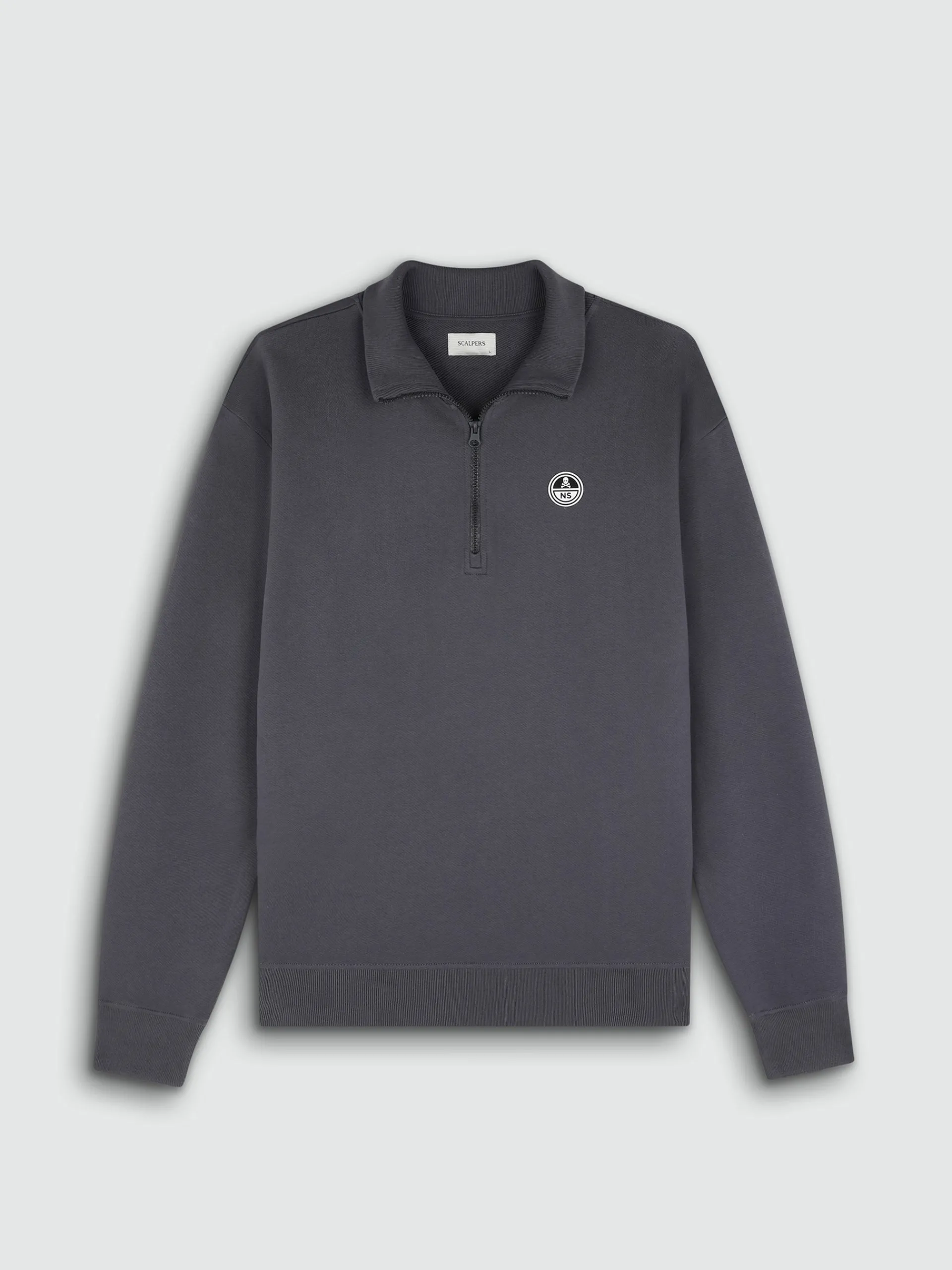 L'essenziale per il passaggio di stagione. Questa felpa a collo alto è realizzata in collaborazione con Scalpers ed è proposta in puro cotone con mezza zip per la massima praticità. Il logo ufficiale della collaborazione aggiunge un tocco esclusivo.