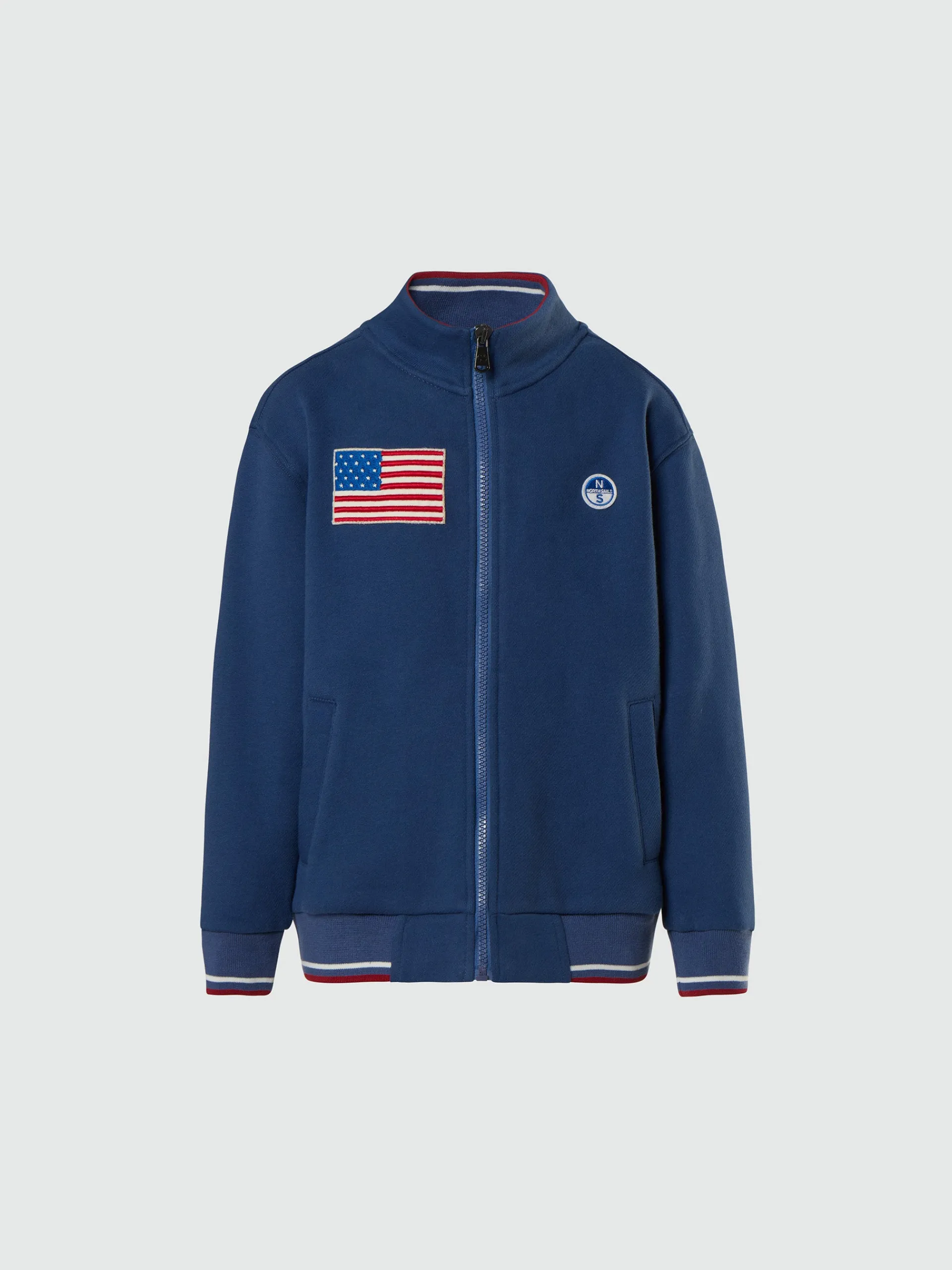 Questa felpa in cotone organico è perfetta per i giorni di scuola e il tempo libero. Il modello è impreziosito con la patch della bandiera americana in tessuto riciclato che conferma il nostro impegno per il consumo circolare. Il collo alto e la chiusura con zip rendono il capo comodo da indossare e abbinare a t-shirt o camicie per costruire look a strati.