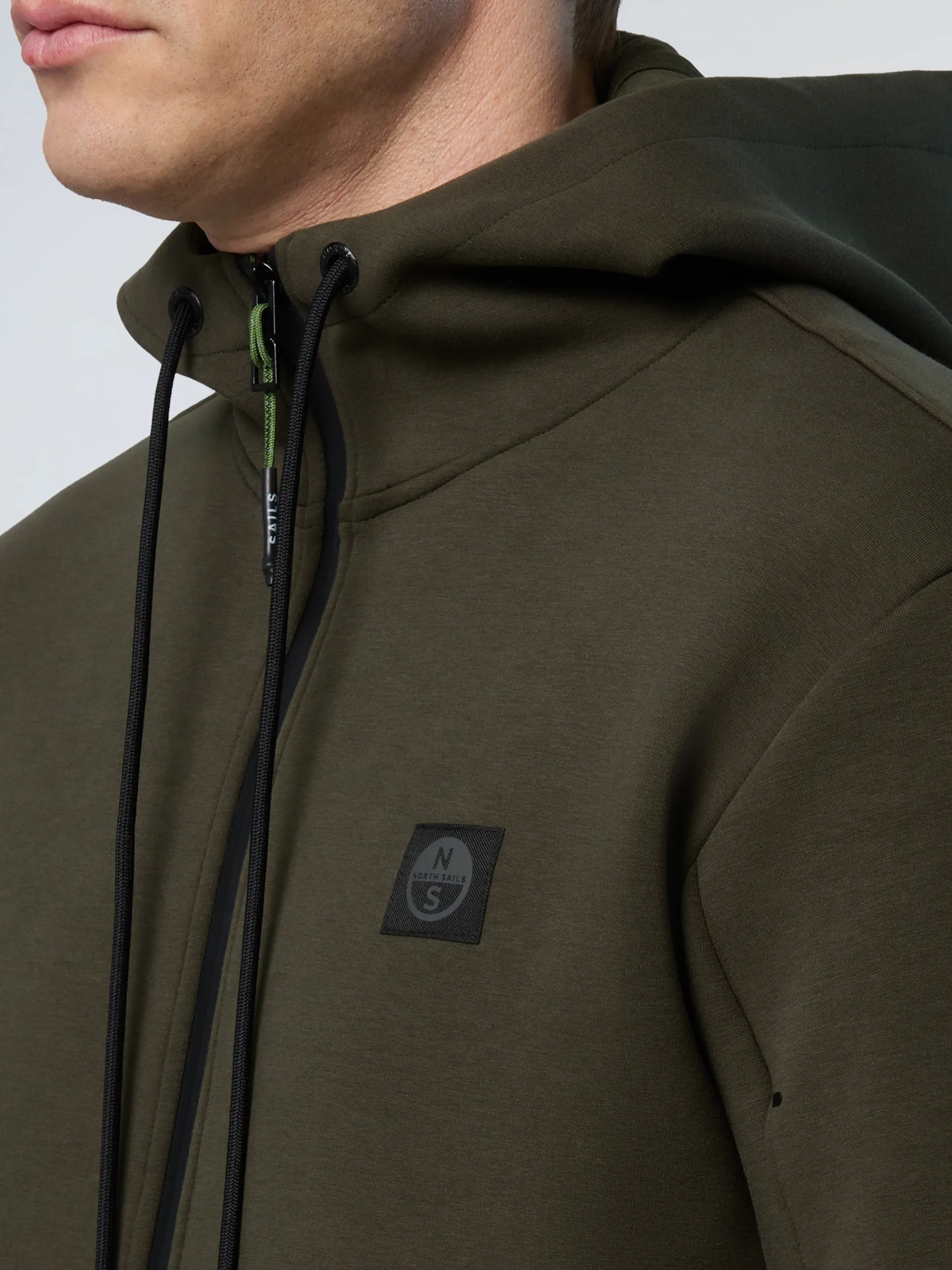 La felpa con cappuccio da uomo che offre protezione e stile durante le avventure outdoor. Il modello è realizzato in scuba stretch, ottenuto da fibre riciclate che dimostrano il nostro impegno positivo per l'oceano. La chiusura e le tasche con zip impermeabile offrono protezione ed enfatizzano il design sofisticato del capo.