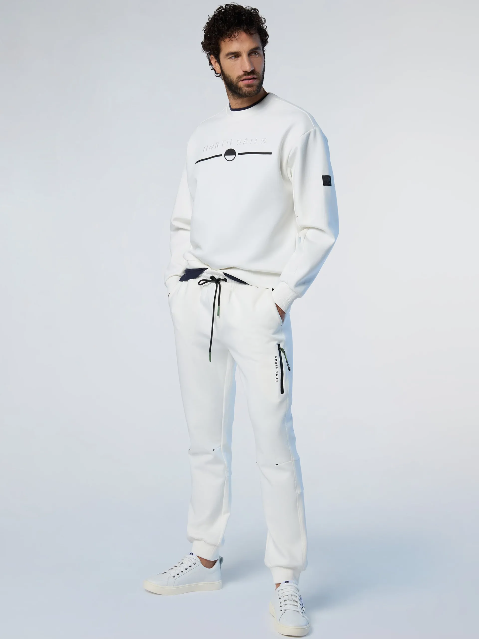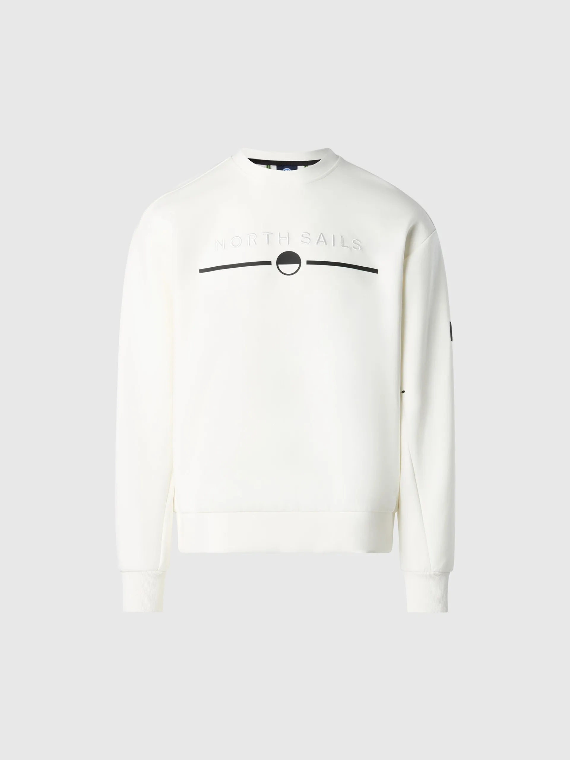 Un essenziale del guardaroba casual diventa interprete dei codici North Sails. Questa felpa da uomo è realizzata in scuba stretch, ottenuto da fibre riciclate che dimostrano il nostro impegno positivo per l'oceano. La tasca con zip invisibile sulla manica aggiunge un tocco funzionale, mentre il logo tono su tono enfatizza l'attitudine sofisticata del capo.