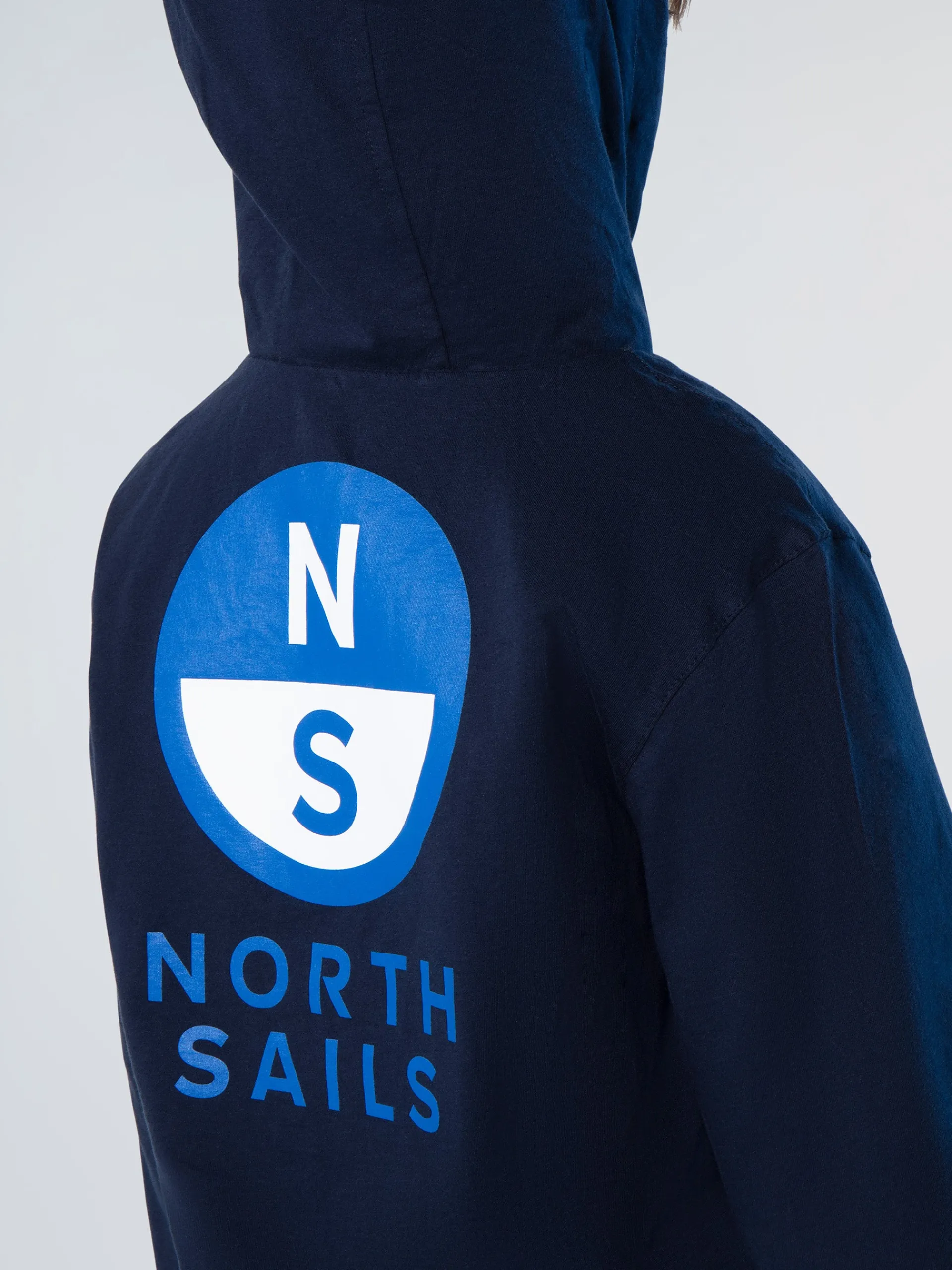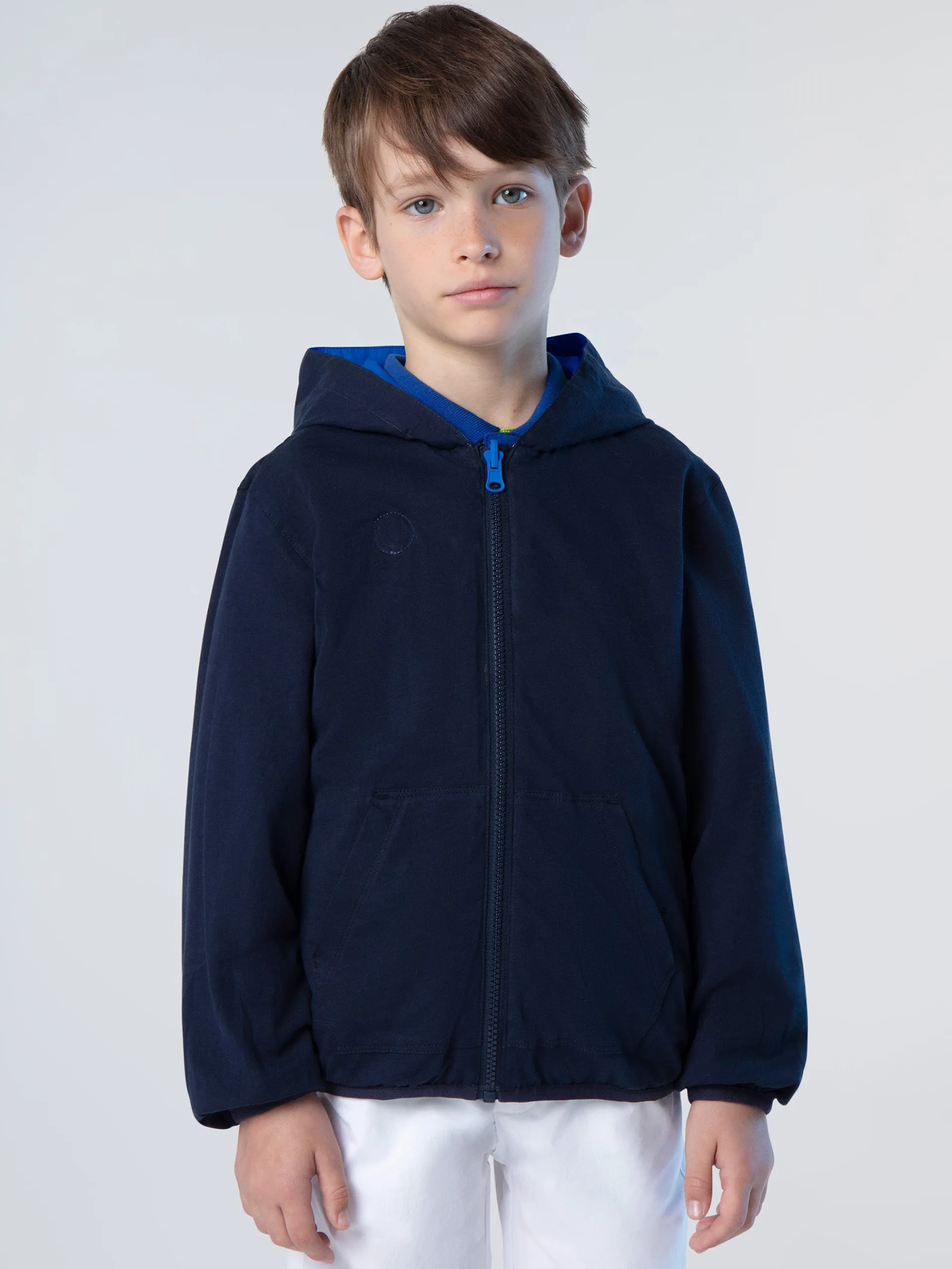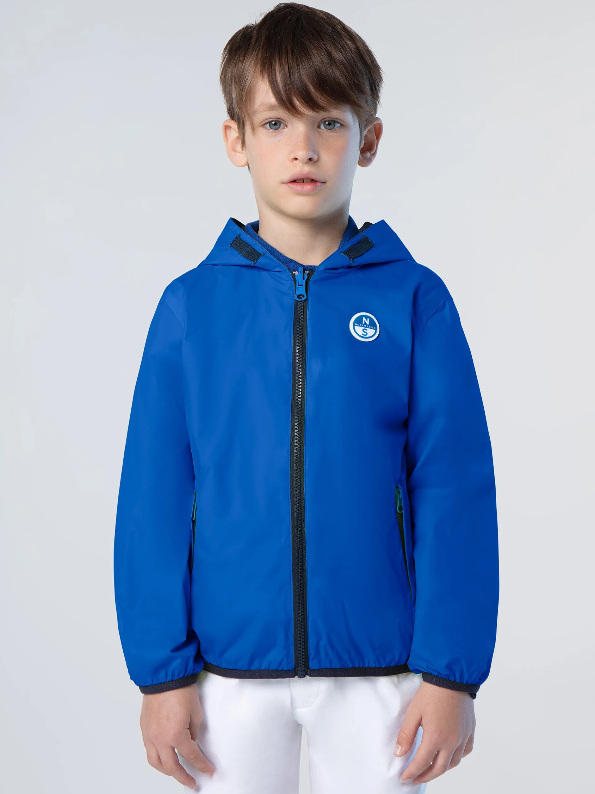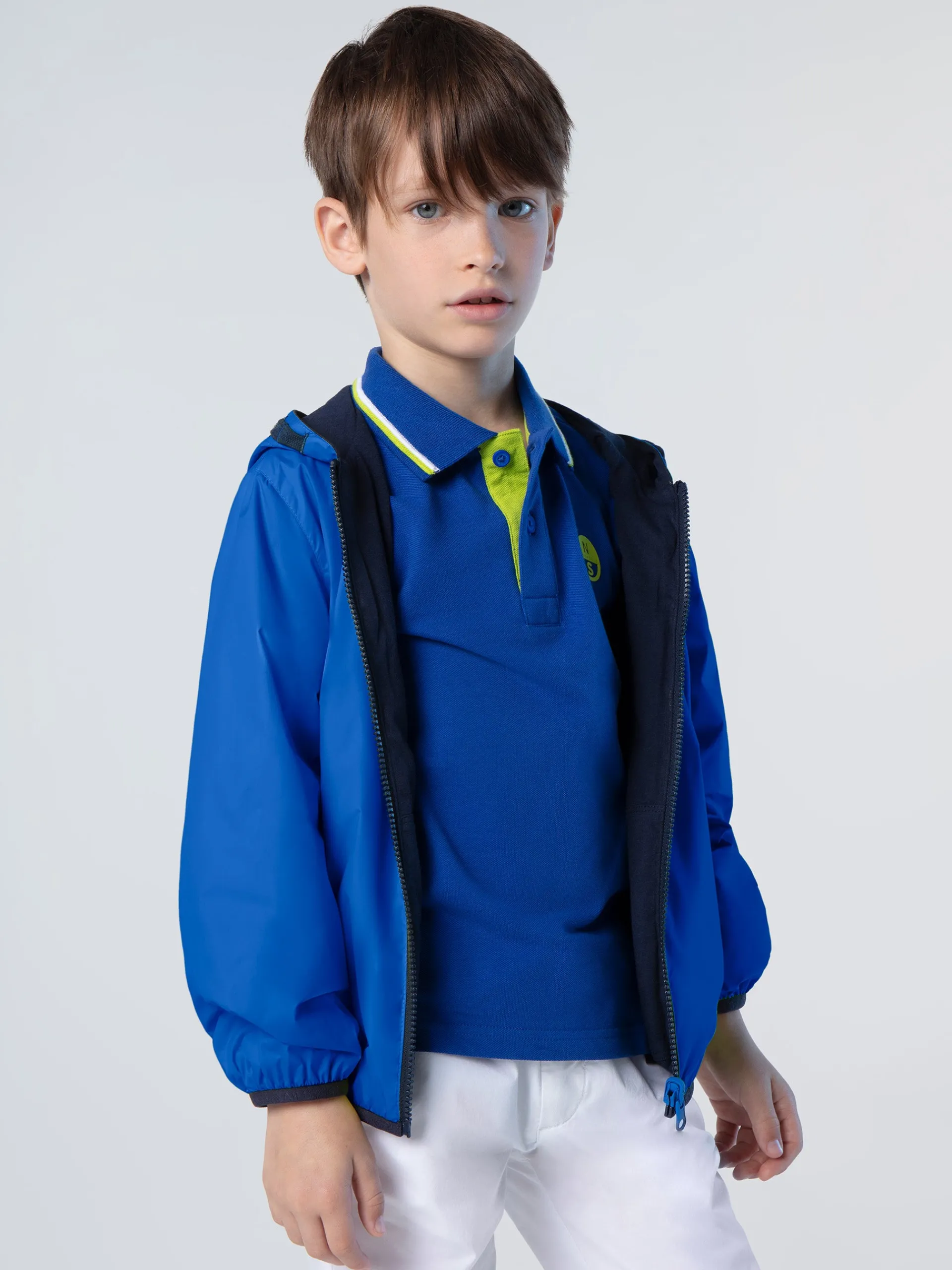 La giacca a vento dal design reversibile che arricchisce il guardaroba mini me della mezza stagione. Il modello combina un lato in nylon riciclato che riduce i rifiuti e un lato in jersey dal colore a contrasto con maxi logo North Sails. Il cappuccio regolabile e i bordi elasticizzati proteggono dal vento, mentre le tasche con zip sono comode per contenere gli oggetti quotidiani.