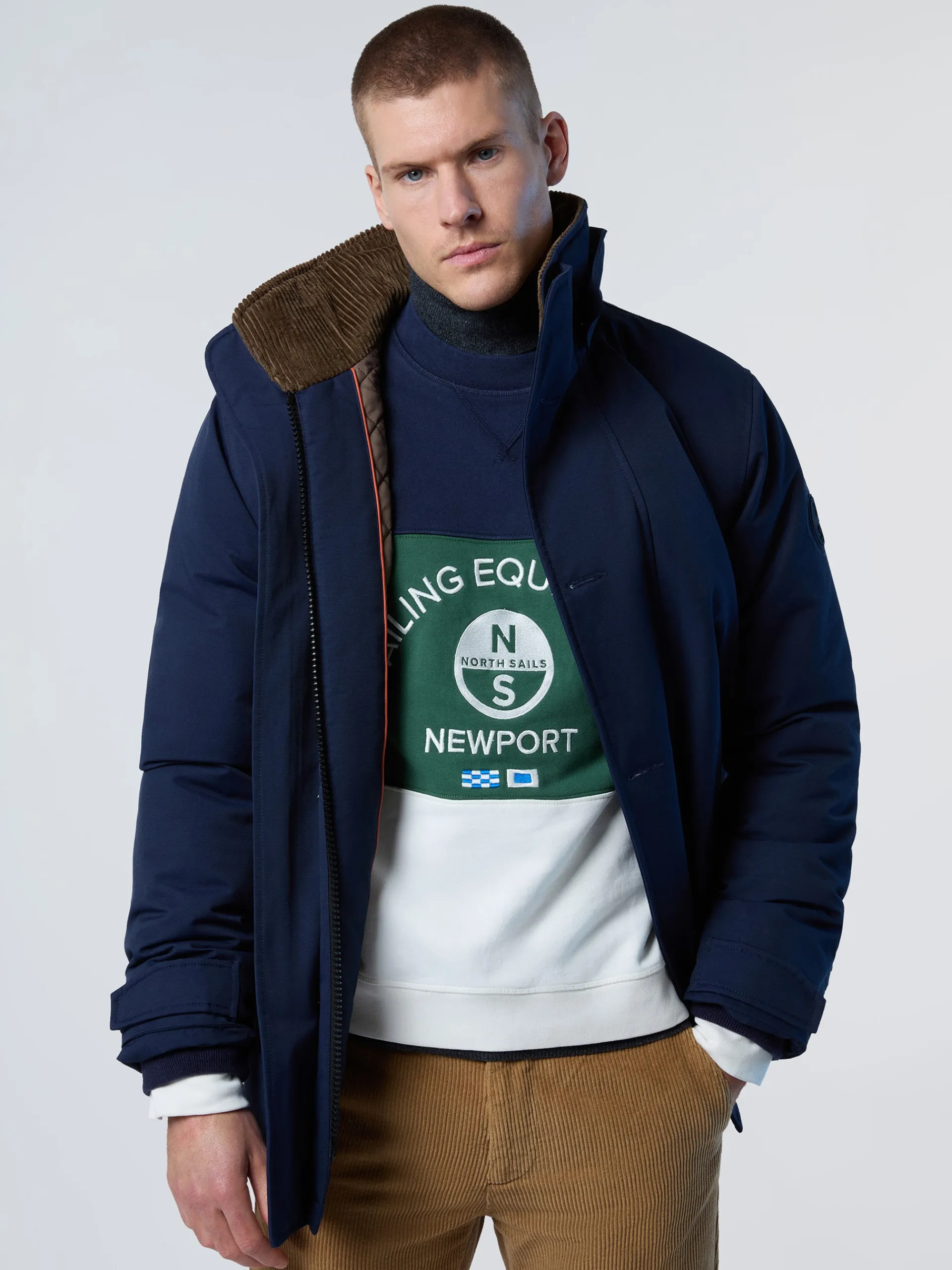 Lo stile heritage North Sails incontra la funzionalità moderna. La giacca Crest si ispira alle iconiche giacche da vela degli anni '80 e '90 ed è realizzata in canvas 3 layer dall'aspetto opaco. Il collo alto con fodera in velluto richiama le origini nautiche del capo, mentre la trapuntatura interna a rombi e l'imbottitura in REPREVE® assicurano un buon grado di calore durante le giornate fredde. Il logo North Sails sulla manica aggiunge un tocco esclusivo.