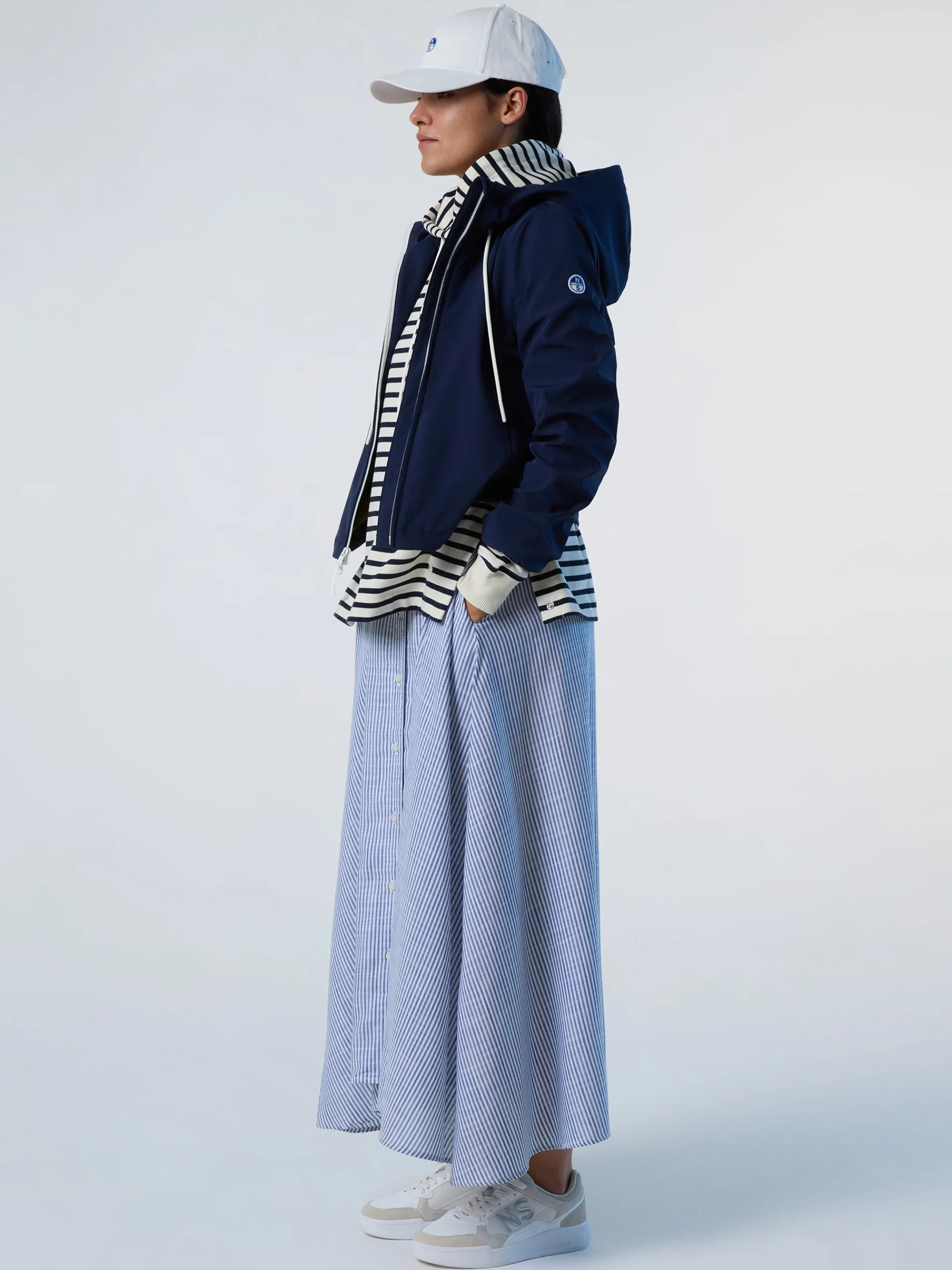 Elegante, leggera e accogliente, la giacca Ellen è un vero must have per le avventure outdoor. Il modello è realizzato in softshell riciclato resistente all'acqua che dimostra il nostro impegno per la difesa dell'oceano. Si caratterizza per la silhouette femminile con bordi strech e coulisse che creano aderenza e bloccano il passaggio del vento. La patch North Sails sulla manica completa il look con un tocco esclusivo.
