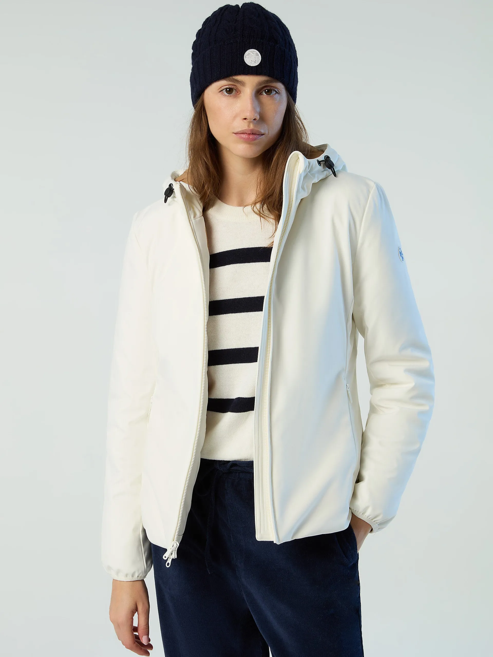 La giacca Ellen da donna combina ricerca estetica e spirito outdoor. Il modello ha una silhouette slim ed è realizzato in softshell riciclato a triplo strato, leggero sulla pelle e gentile con il pianeta. Impermeabile, antivento e ultra traspirante, si caratterizza per l'imbottitura in piuma sintetica e le tasche funzionali con zip invisibile. La patch logata aggiunge un tocco North Sails.
