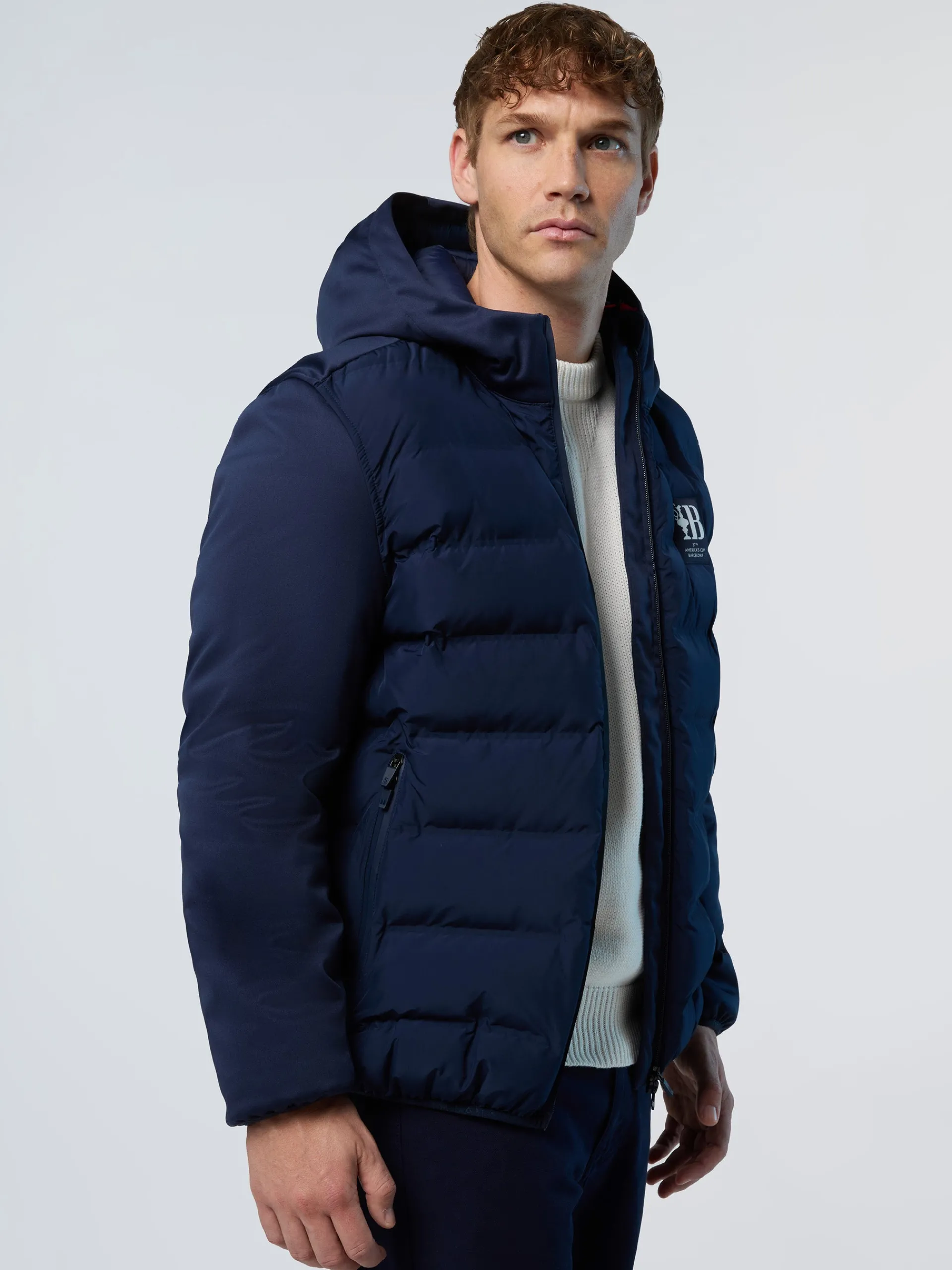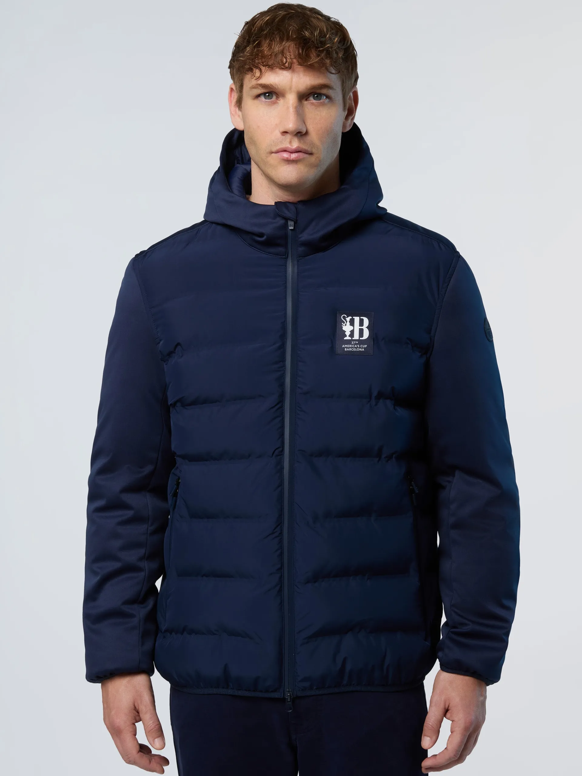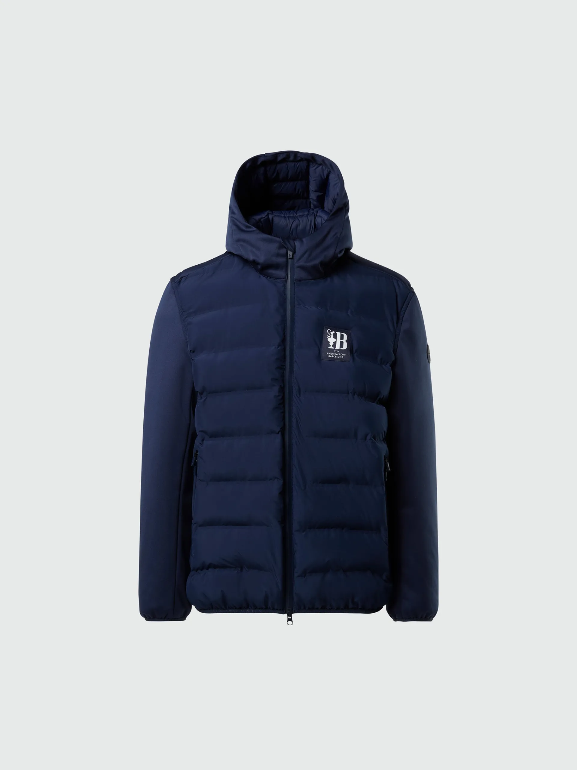 Functional styling meets the prestigious allure and heritage charm of the iconic America's Cup. Celebrating the 37th edition of the historic sailing race, this men's jacket combines an ultra-lightweight water-repellent quilted front with a breathable softshell back: two recycled fabrics that help protect the planet while delivering on protection and versatility for in between seasons. Complete with practical two-way zipper pockets and the official regatta branding on the chest for an exclusive touch.