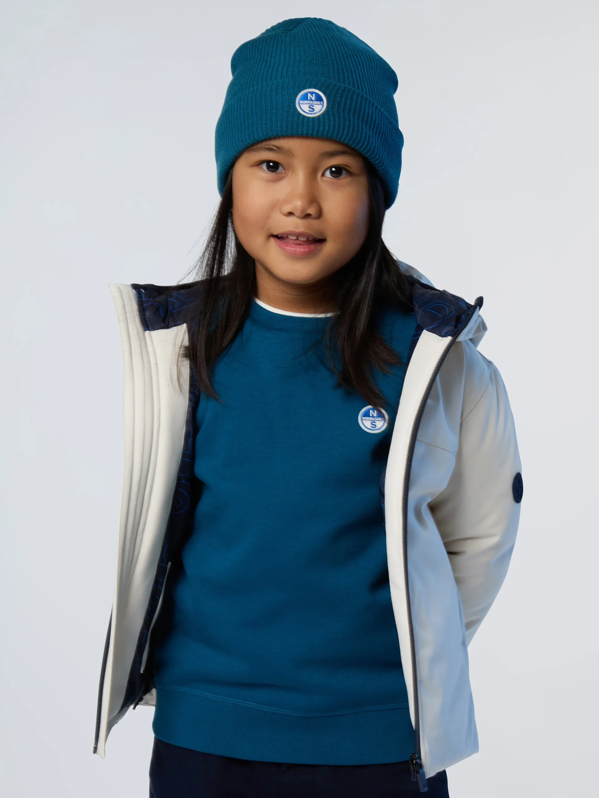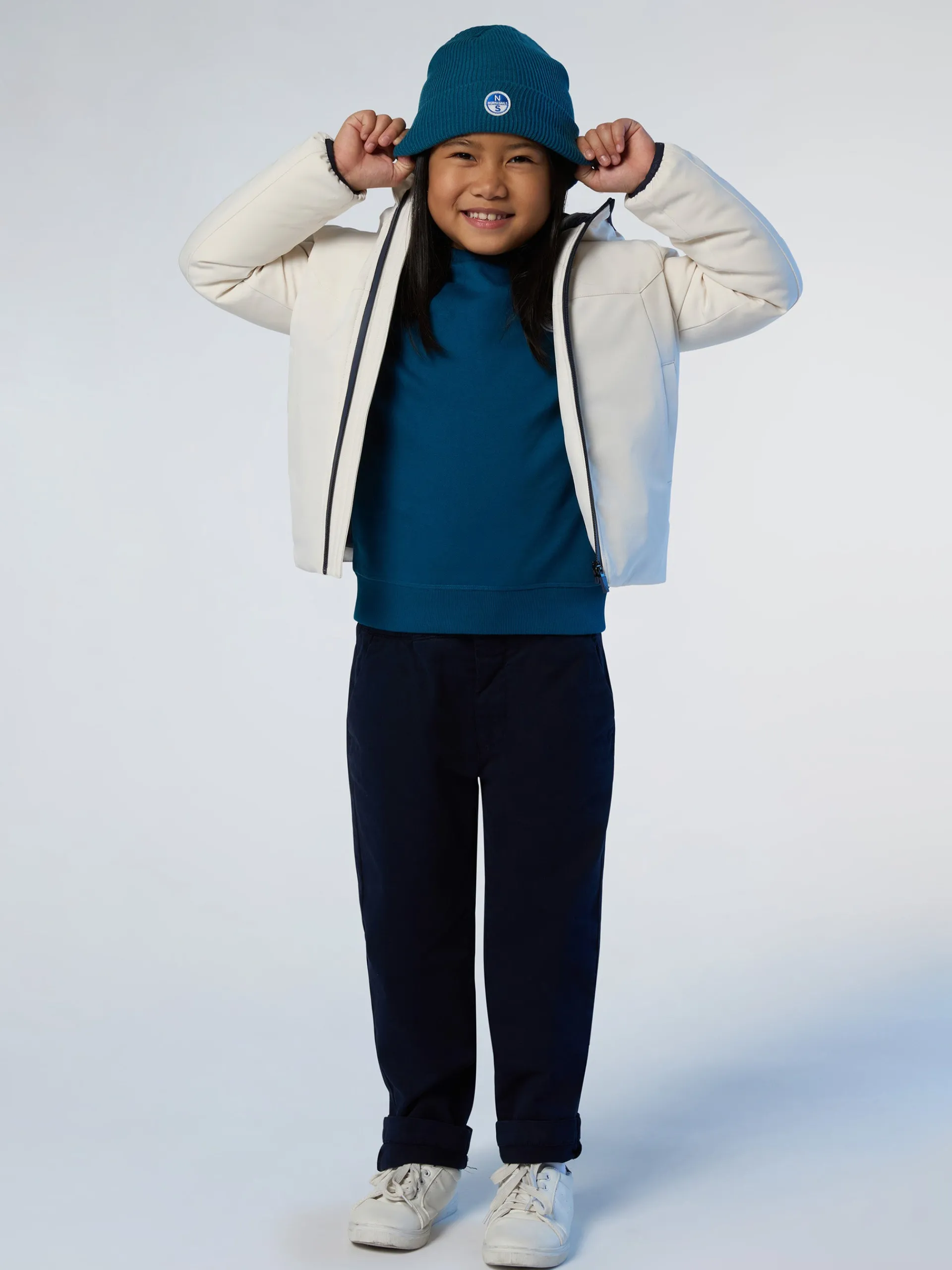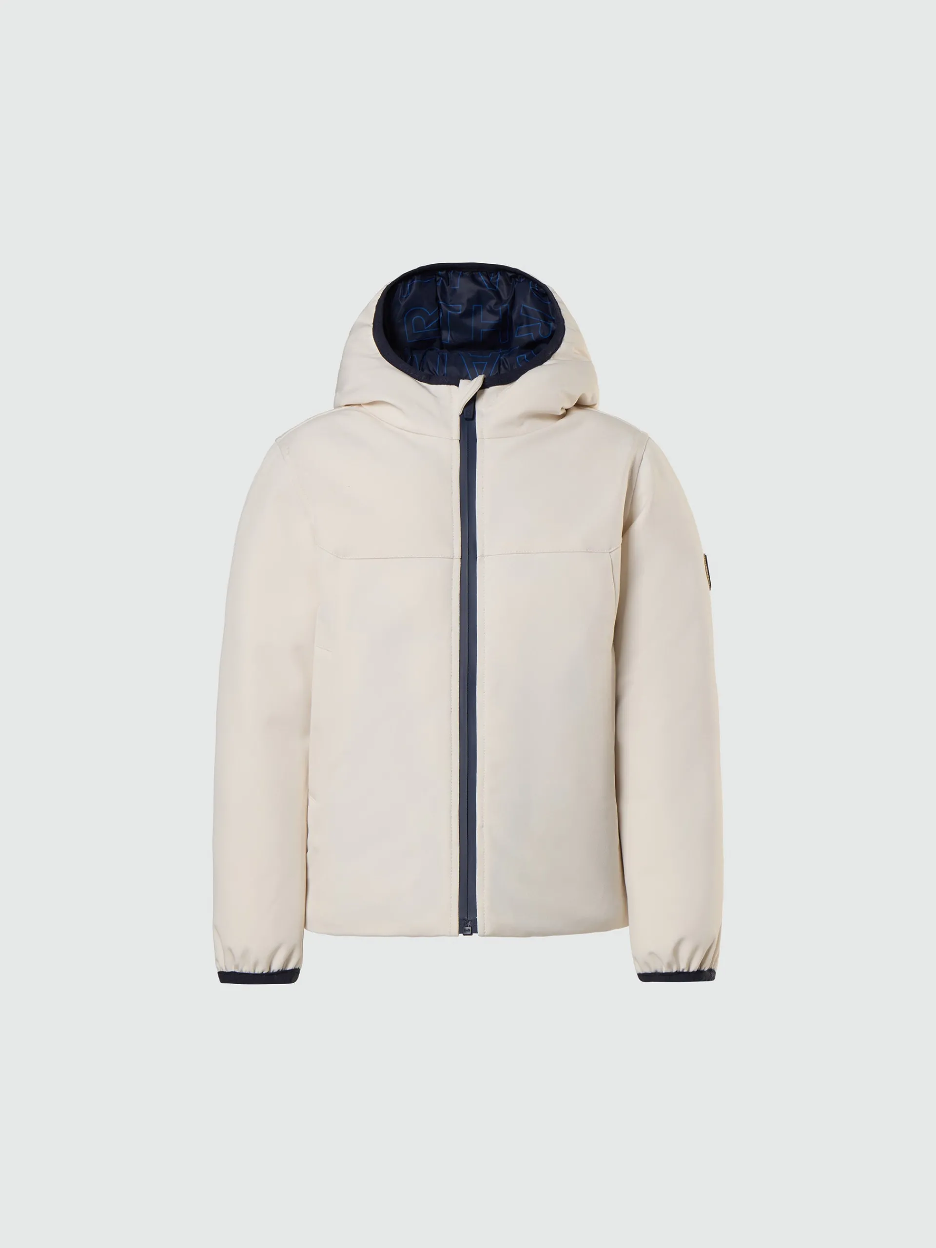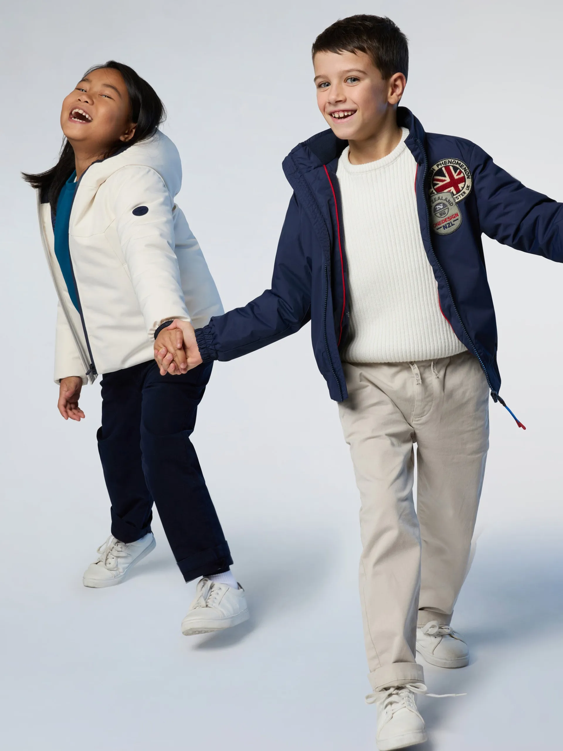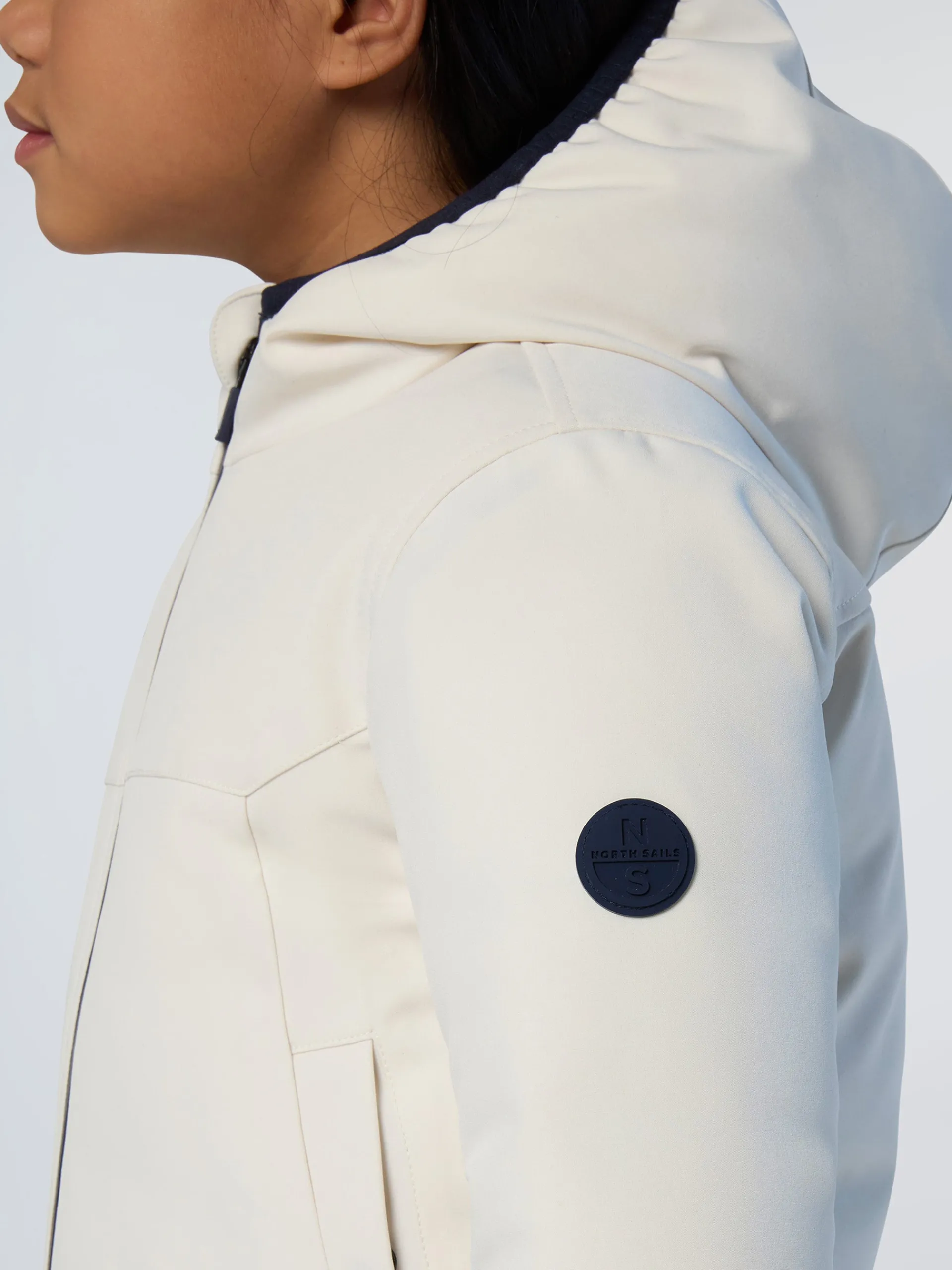 La giacca Hobart da bambino è il nostro heritage outdoor declinato per i piccoli esploratori. Il modello è realizzato in softshell riciclato con trattamento idrorepellente che protegge durante le attività outdoor e rispetta il pianeta. Si caratterizza per la fodera interna logata, la zip impermeabile e la coulisse al fondo per personalizzare la vestibilità.