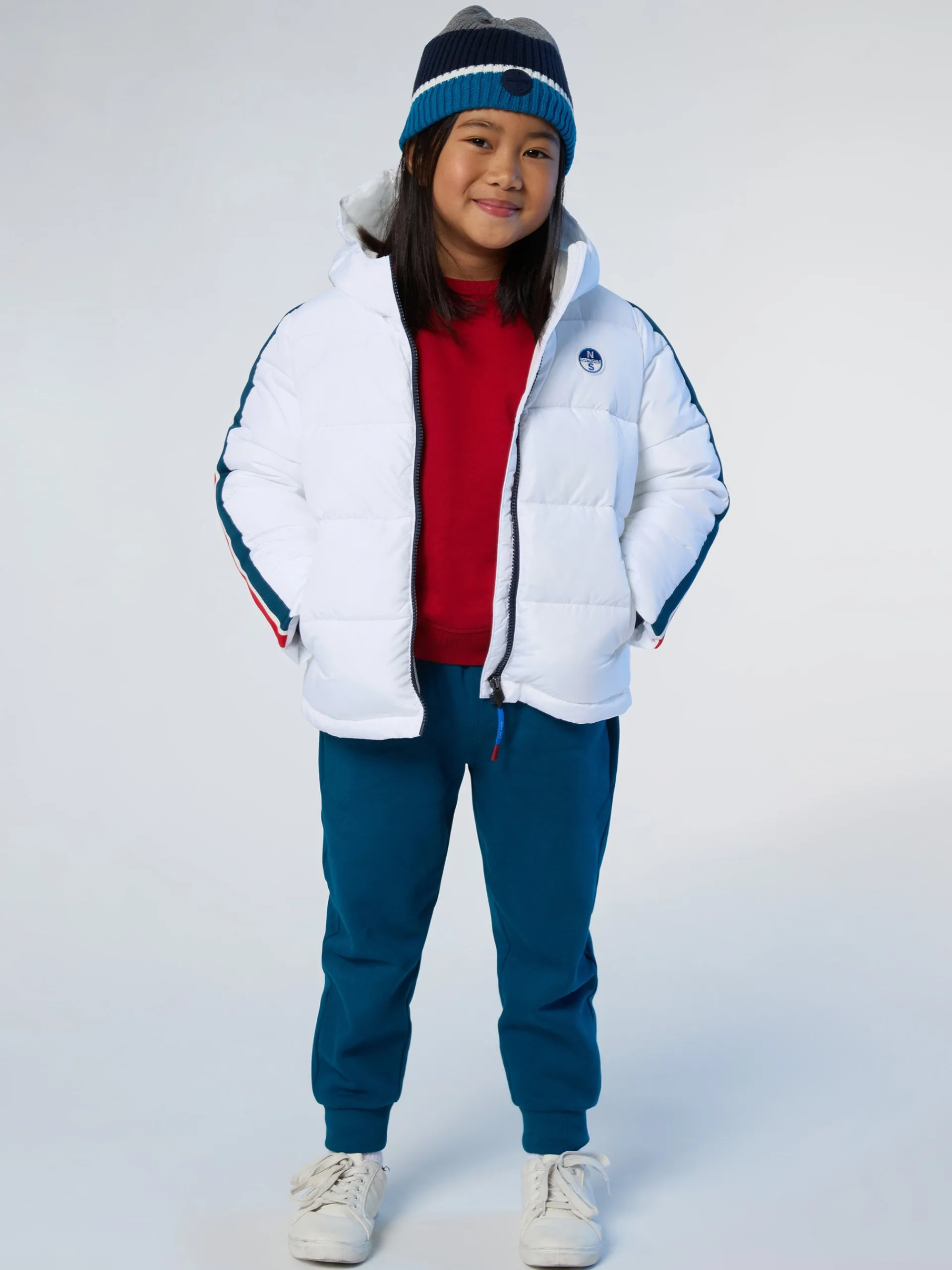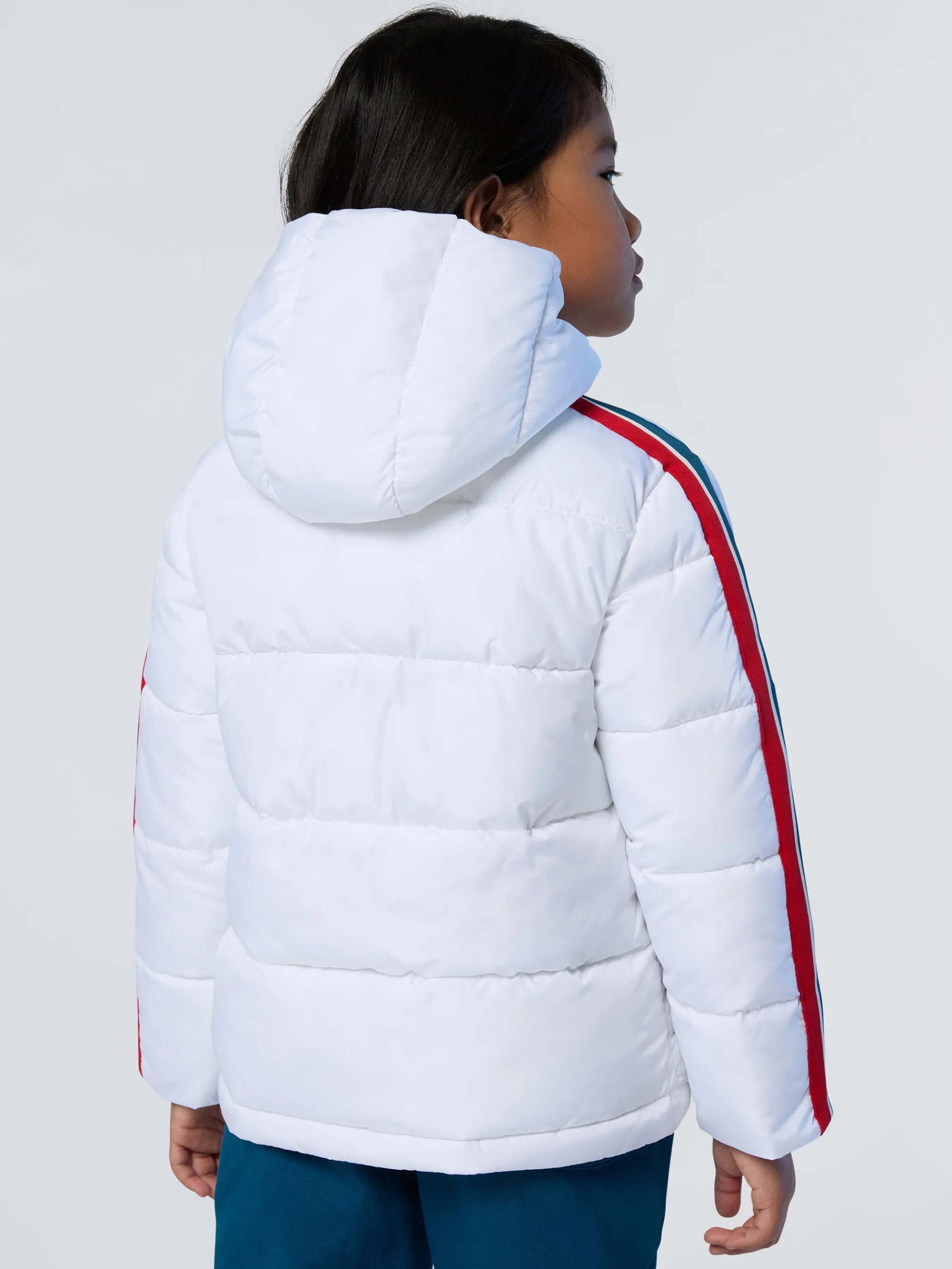 Questa giacca imbottita da bambino è realizzata con materiali che rispettano il pianeta perché ottenuti dagli avanzi di produzione delle precedenti collezioni. Si caratterizza per il cappuccio dal design accogliente e le bande colorate sulle maniche che danno un tocco dinamico al look. I polsi in tessuto stretch creano aderenza, mentre il tirazip logato e la patch sul petto sono il segno iconico North Sails.