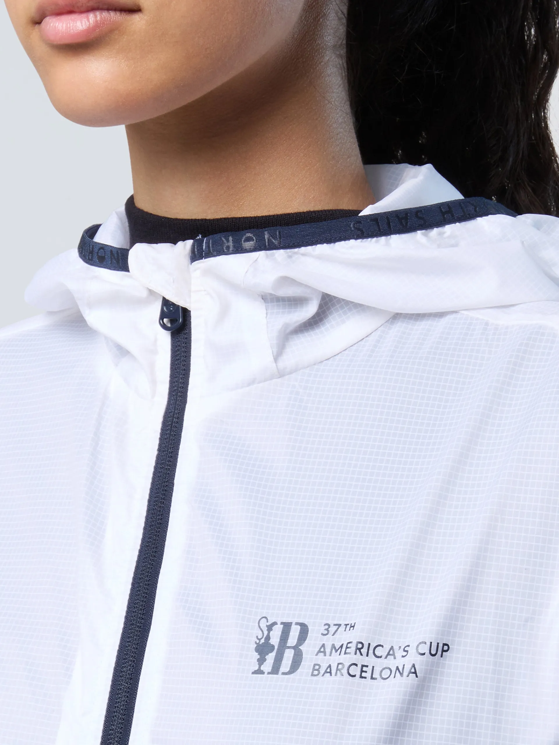 Superior functionality meets the exclusive allure of the America's Cup. This lightweight women's jacket is part of the special collection celebrating the 37th edition of the legendary sailing race, crafted from water-repellent recycled micro-ripstop in honor of our commitment to using materials that are better from the planet. Folding right up into the inside zipper pocket when you don't need it, this packable style is embellished with a classic North Sails patch on the sleeve and official regatta branding on the chest.