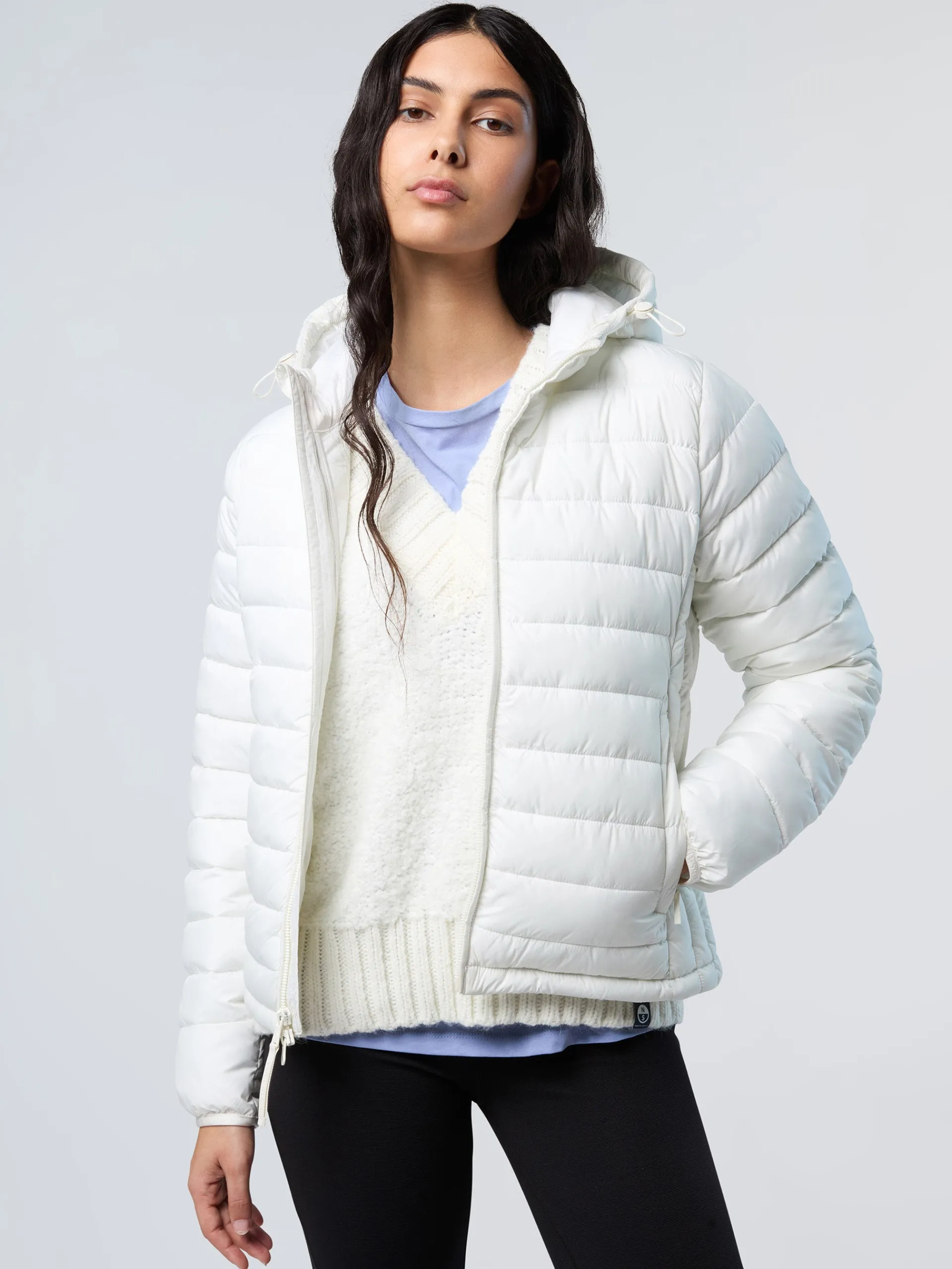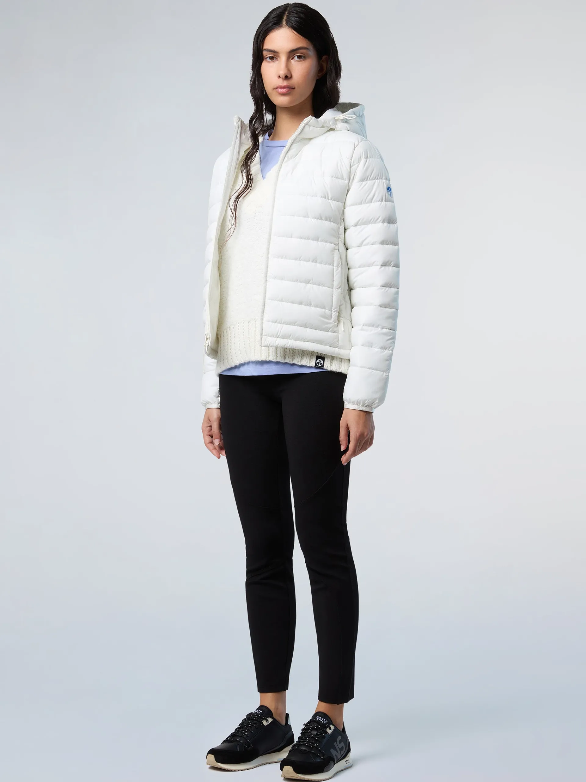Funzionale e femminile, la giacca Naomi è dedicata a chi vuole coniugare stile e protezione durante le esperienze outdoor. Il modello è realizzato in poliestere riciclato con trattamento idrorepellente, trapuntatura orizzontale e imbottitura in piuma sintetica che rispetta il pianeta. La trapuntatura verticale sui fianchi slancia la silhouette, mentre la patch North Sails sulla manica aggiunge un tocco distintivo.
