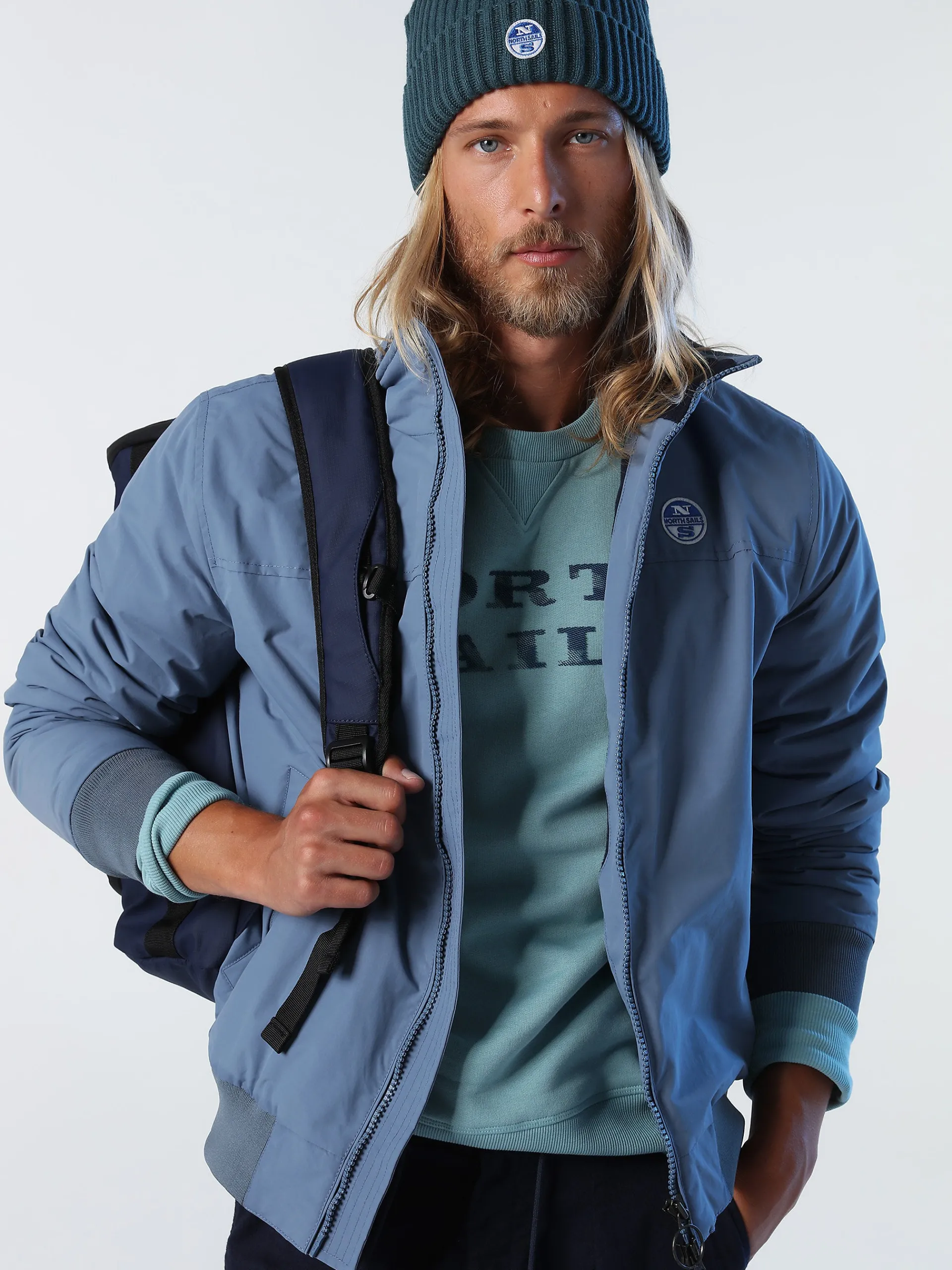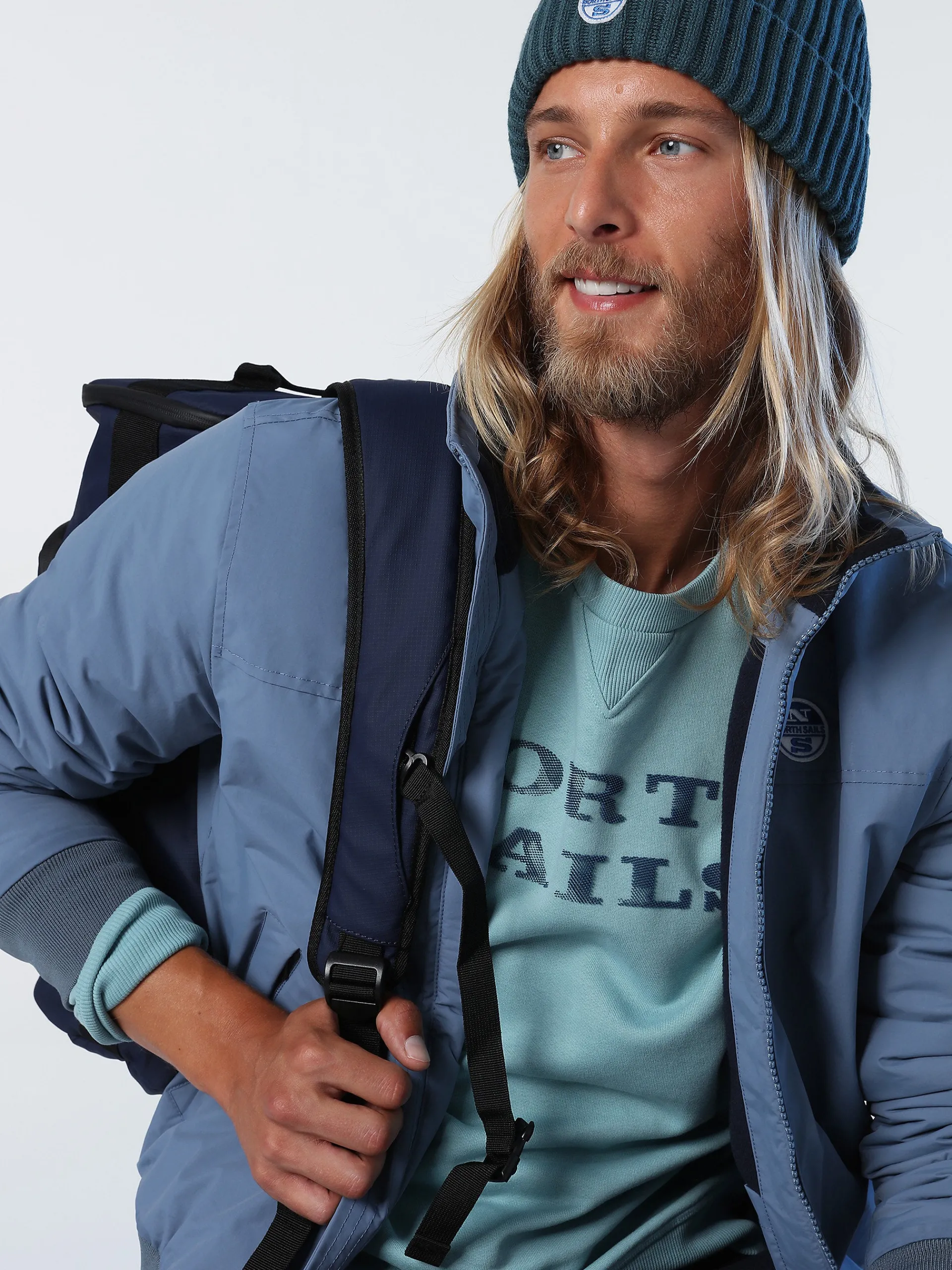 La giacca Sailor declina l'heritage North Sails in un modello contemporaneo e distintivo che aggiorna il guardaroba maschile. Realizzato in nylon riciclato, il modello interpreta l'impegno etico del brand e si caratterizza per il trattamento waterproof che offre protezione durante le uscite in barca e le attività outdoor.