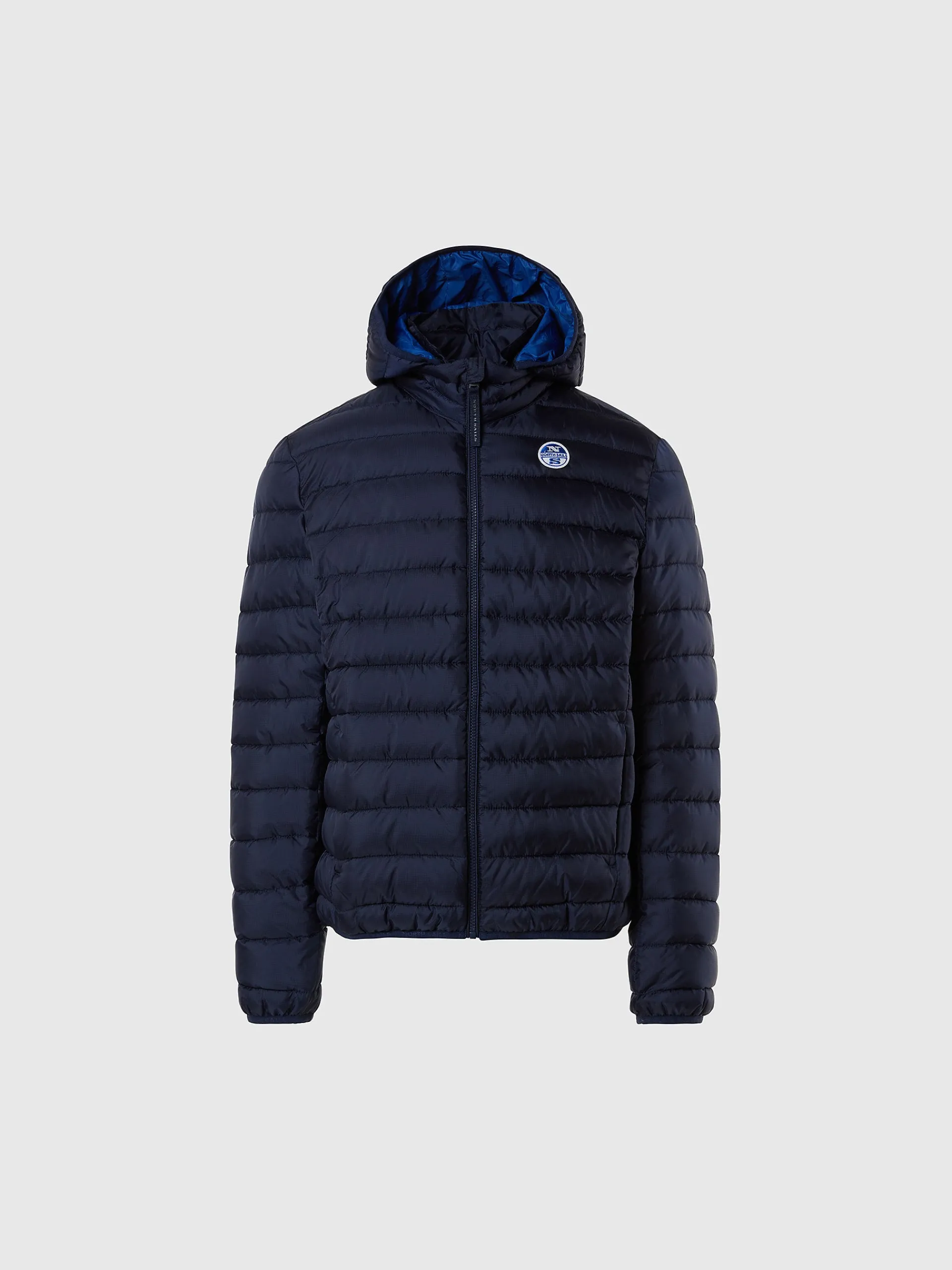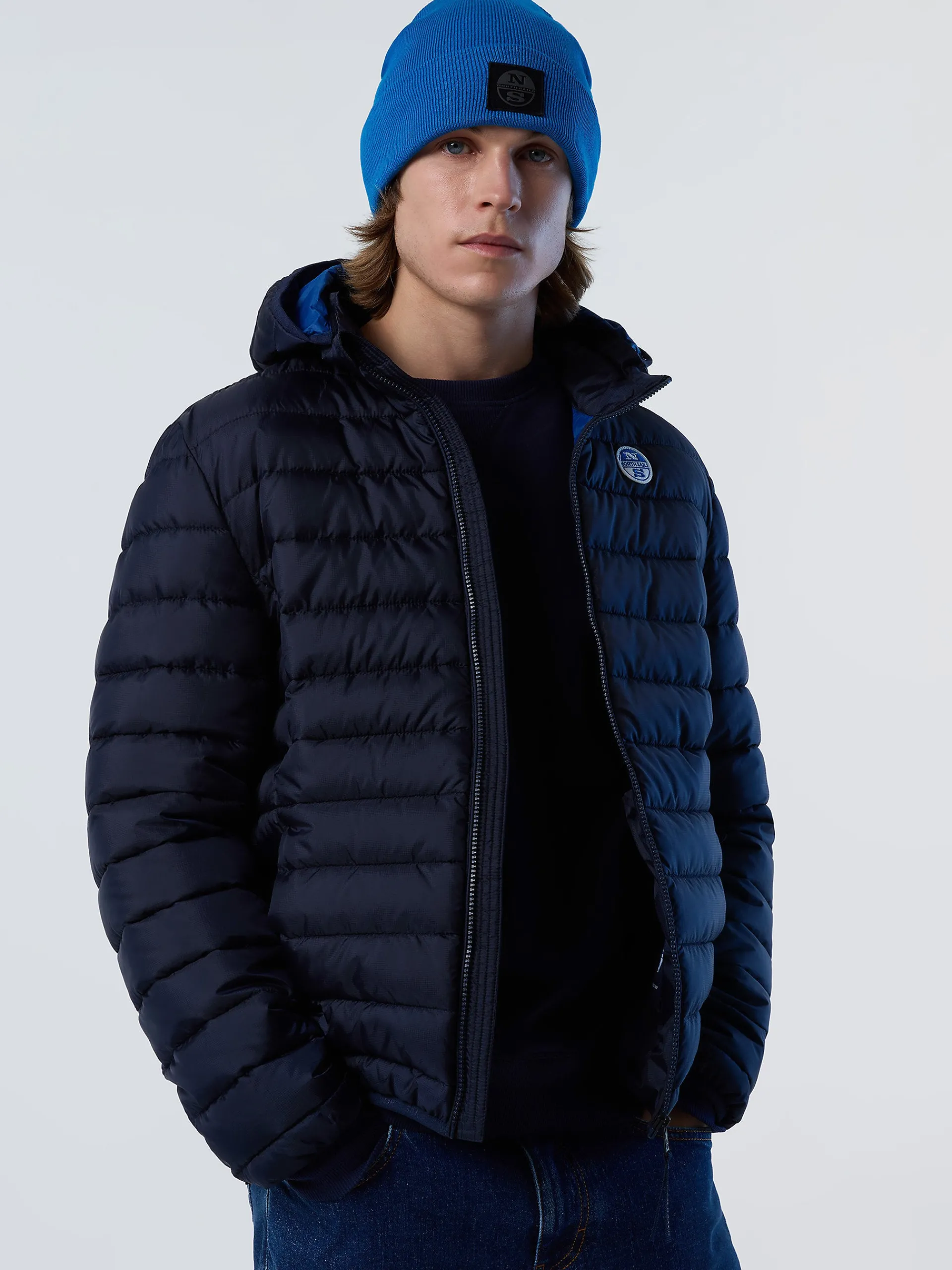 La giacca Sky è un must per chi vuole affermare il proprio stile anche durante le avventure outdoor. Il modello da uomo è realizzato in tessuto micro-ripstop riciclato con rivestimento idrorepellente e imbottitura in Repreve che riduce la quantità di plastica dispersa in mare. Si caratterizza per il cappuccio da indossare in caso di pioggia, la trapuntatura che trattiene il calore e il logo in feltro sul petto per un tocco North Sails.