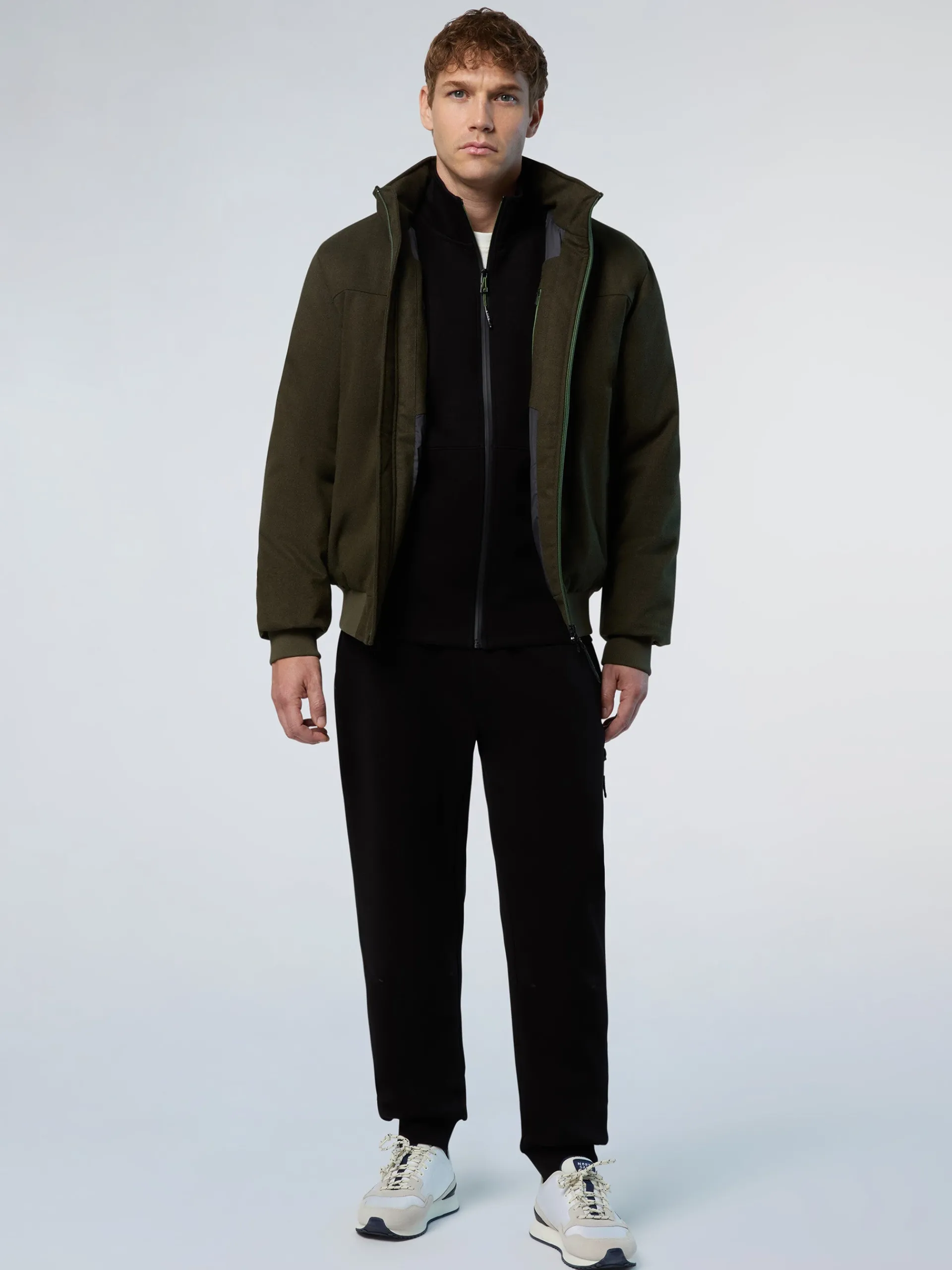 La giacca bomber Voyager Sailor combina stile, protezione e rispetto per il pianeta. Il modello è realizzato in tessuto riciclato traspirante 2 layer con un finish effetto lana piacevole al tatto. Si caratterizza per le zip impermeabili, la tasca interna e il collo alto con cappuccio ripiegabile, utile in caso di piogge improvvise. Rifinito con bordi a costine e logo North Tech sulla manica.