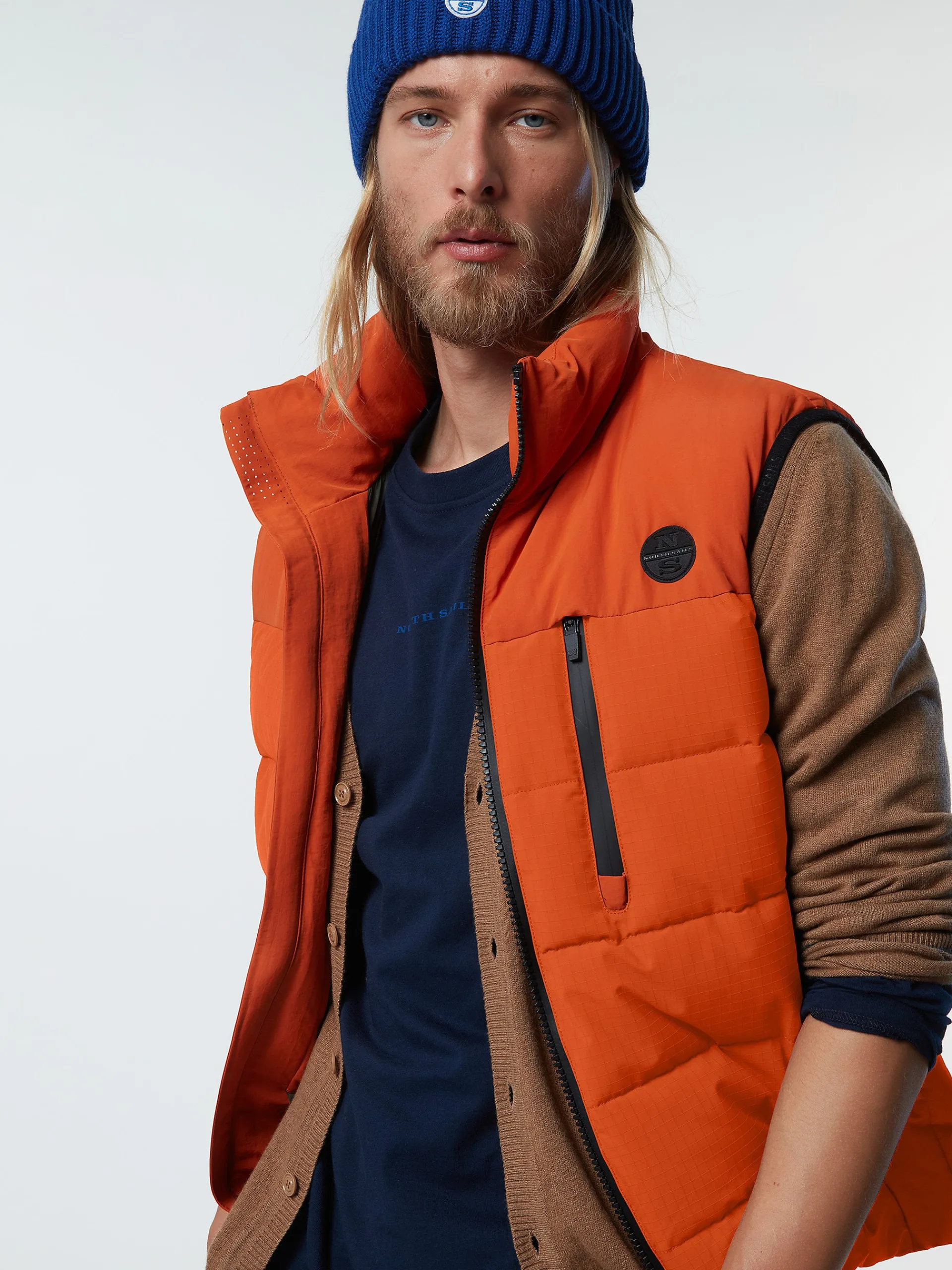 Ultra funzionale e versatile in ogni occasione, Aurora Vest è la soluzione ideale per il clima imprevedibile della mezza stagione. Nel modello si incontrano stile dinamico e rispetto per il pianeta, perchè combina ripstop e poliestere riciclati con una membrana a doppio strato traspirante e impermeabile. Progettato per le avventure outdoor, ha chiusura coperta con zip a doppio cursore, tasche con zip impermeabili e tasche interne per mettere in sicurezza il telefono e i documenti. La fodera interna dal colore a contrasto è personalizzata con il maxi lettering North Sails.