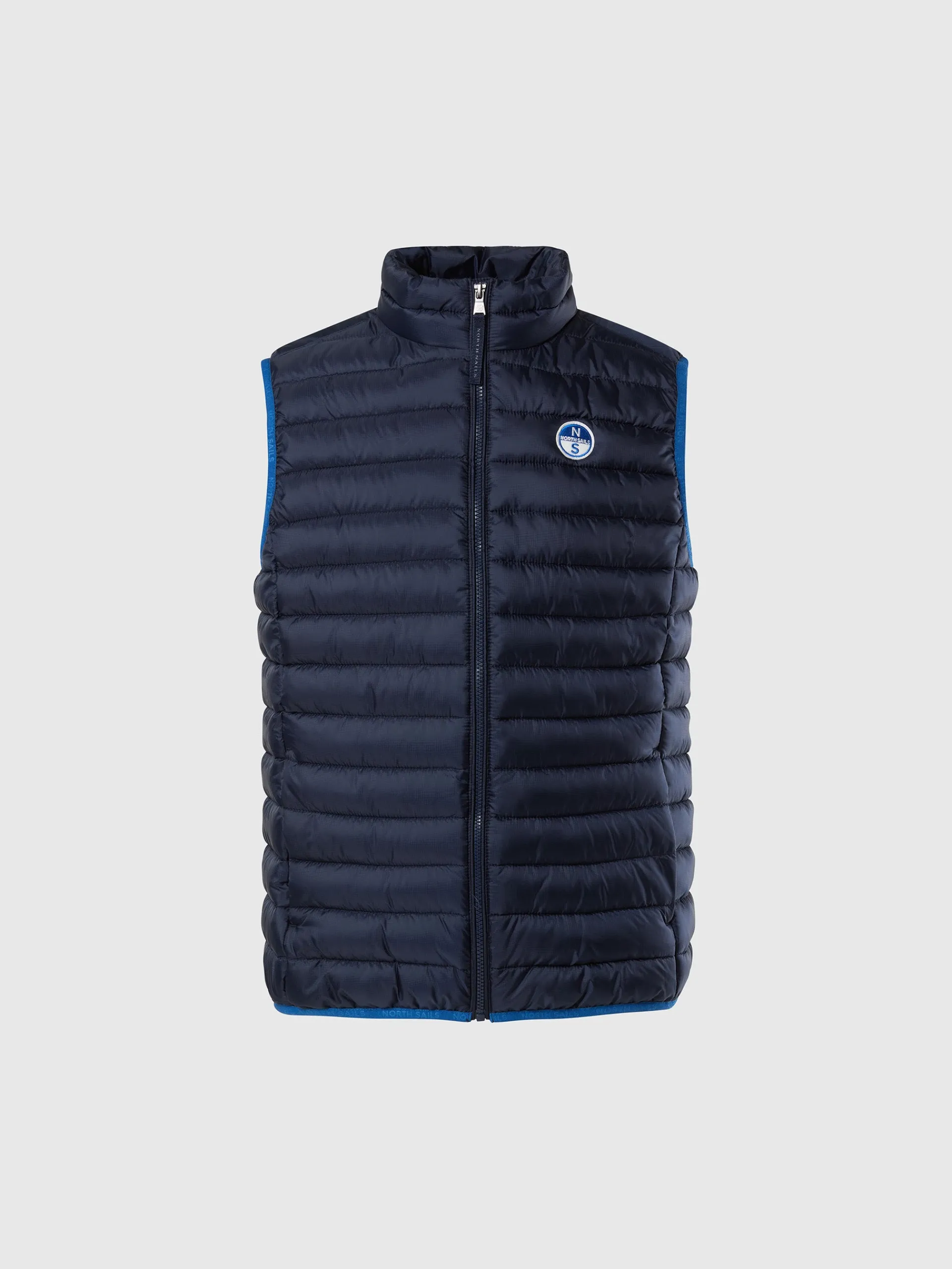 Il capo chiave del guardaroba transeasonal. Questa versione del nostro iconico gilet Crozet è realizzata in micro ripstop riciclato con imbottitura in Repreve, una fibra ottenuta dal riciclo delle bottiglie di plastica che contribuisce a mantenere il mare libero dai rifiuti. Rifinito con finish idrorepellente e trapuntatura a righe per trattenere il calore, il modello da uomo ha l'interno foderato a contrasto con il maxi logo North Sails.