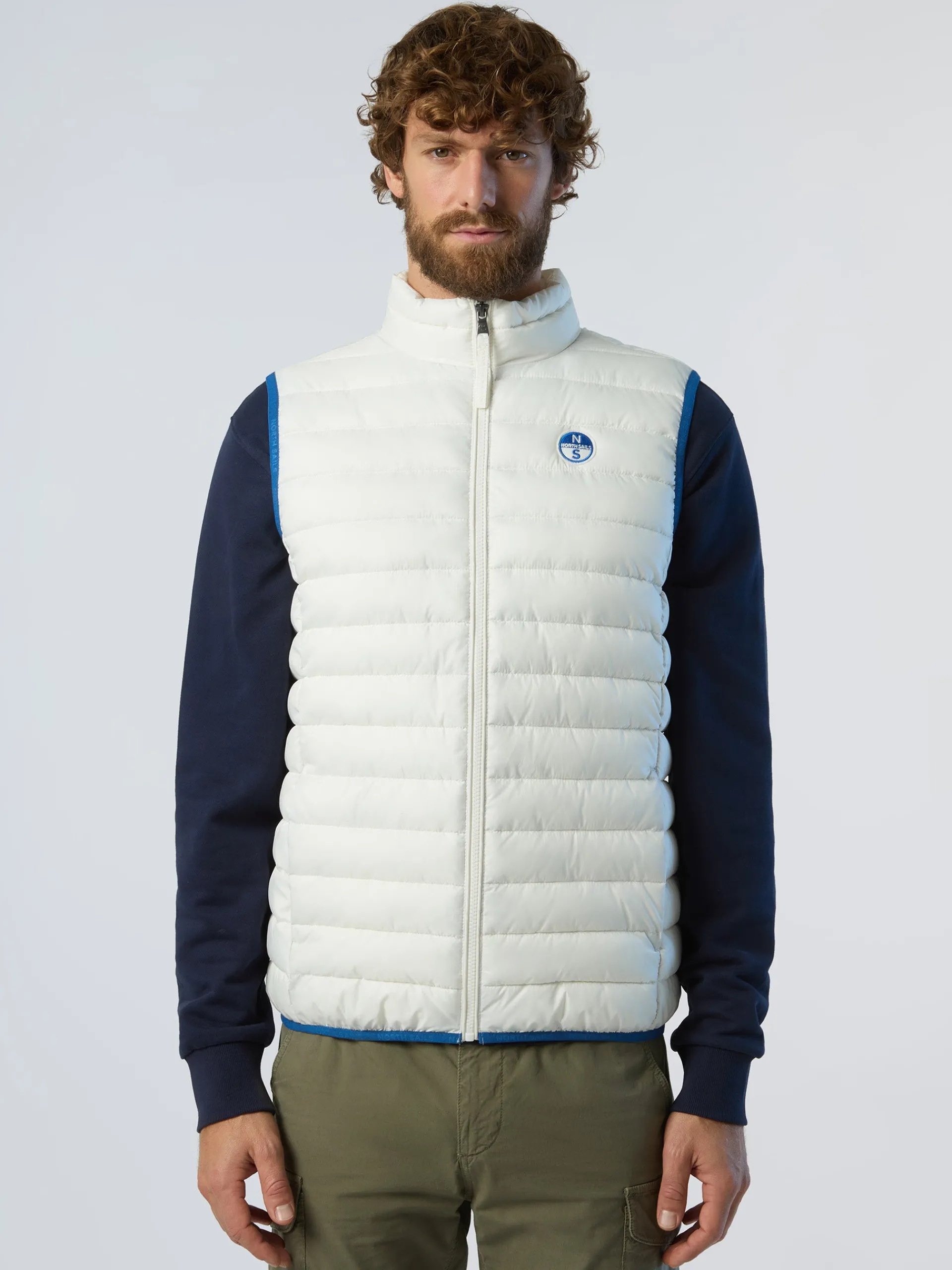 Il capo chiave del guardaroba transeasonal. Questa versione del nostro iconico gilet Crozet è realizzata in micro ripstop riciclato con imbottitura in Repreve, una fibra ottenuta dal riciclo delle bottiglie di plastica che contribuisce a mantenere il mare libero dai rifiuti. Rifinito con finish idrorepellente e trapuntatura a righe per trattenere il calore, il modello da uomo ha l'interno foderato a contrasto con il maxi logo North Sails.