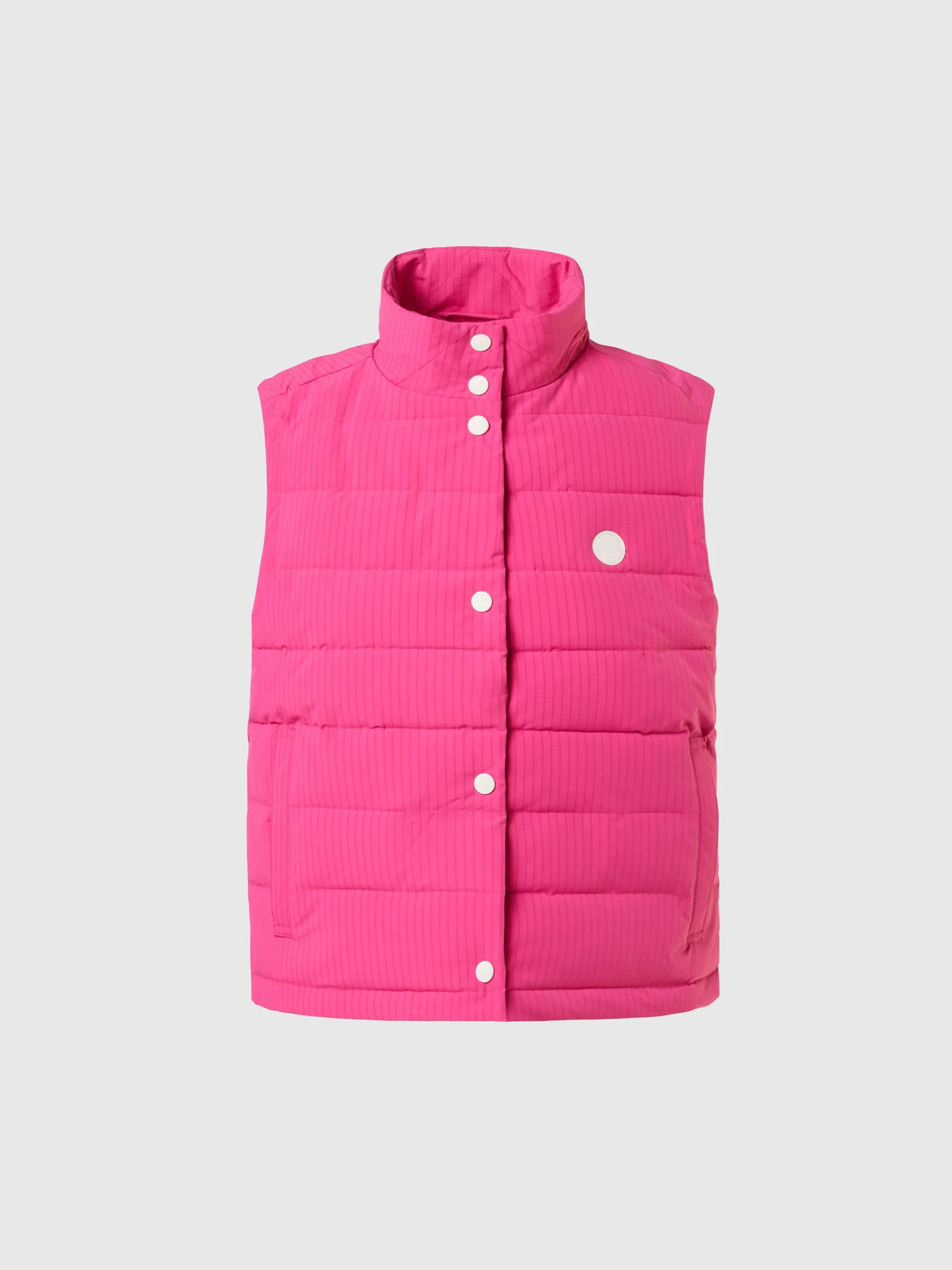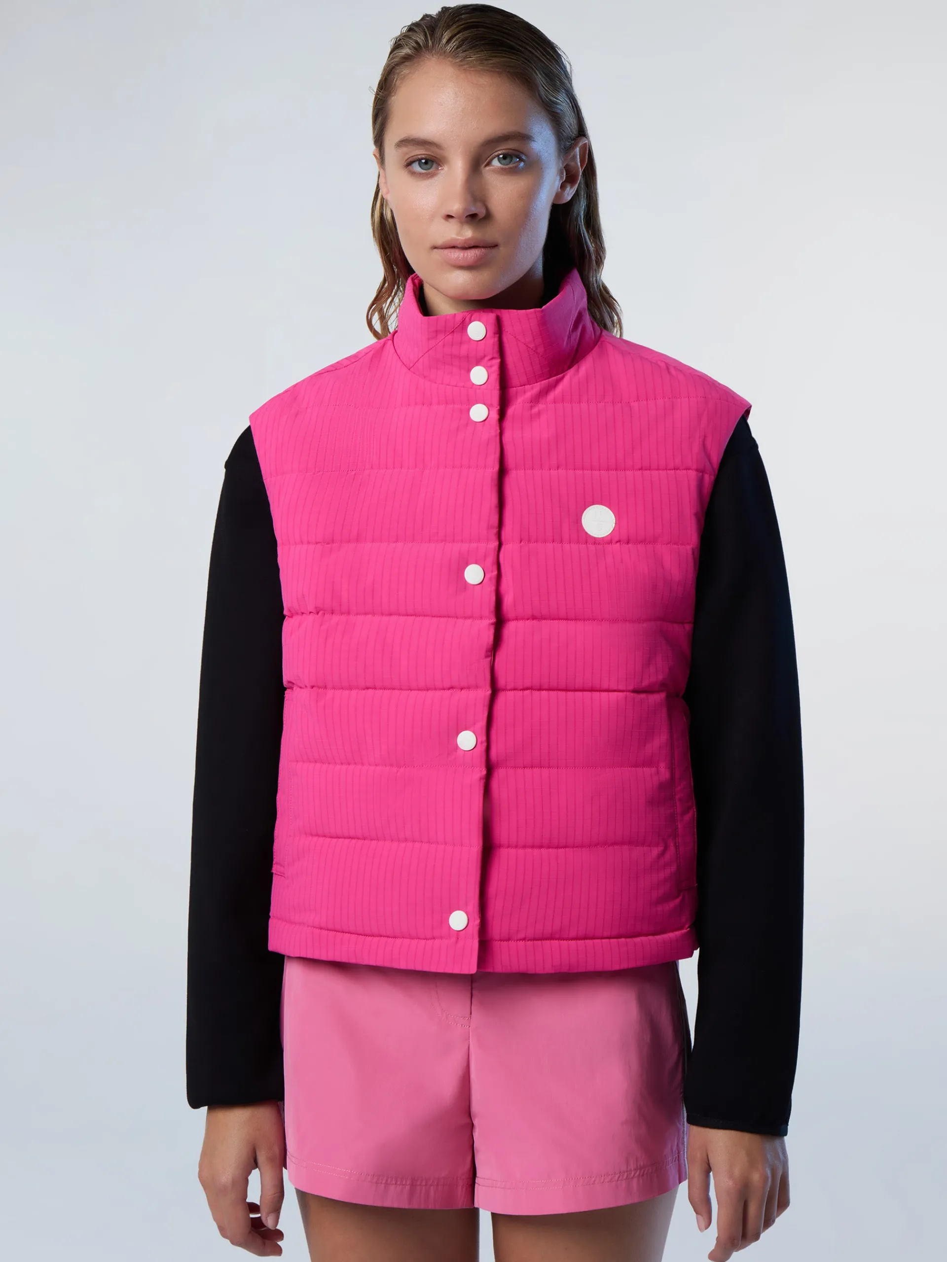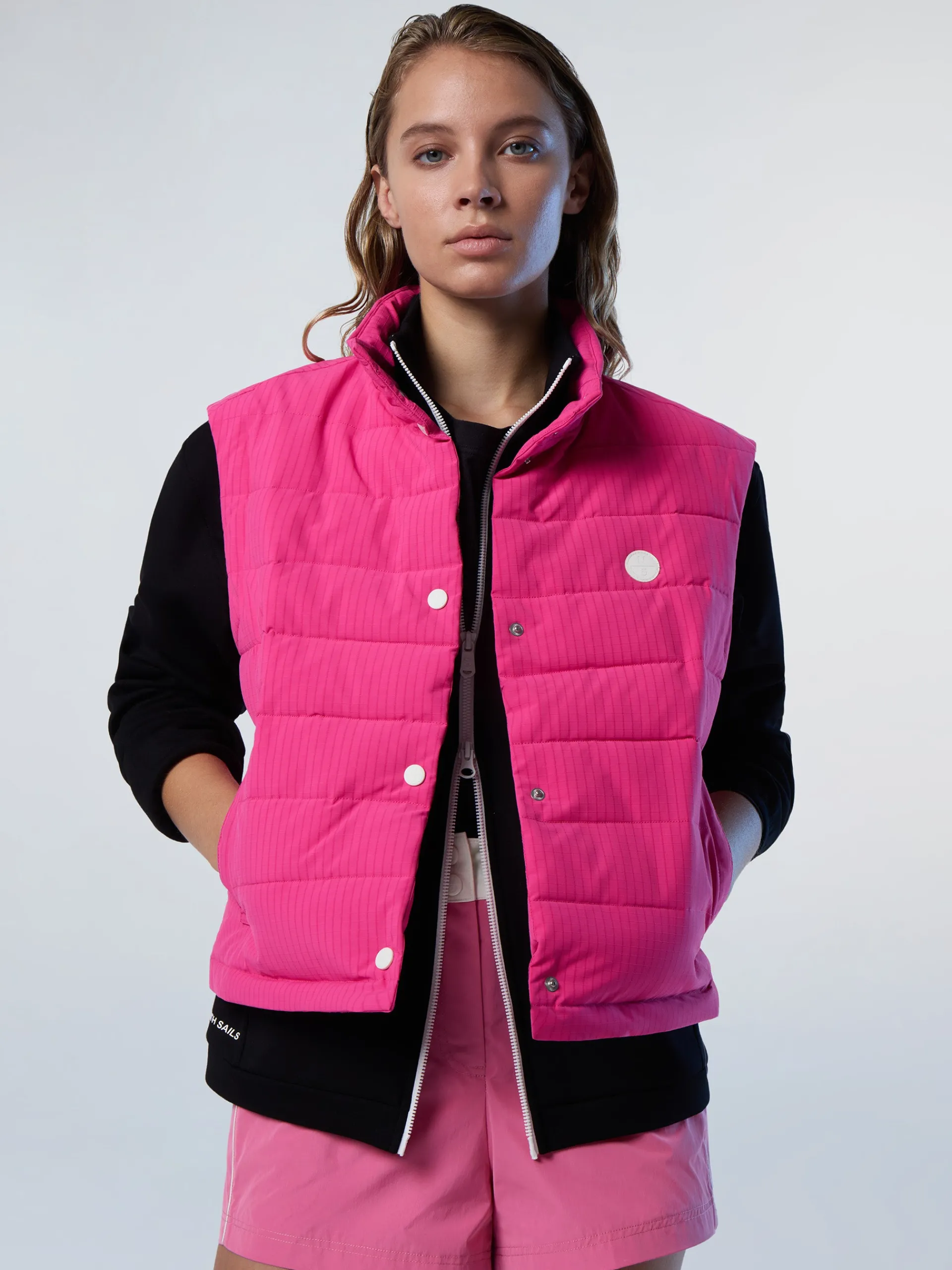 The classic quilted vest gets a fresh update with this sophisticated women's style, filled with light padding that's just enough to combat a cool summer breeze. Crafted from water-resistant recycled ripstop to help keep waste out of landfill and our precious oceans, the Fuego Vest flaunts a short boxy fit for a more trendy look. Finished with snap buttons and a logo on the chest for a signature North Sails touch.