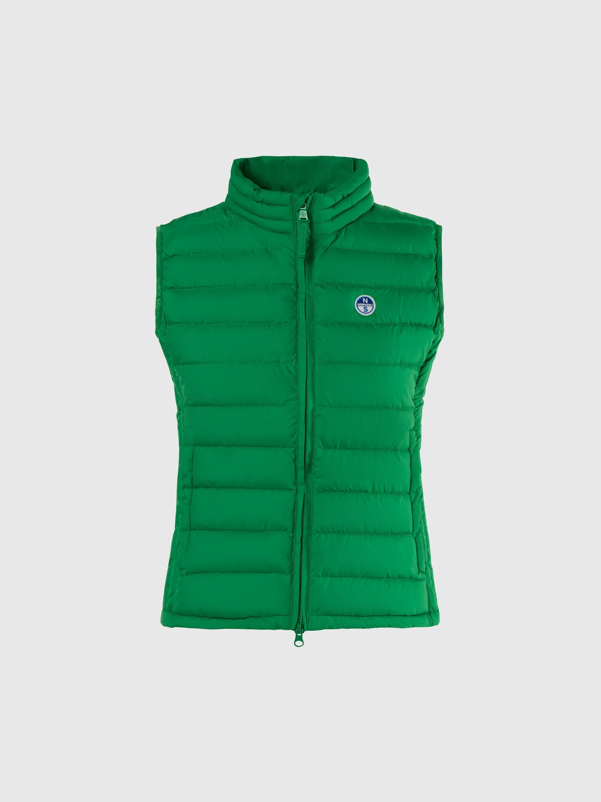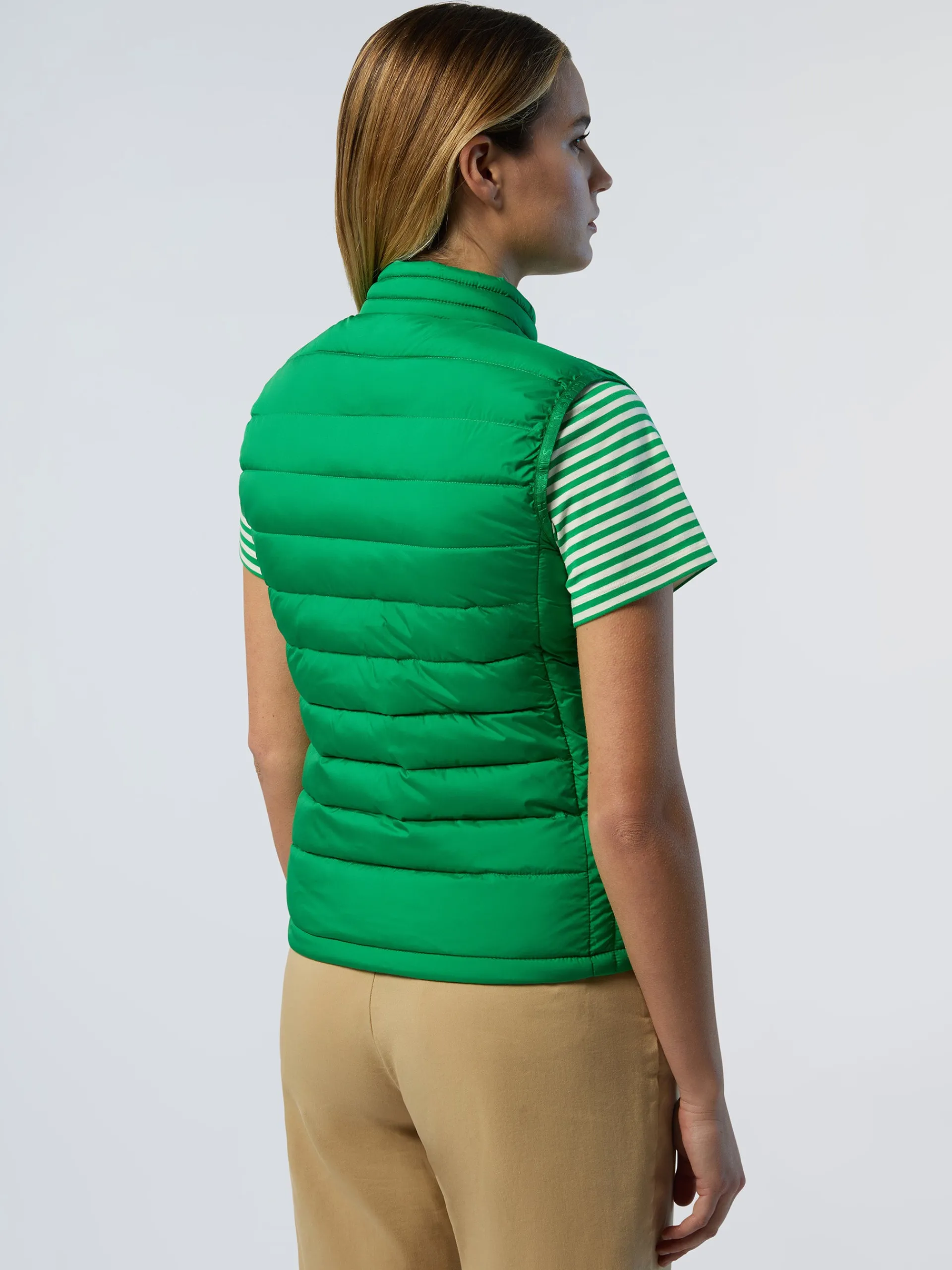 Il gilet Naomi è il capo dall'eleganza funzionale che completa il guardaroba della mezza stagione. Perfetto da indossare sopra la camicia o la felpa, il modello è realizzato in poliestere riciclato con trattamento idrorepellente e imbottitura in piuma sintetica che rispetta il pianeta. La trapuntatura verticale sui fianchi slancia la silhouette, mentre la patch North Sails sul petto aggiunge un tocco distintivo.