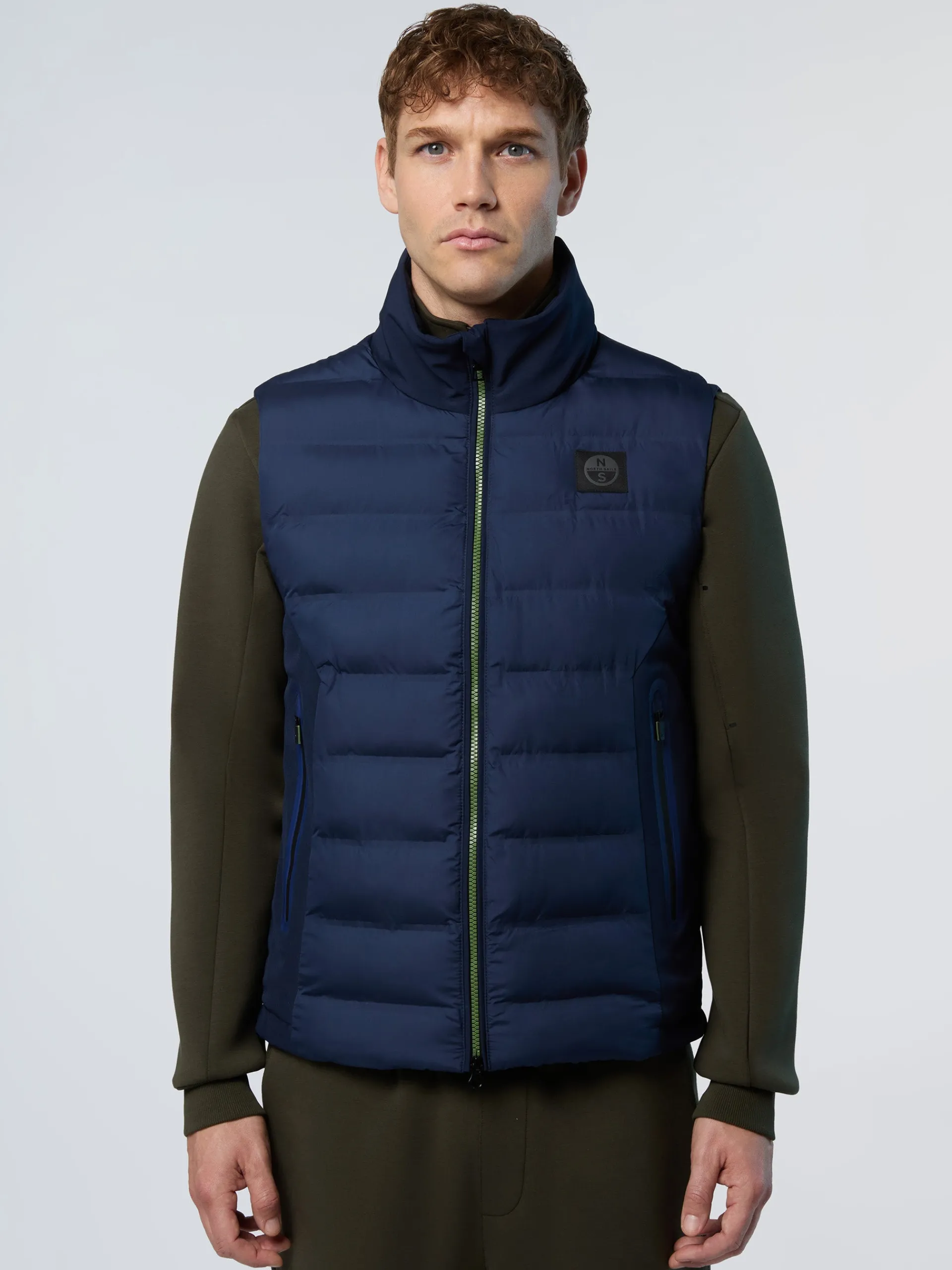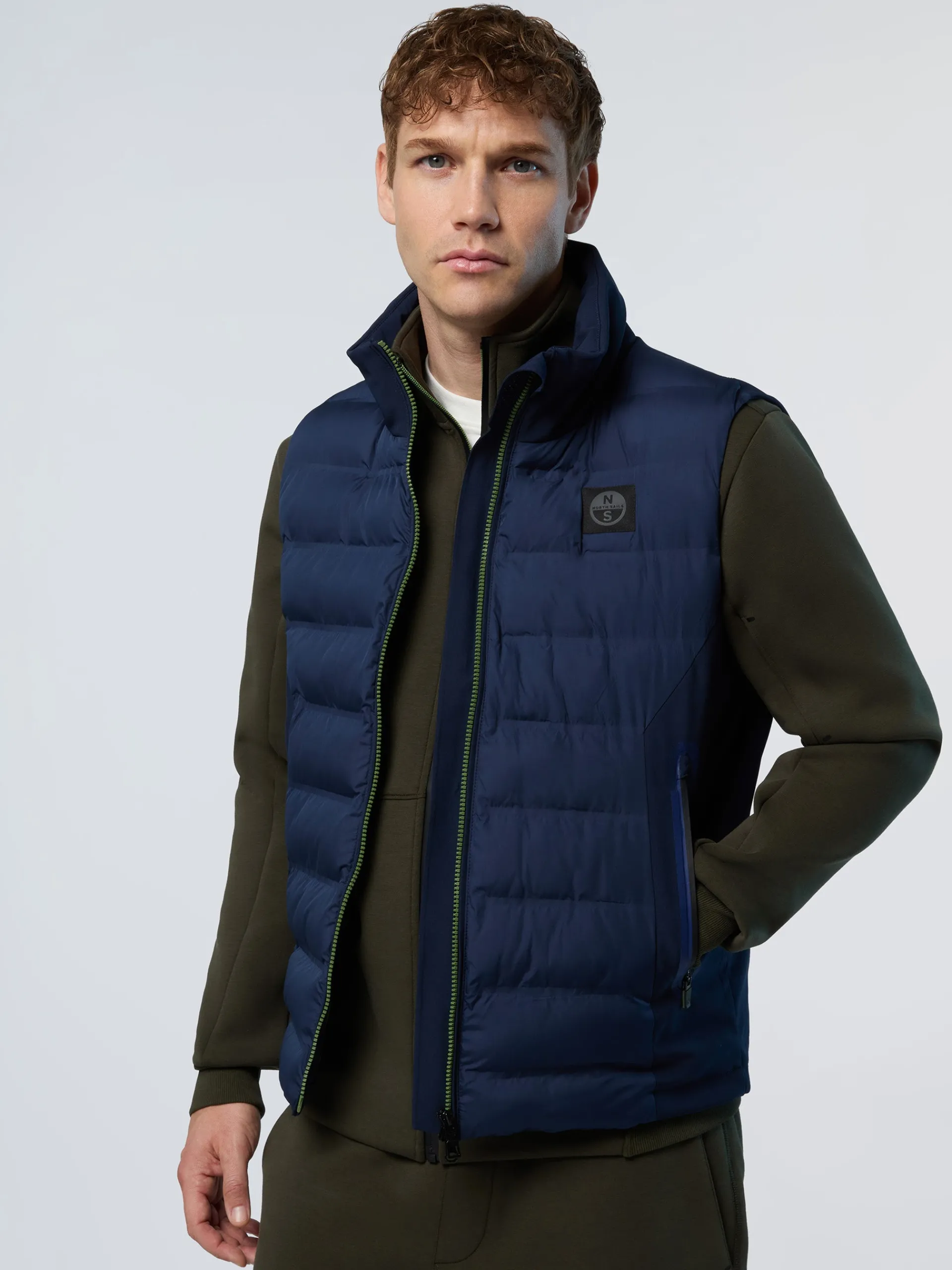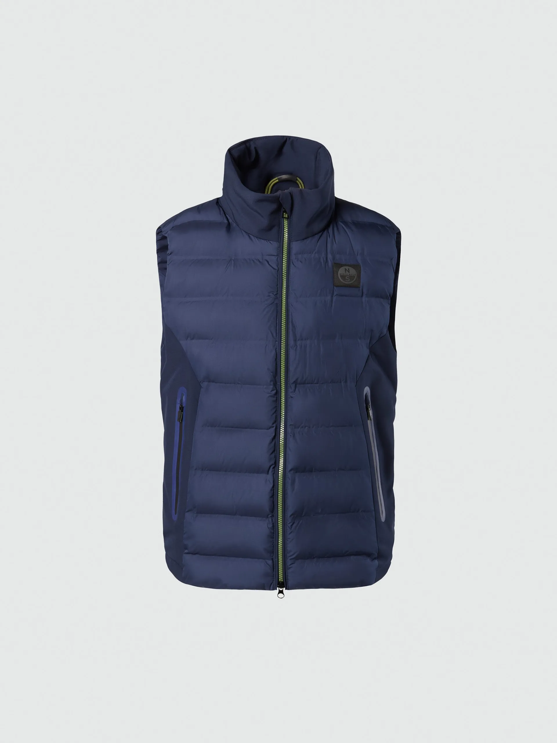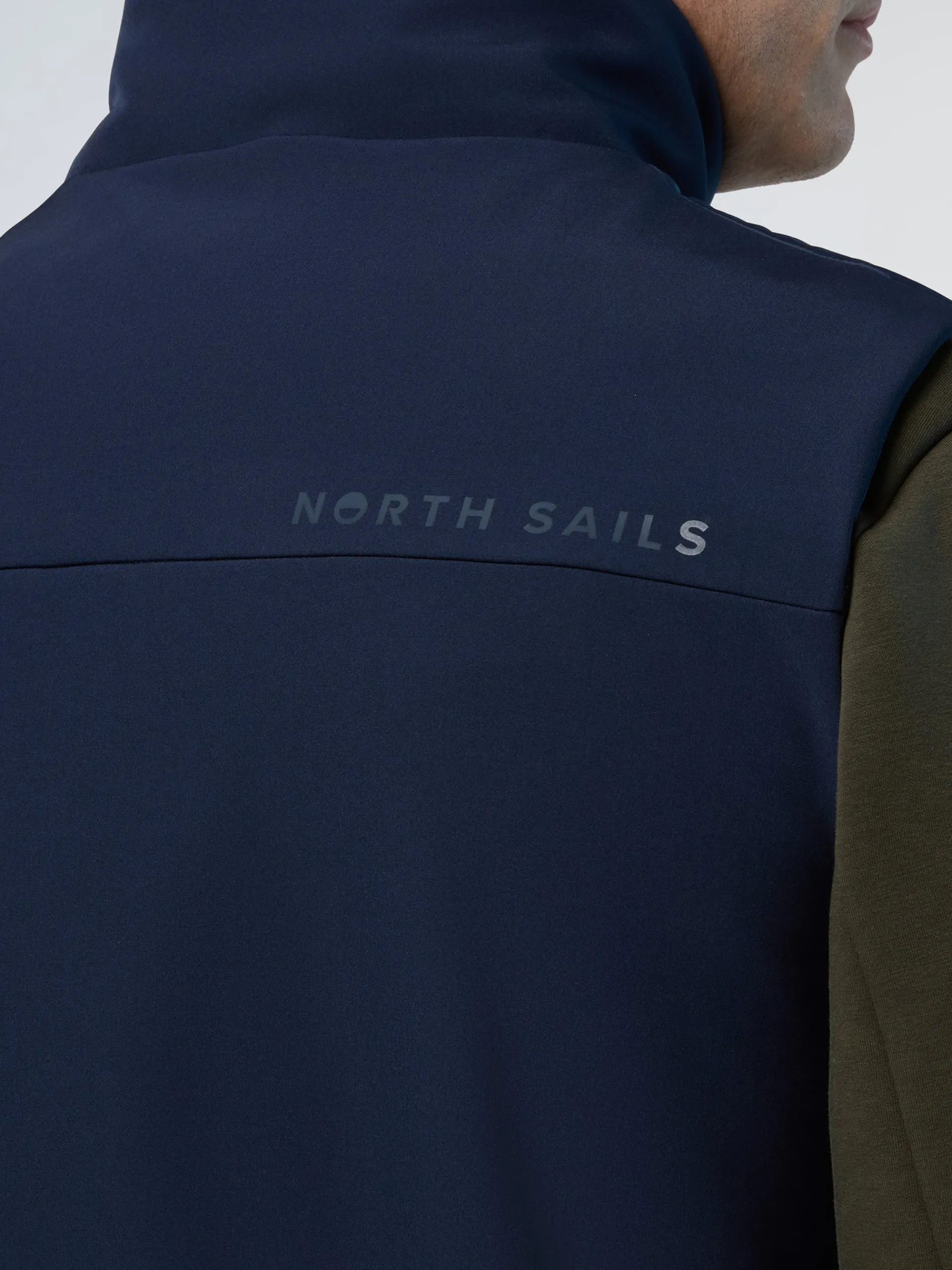 Il gilet North Tech è pensato per la mezza stagione e progettato per la massima funzionalità. Il modello ha un design essenziale con il fronte trapuntato a righe senza cuciture e il retro rifinito in softshell resistente all'acqua, antivento, traspirante e flessibile in quattro direzioni. Rifinito con imbottitura riciclata, chiusura con zip a doppio cursore, tasche con zip impermeabile e tasche interne per custodire piccoli essenziali.