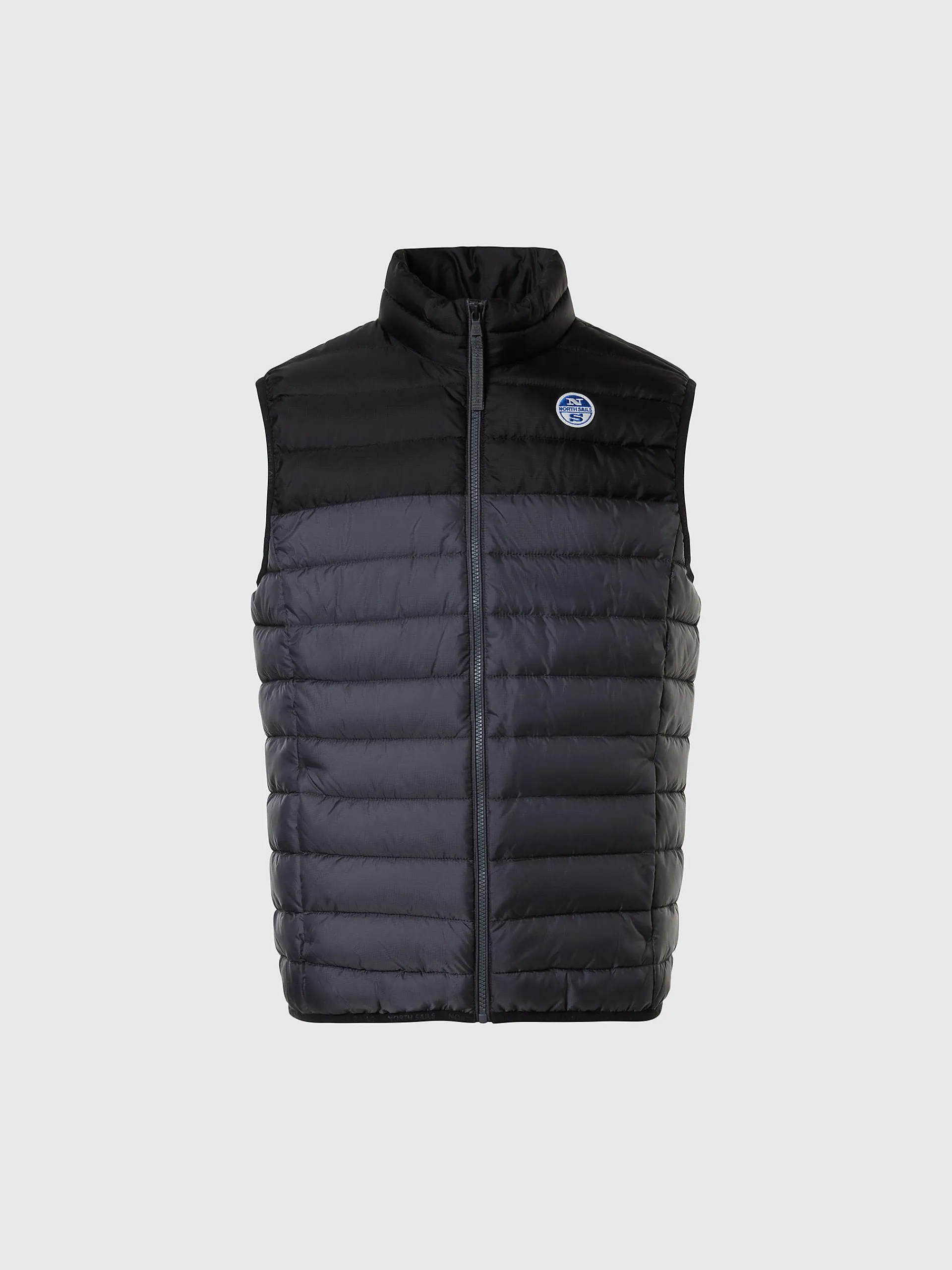 Il gilet Sky è un must per chi vuole affermare il proprio stile anche durante le avventure outdoor. Il modello da uomo è realizzato in tessuto micro-ripstop riciclato con rivestimento idrorepellente e imbottitura in Repreve, una fibra innovativa prodotta da bottiglie di plastica riciclata. I bordi elasticizzati e le tasche enfatizzano la funzionalità del modello, mentre il logo sul petto aggiunge un tocco distintivo.