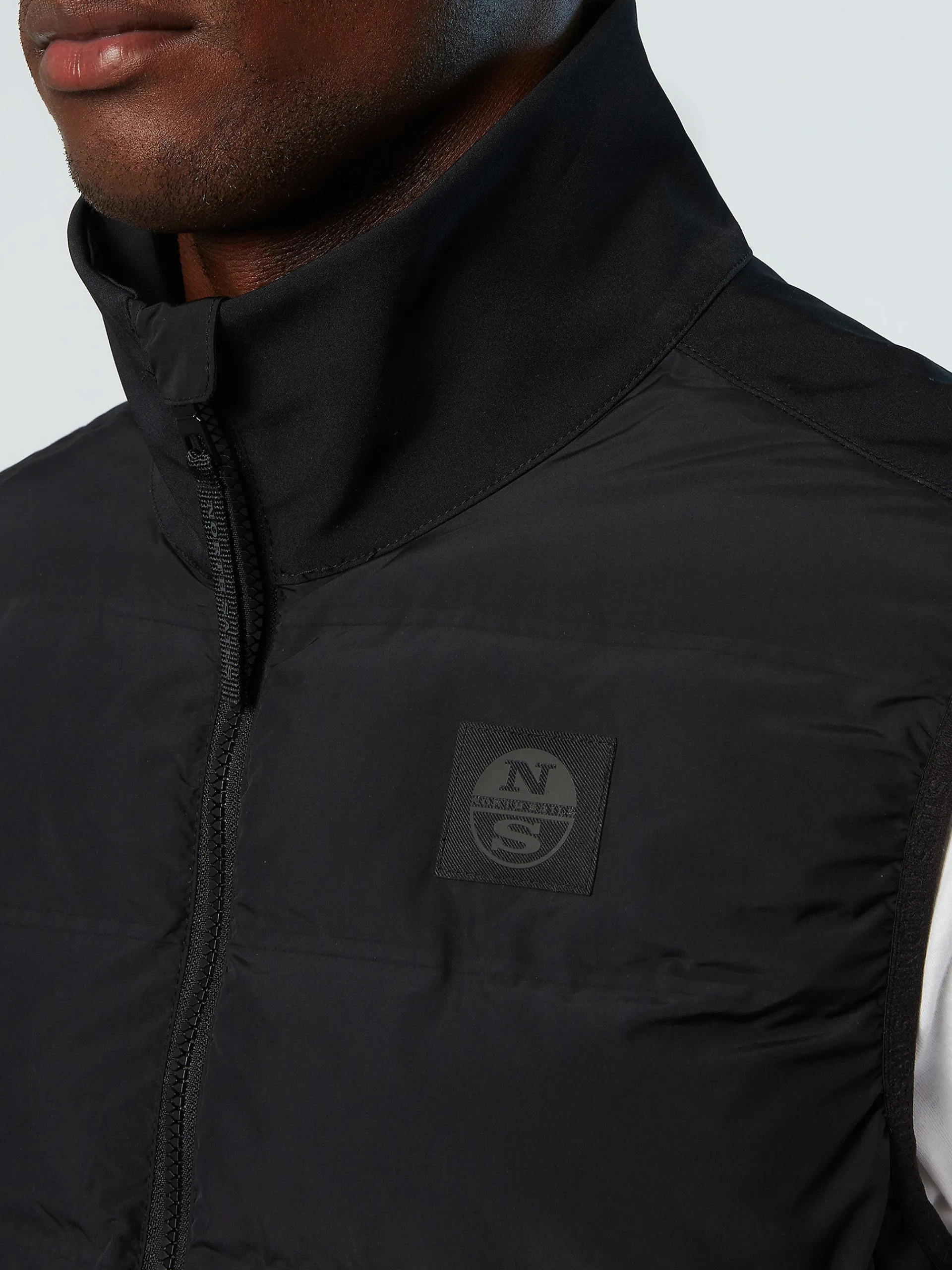 Ultrafunzionale, leggero e idrorepellente: Utility Vest è l'alleato indispensabile per le avventure all'aria aperta e i cambi di clima. Il modello si caratterizza per il corpo in nylon riciclato trapuntato, i lati in softshell riciclato e l'imbottitura ottenuta dal riciclo delle bottiglie di plastica per il rispetto del Pianeta. Si caratterizza per i micro fori tagliati al laser per un'ottima traspirabilità e il logo North Tech sul petto.