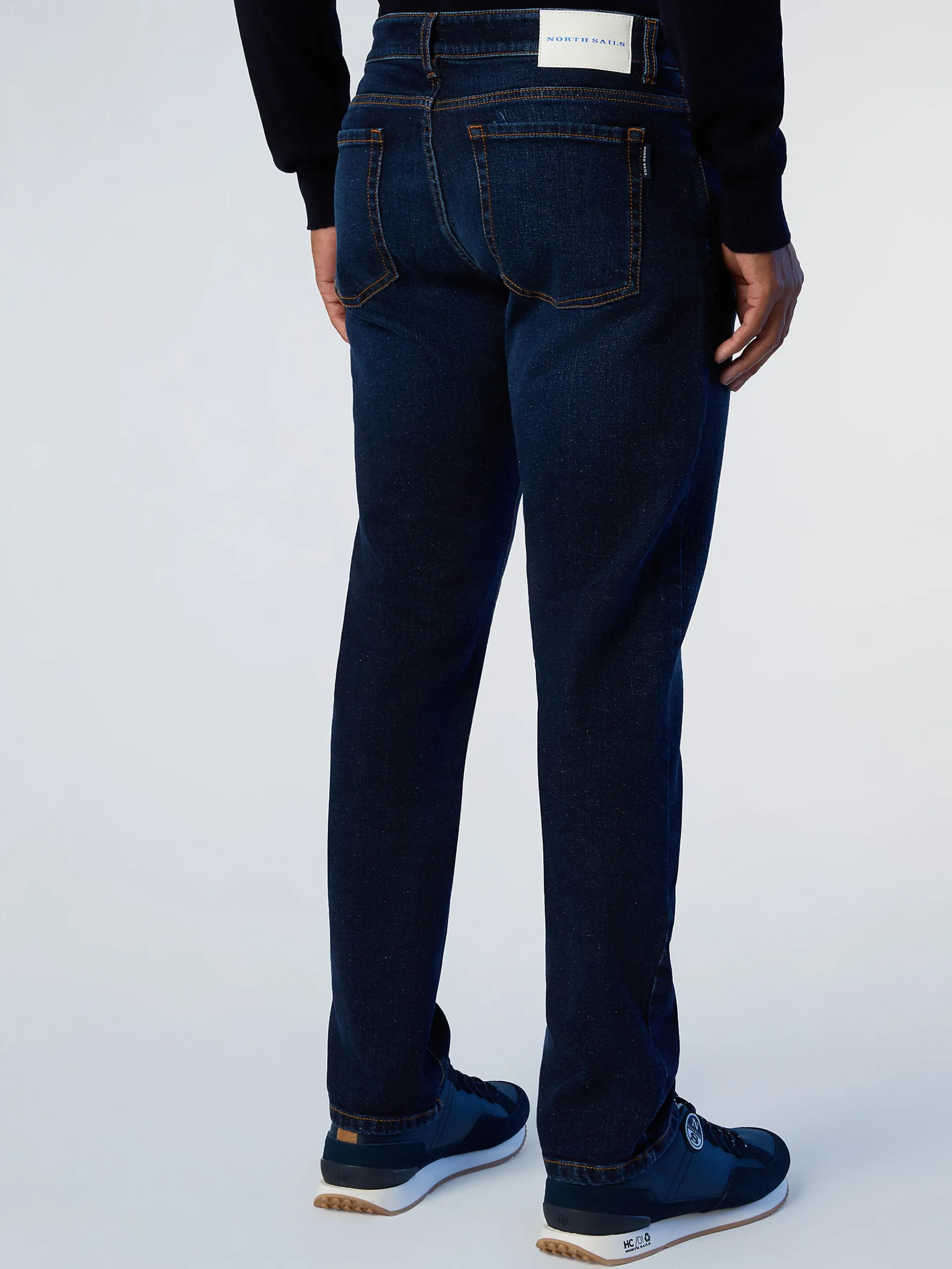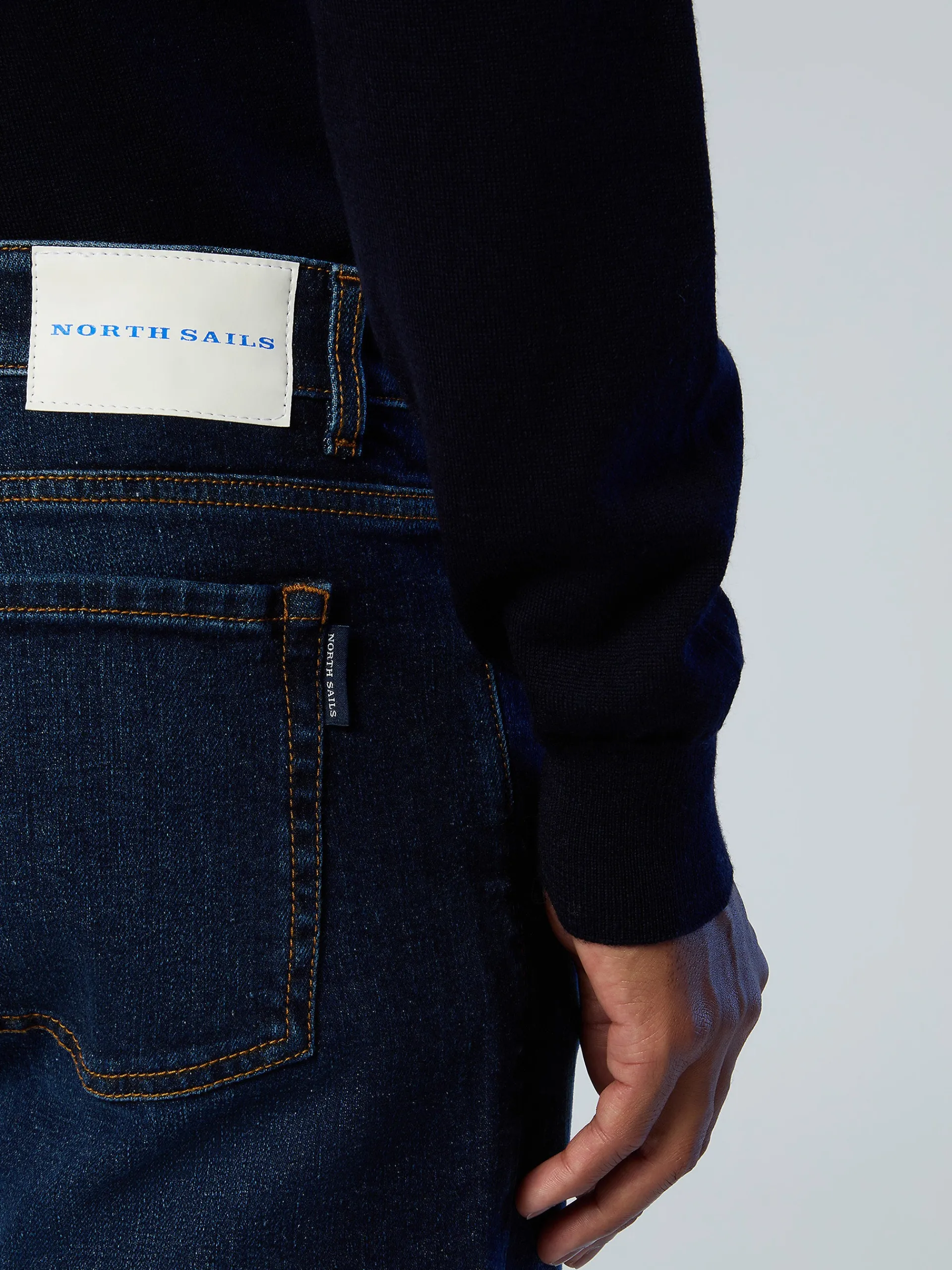 Un essenziale del guardaroba casual che combina stile, comfort e rispetto per il pianeta. Questi jeans da uomo in denim stretch sono realizzati in cotone riciclato e certificato BCI per un minore impatto sull'ambiente. Il modello cinque tasche ha gamba dritta, vita media ed è rifinito con la salpa personalizzata North Sails.