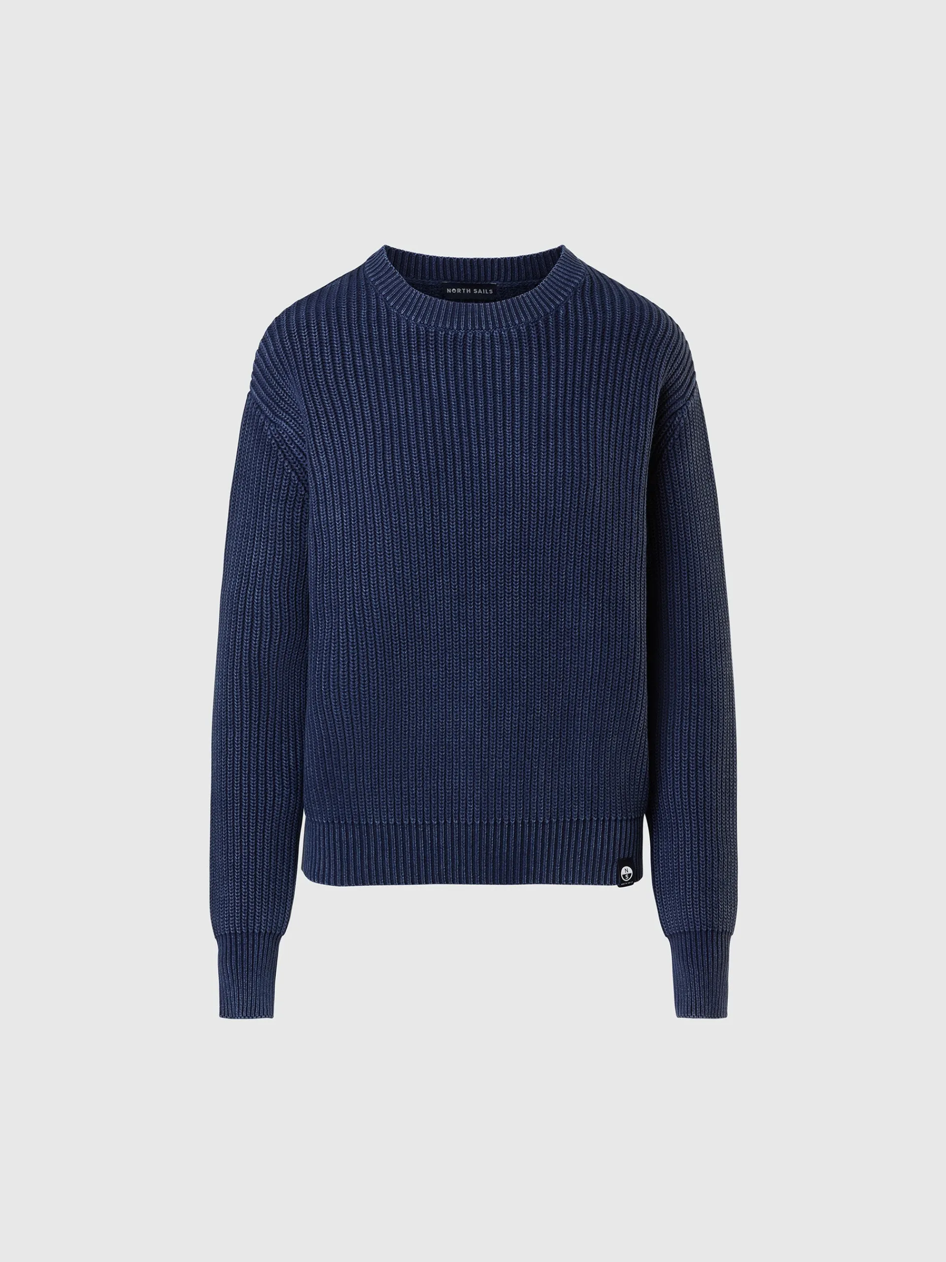 Un classico senza tempo, rielaborato con una silhouette rilassata e moderna. Questo maglione a costa inglese è realizzato in cotone organico che riduce il consumo di acqua e le emissioni nocive rispetto alle fibre tradizionali. Si caratterizza per il trattamento washed per un look più autentico e la label North Sails applicata al fondo.