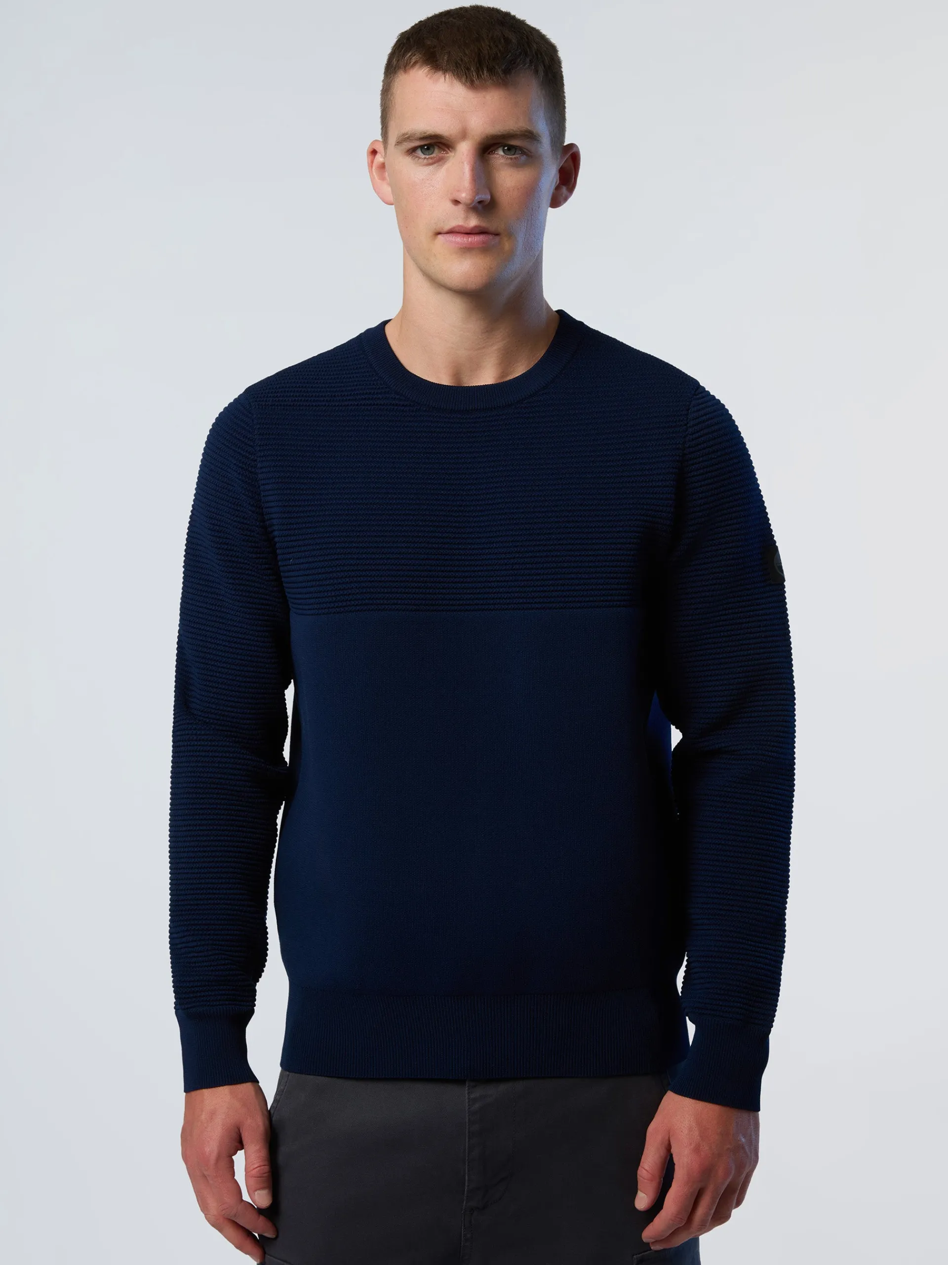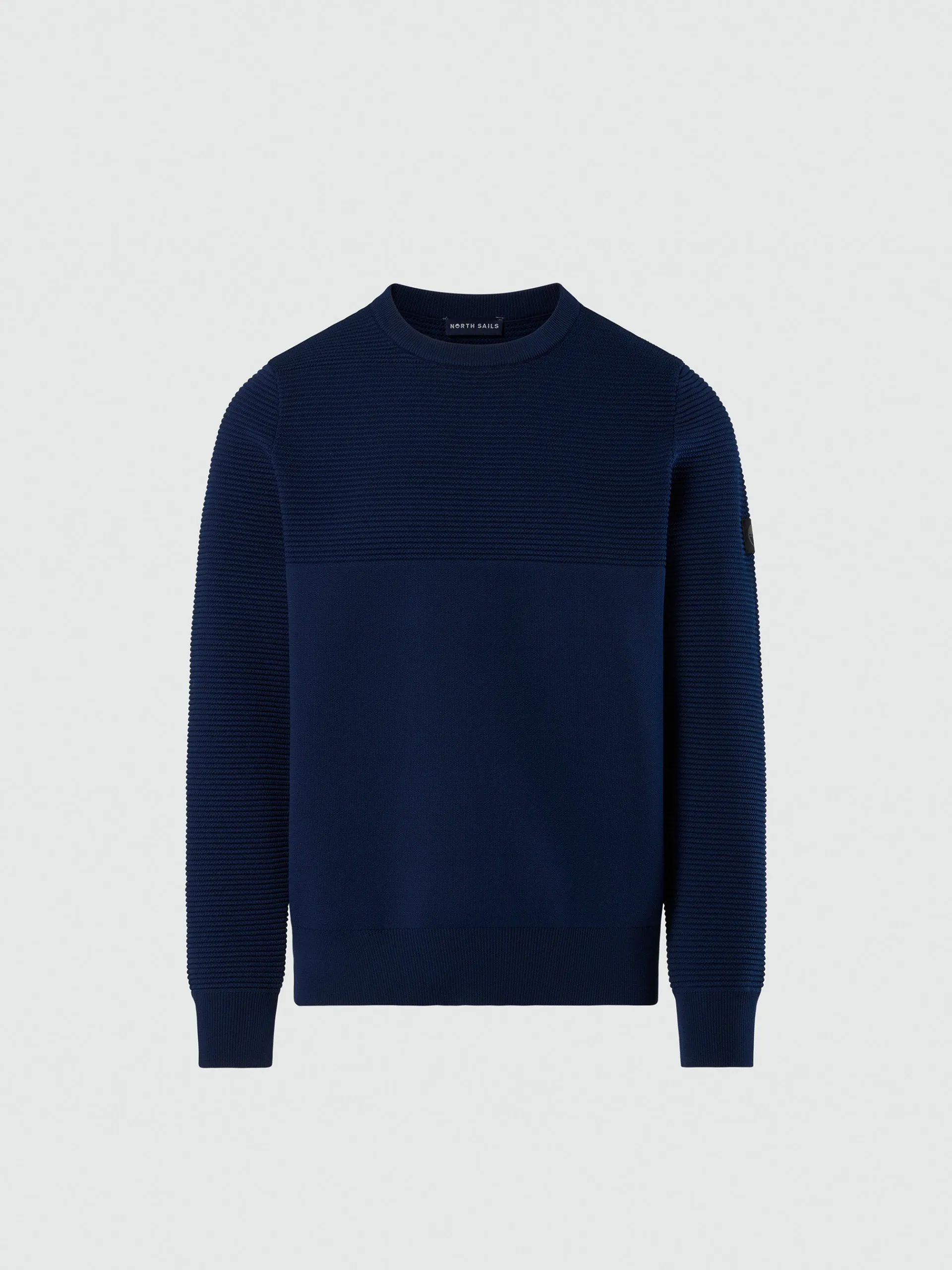 Il maglione girocollo perfetto per i look rilassati del fine settimana e gli impegni quotidiani. Il modello esprime il nostro impegno per il pianeta ed è realizzato in filato riciclato con un mix di lavorazioni dal ricercato effetto tattile. Rifinito con il logo North Sails sulla manica.