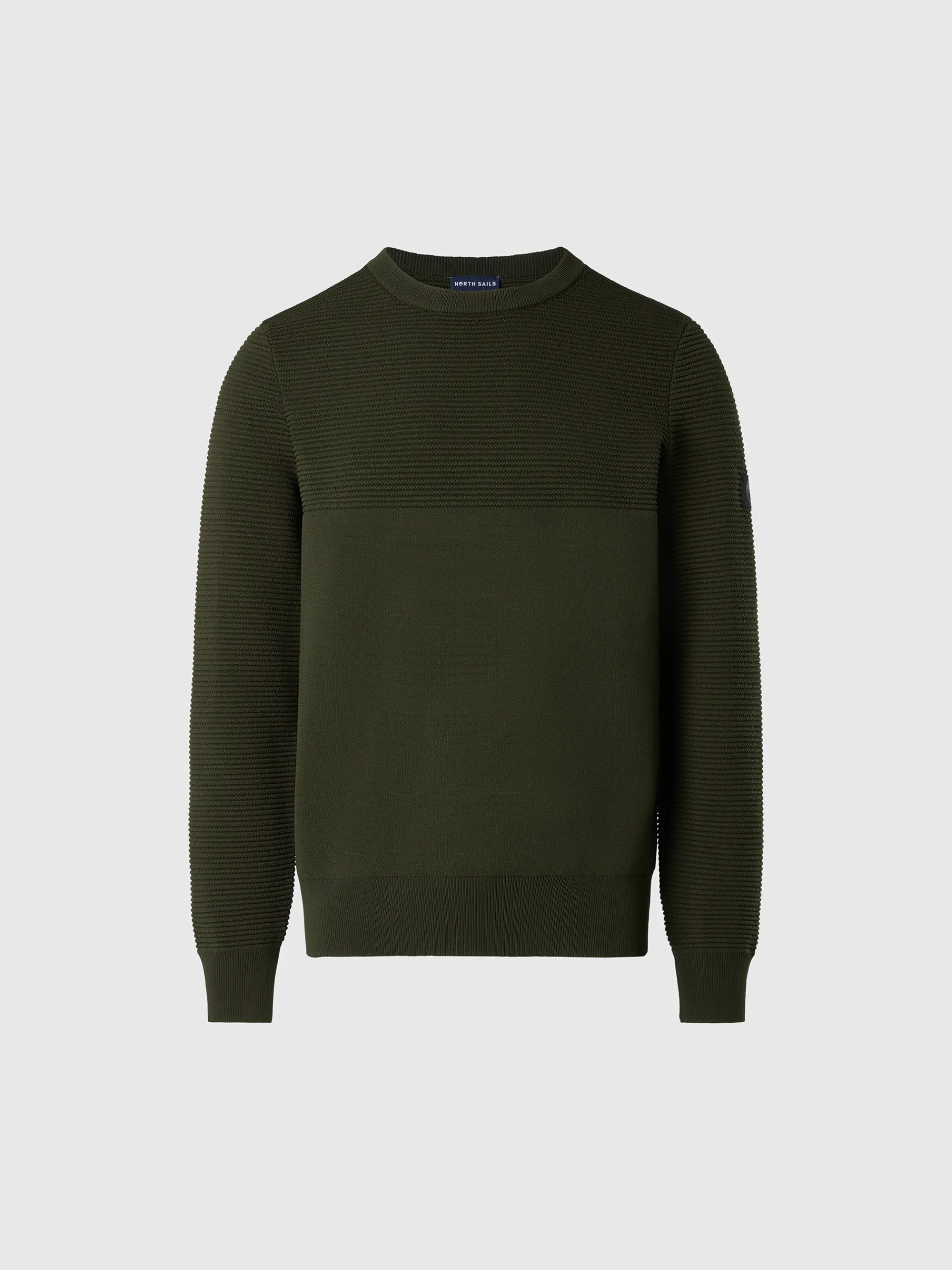 Il maglione girocollo perfetto per i look rilassati del fine settimana e gli impegni quotidiani. Il modello esprime il nostro impegno per il pianeta ed è realizzato in filato riciclato con un mix di lavorazioni dal ricercato effetto tattile. Rifinito con il logo North Sails sulla manica.