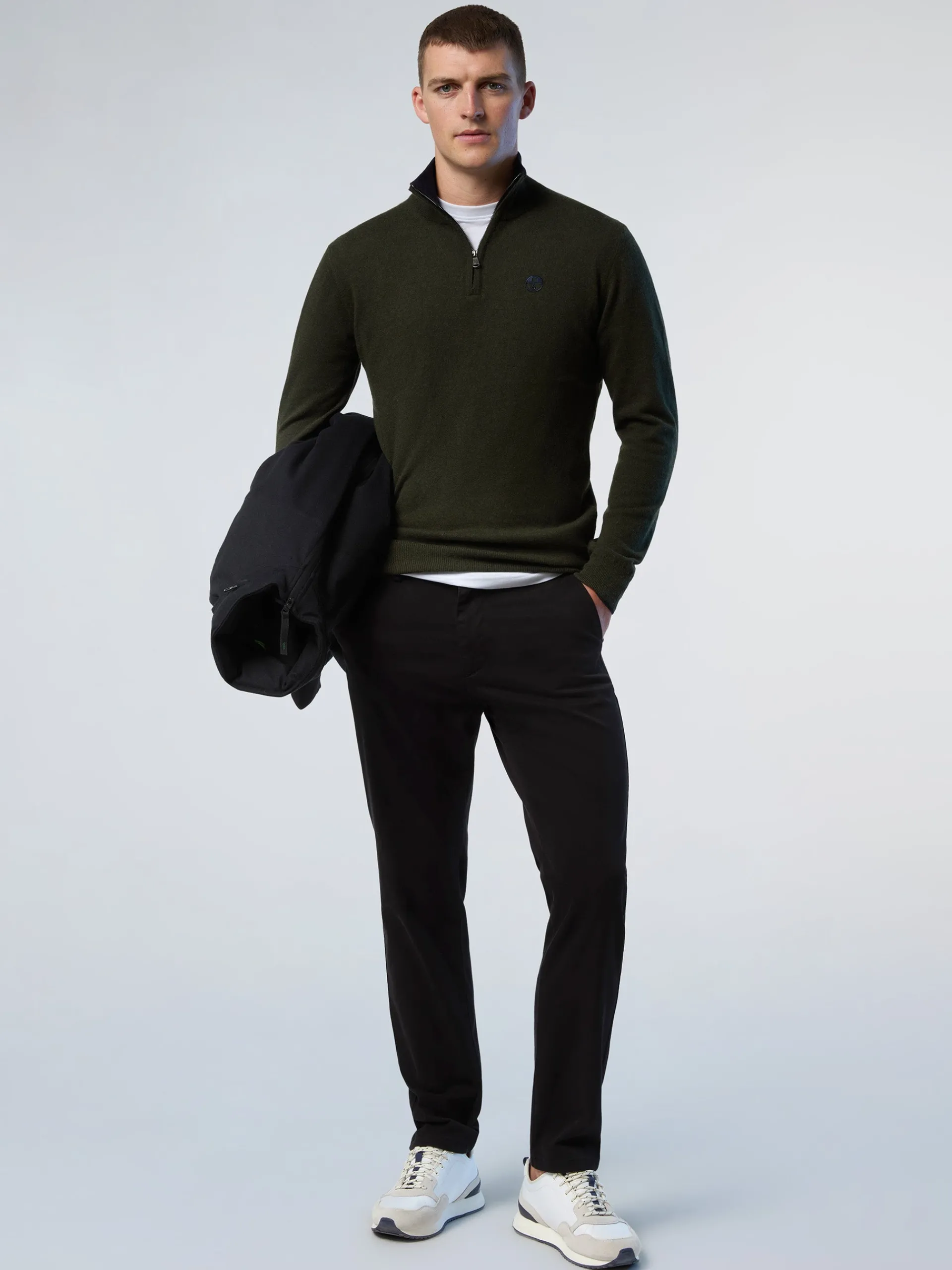 Senza sforzo e senza tempo, questo maglione con collo alto e mezza zip è un classico di qualsiasi guardaroba. Il modello è realizzato in misto cachemire con fibre riciclate, in linea con il nostro impegno positivo per il pianeta. Rifinito con bordi a coste che creano aderenza e il logo North Sails ricamato sul petto.