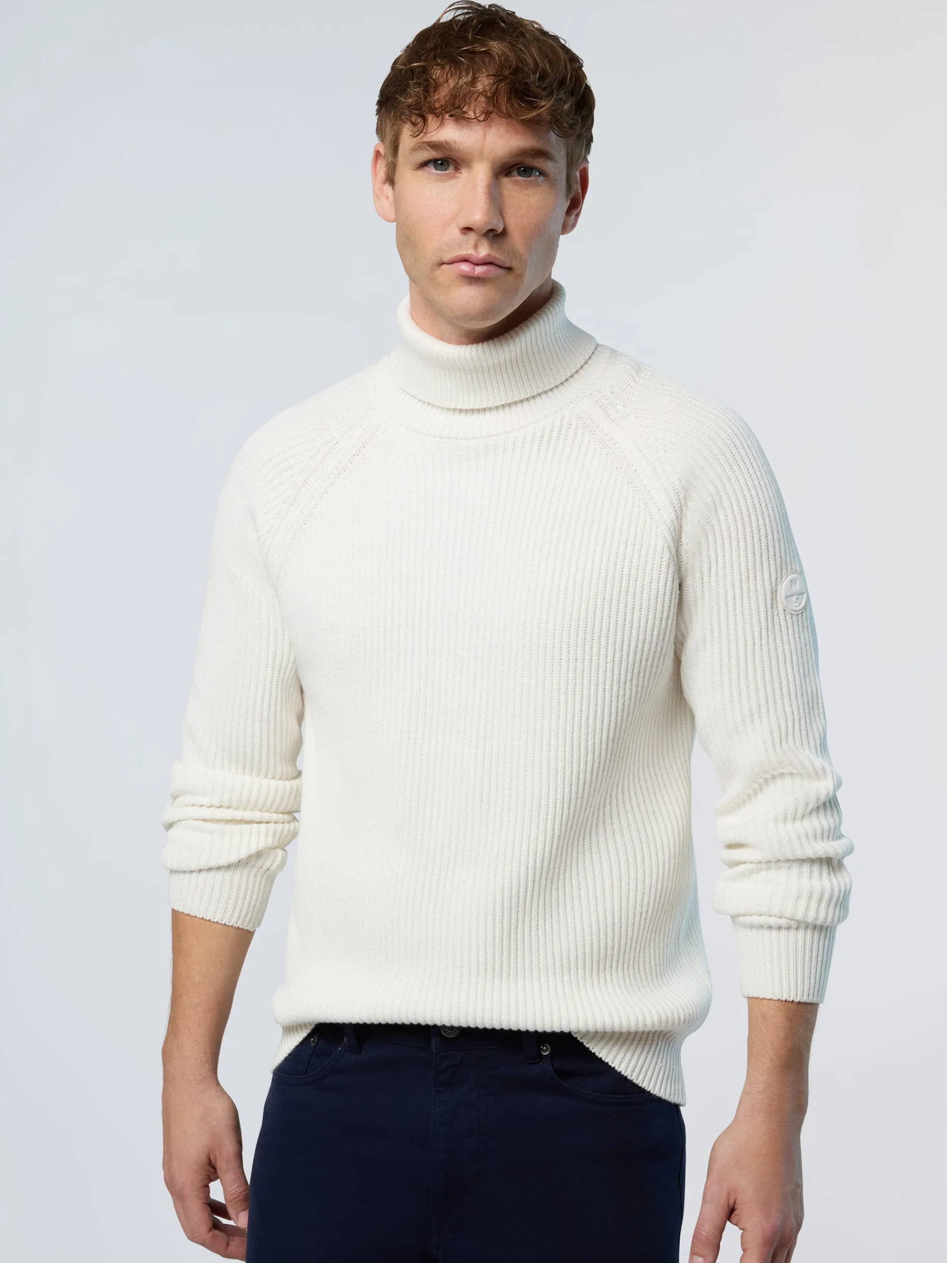 Il maglione dolcevita pensato per la stagione più fredda e progettato per limitare l'impatto sul pianeta. Il modello è realizzato in un morbido filato di lana e cotone organico che contribuisce a ridurre le emissioni nocive e il consumo di acqua rispetto alle fibre tradizionali. Si caratterizza per la lavorazione a costa inglese che richiama i classici capi da marinaio e le maniche raglan per la massima libertà di movimento.