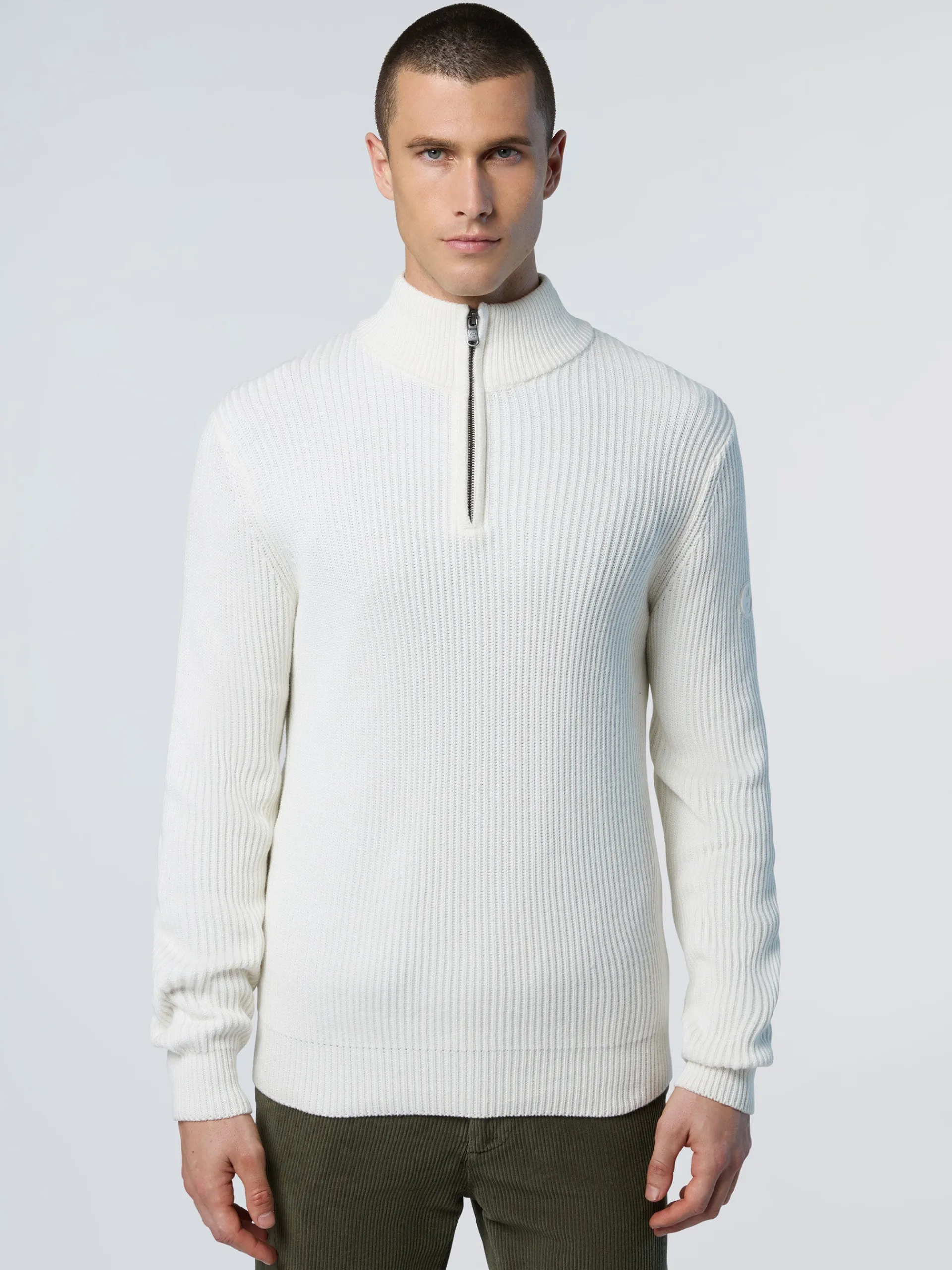 Il maglione che porta lo spirito North Sails nel guardaroba casual di tutti i giorni. Il modello è realizzato in un morbido filato di lana e cotone organico che contribuisce a ridurre le emissioni nocive e il consumo di acqua rispetto alle fibre tradizionali. Si caratterizza per la lavorazione a costa inglese che richiama i classici capi da marinaio e la mezza chiusura con zip per creare facilmente look a strati.