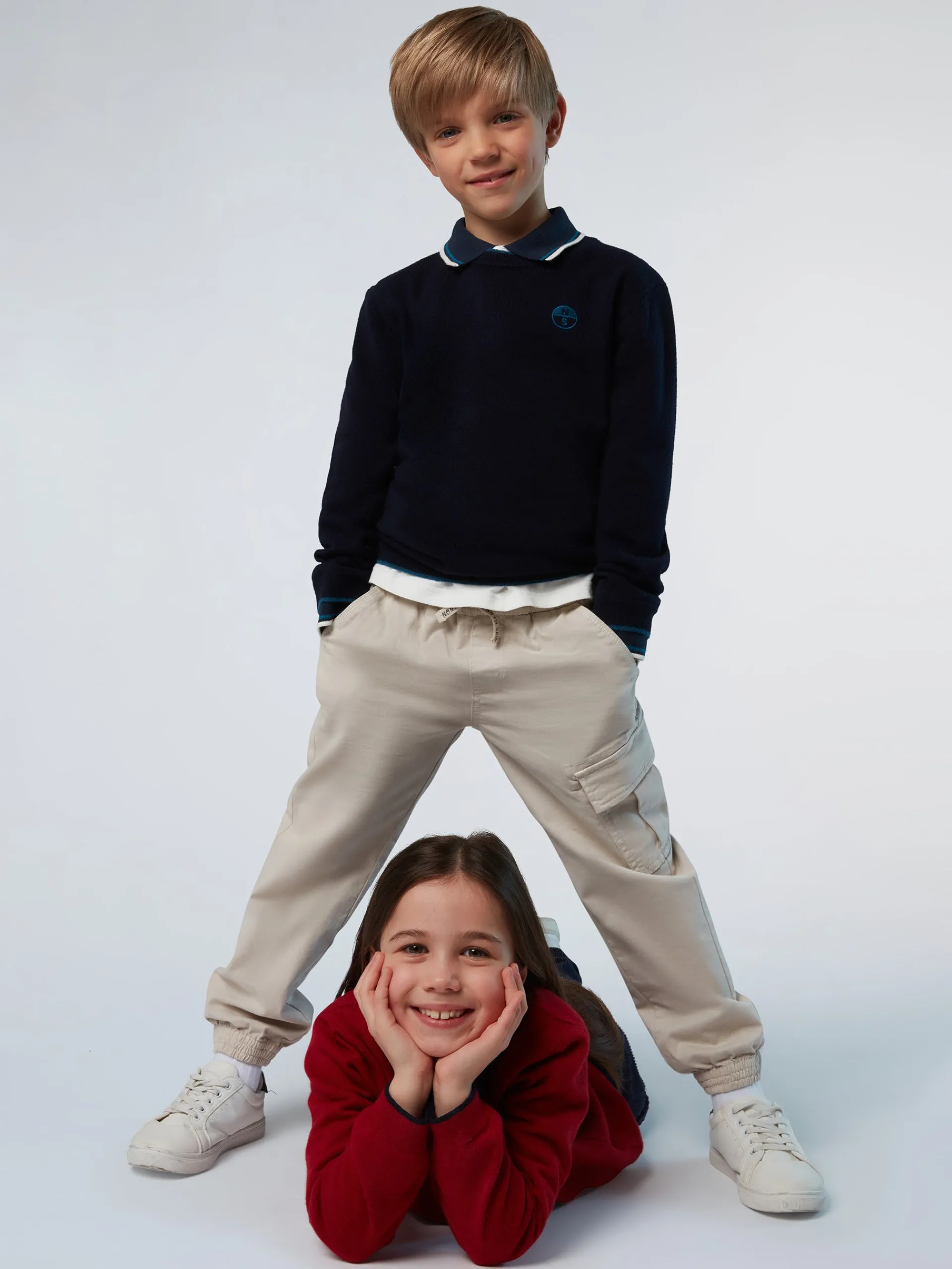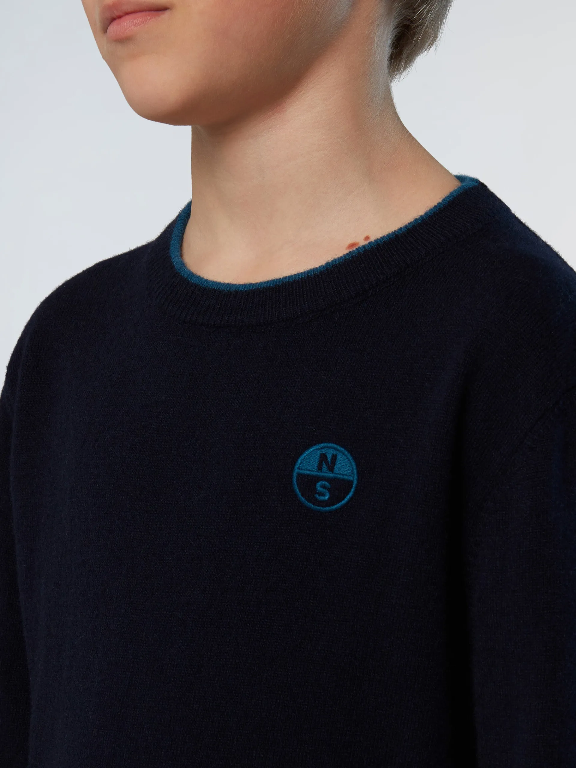 Il maglione mini me che interpreta il nostro impegno positivo per il pianeta. Il modello girocollo è realizzato in morbido misto cashmere con fibre riciclate per ridurre la quantità di rifiuti dispersi nell’ambiente. I bordi a costine creano aderenza, mentre il logo ricamato sul petto è la nota iconica North Sails che personalizza il look.