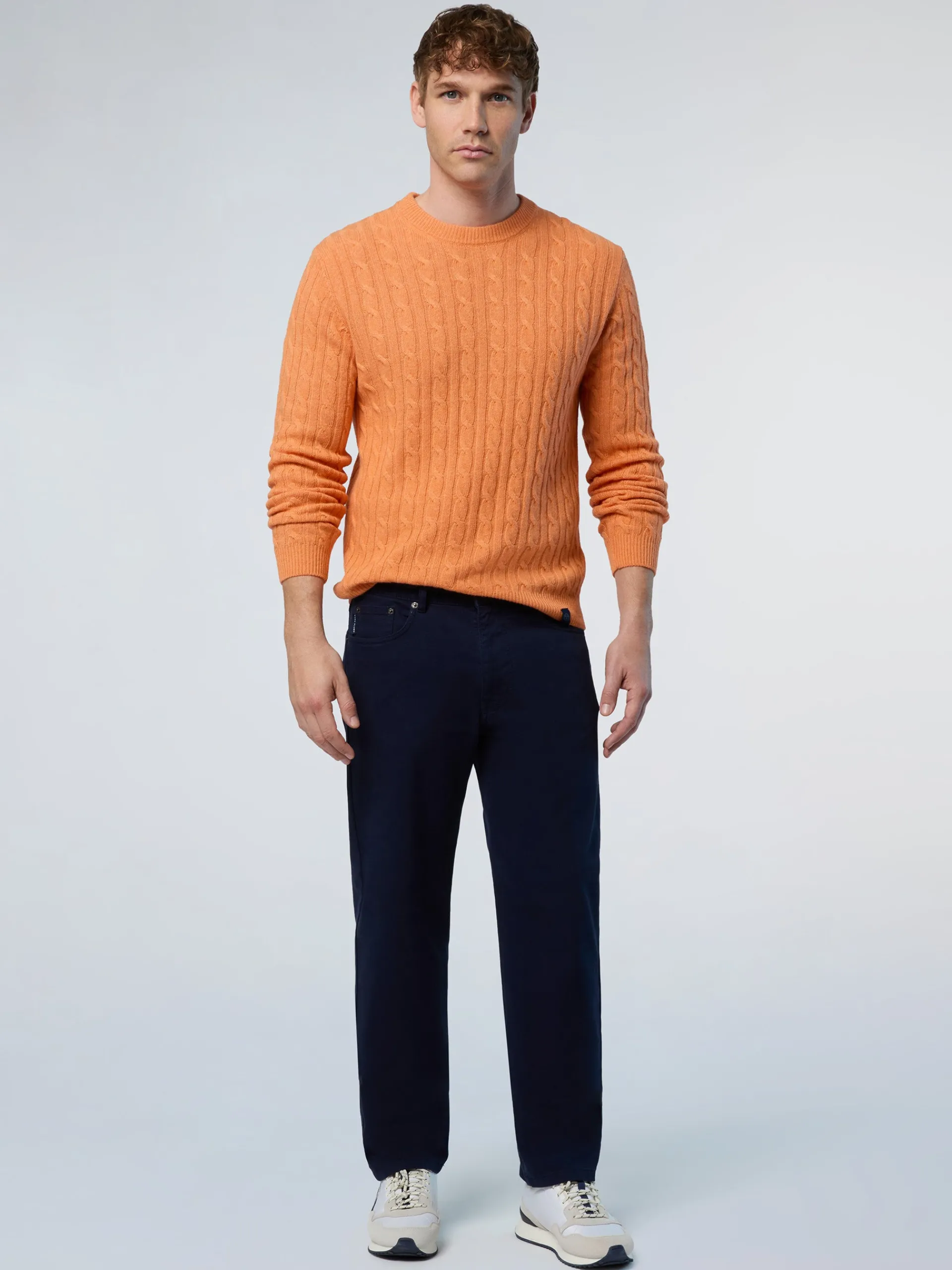 Un capo senza tempo pensato per l'uomo contemporaneo. Questo maglione a trecce è un omaggio al nostro heritage legato al mondo della vela. Il modello è realizzato in morbido misto cashmere con fibre riciclate che dimostra il nostro impegno positivo per gli oceani. I bordi rifiniti a costine creano aderenza, mentre la label North Sails aggiunge un tocco di classe.
