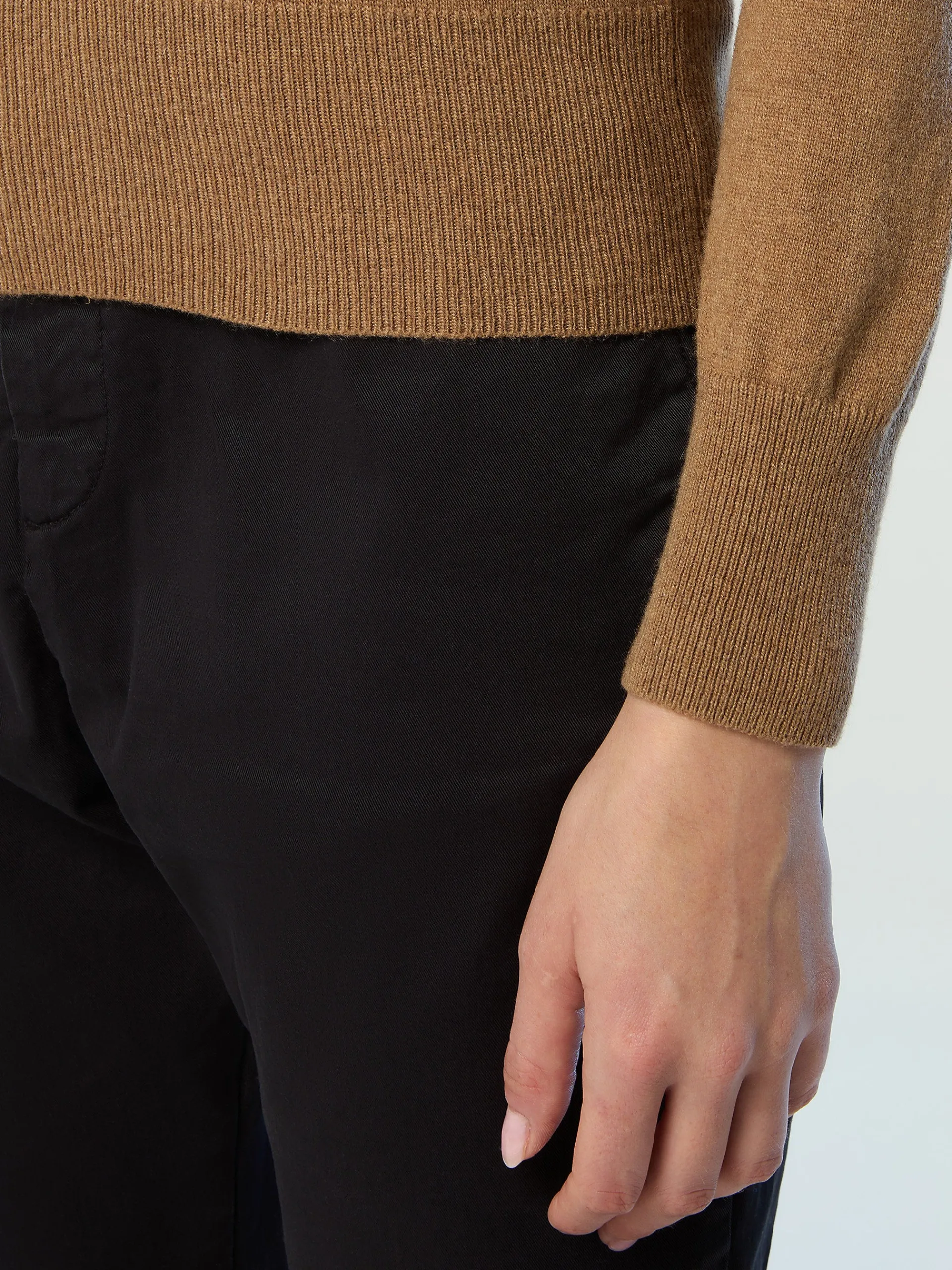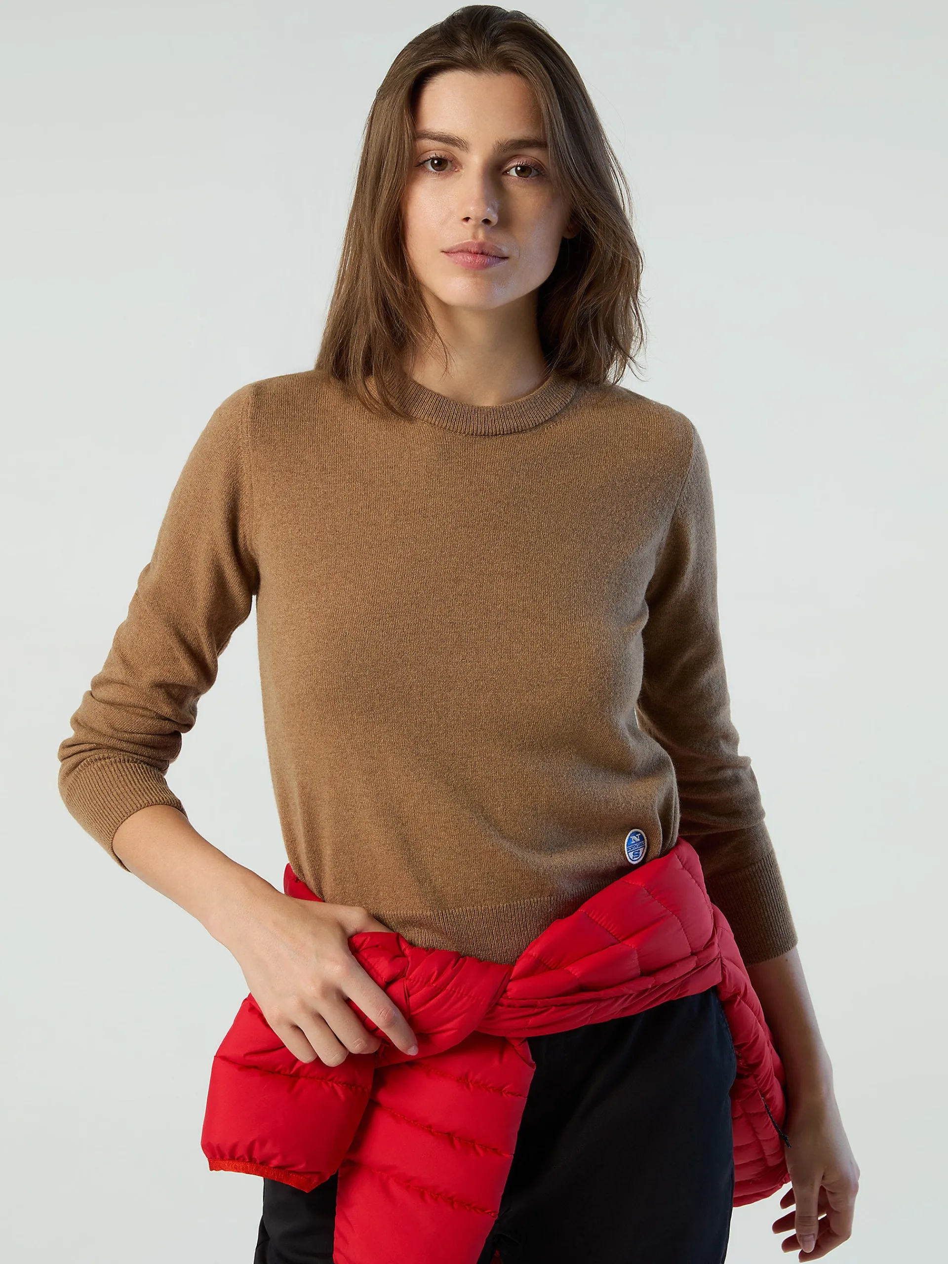 Il maglione da donna che combina design accogliente e ispirazione nautica. Il modello si caratterizza per l'intarsio a maxi righe bicolor che richiama le nostre origini legate alla vela ed è realizzato in misto cashmere riciclato, morbido sulla pelle e attento al pianeta. La sua silhouette rilassata e femminile è rifinita con bordi a costine e logo iconico al fondo.