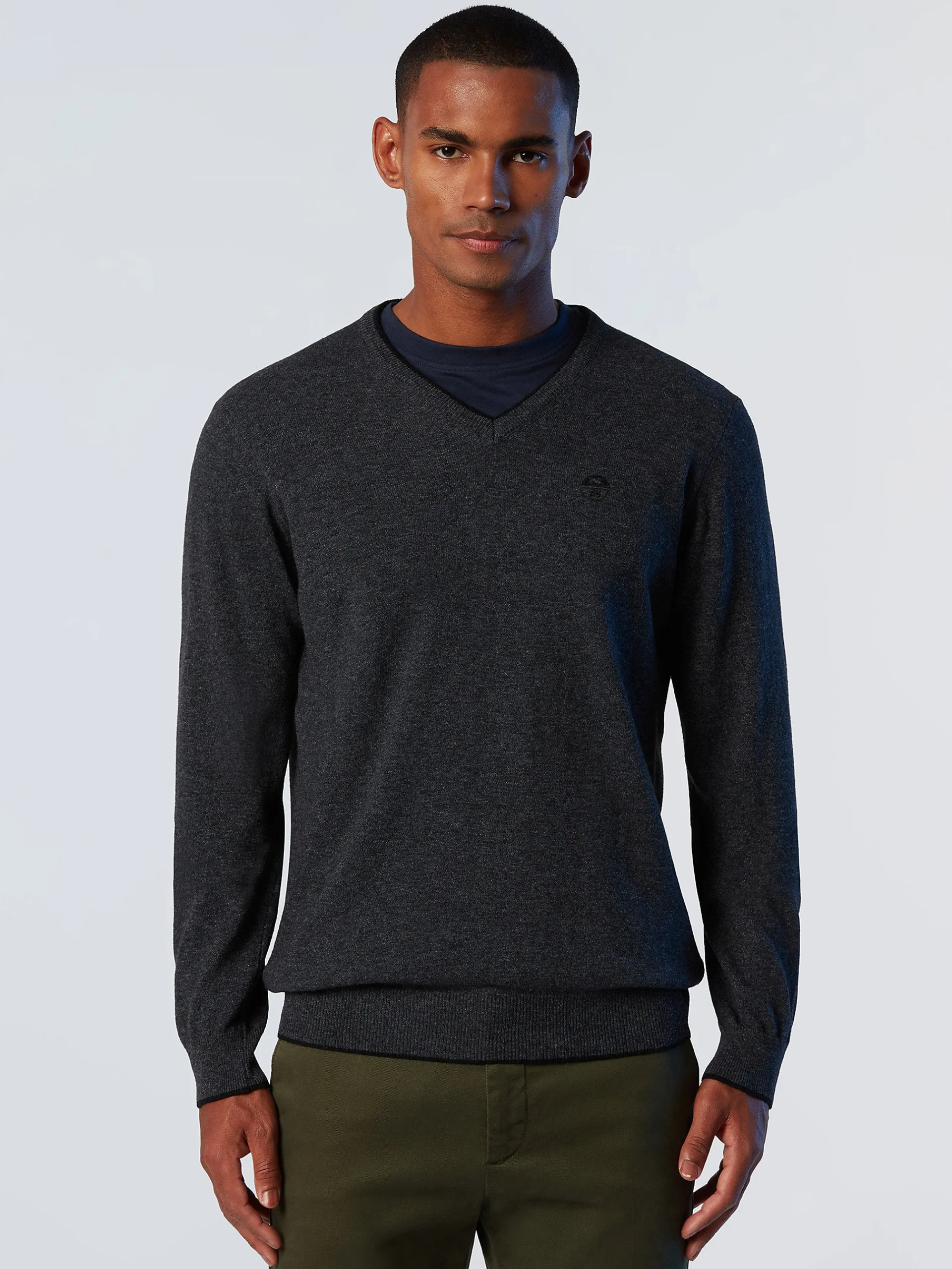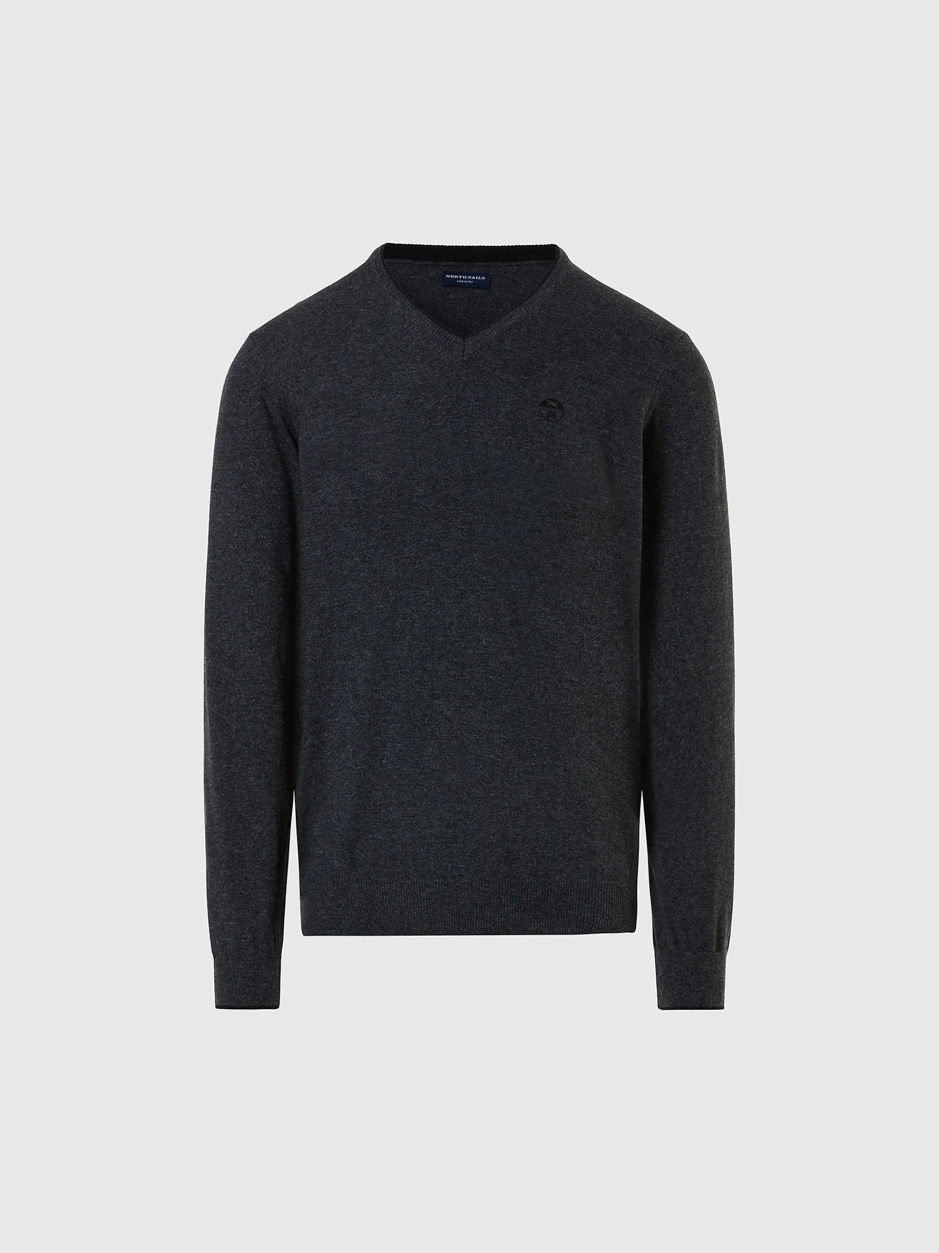 Comodo da indossare sopra una t-shirt o una camicia, questo maglione con scollo a V è una perfetta sintesi di stile contemporaneo e attenzione al pianeta. Il modello è realizzato in misto cashmere riciclato, morbido al tatto e gentile con l'ambiente. Rifinito con bordi a costine e logo ricamato sul petto.