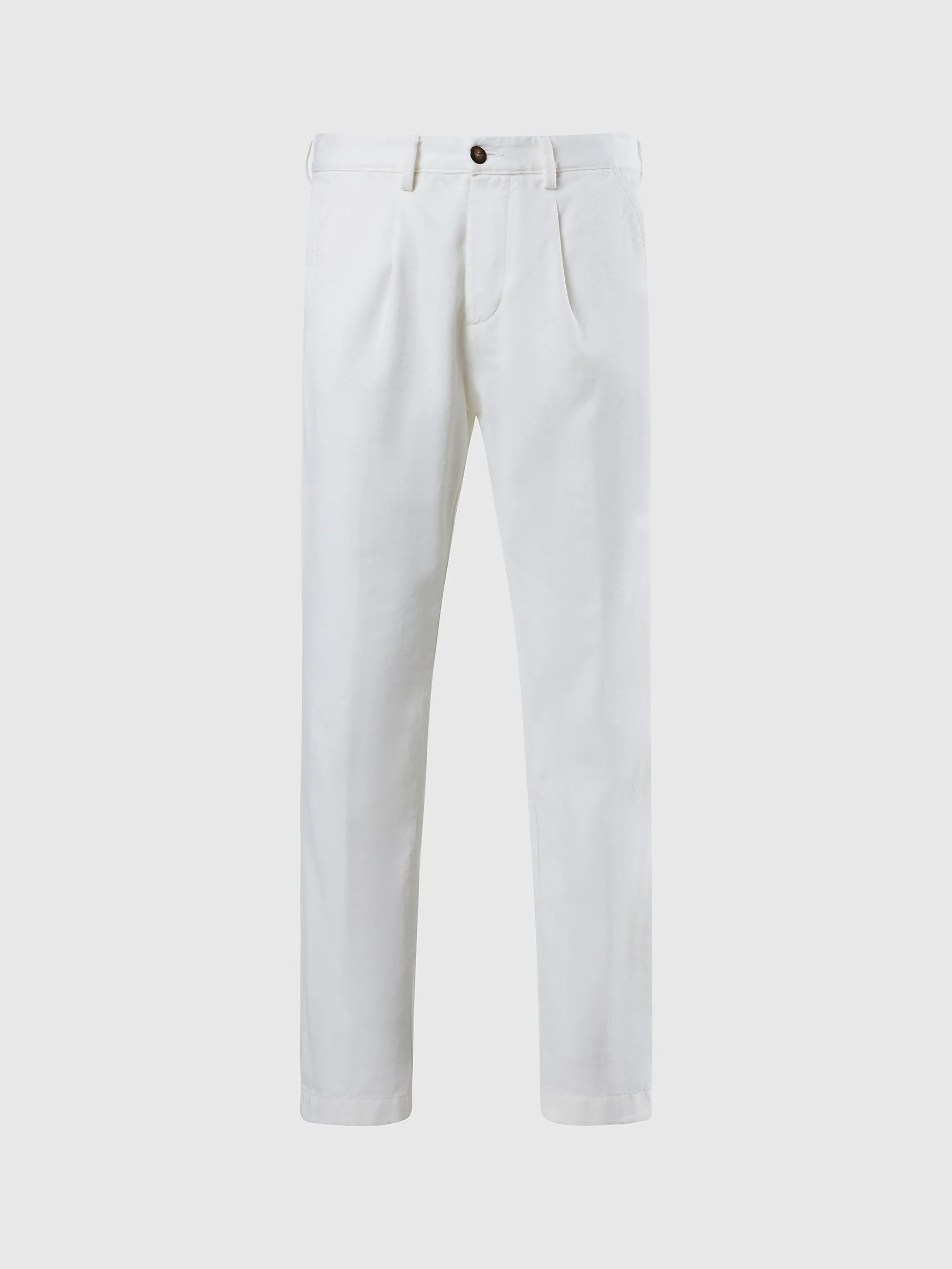 Questi pantaloni chino da uomo sono un essenziale del guardaroba smart casual da indossare in ogni occasione. Il modello è realizzato in twill di cotone organico, espressione del nostro impegno positivo per il Pianeta. Si caratterizza per le eleganti pinces sul davanti e il logo ricamato tono su tono sopra la tasca posteriore.