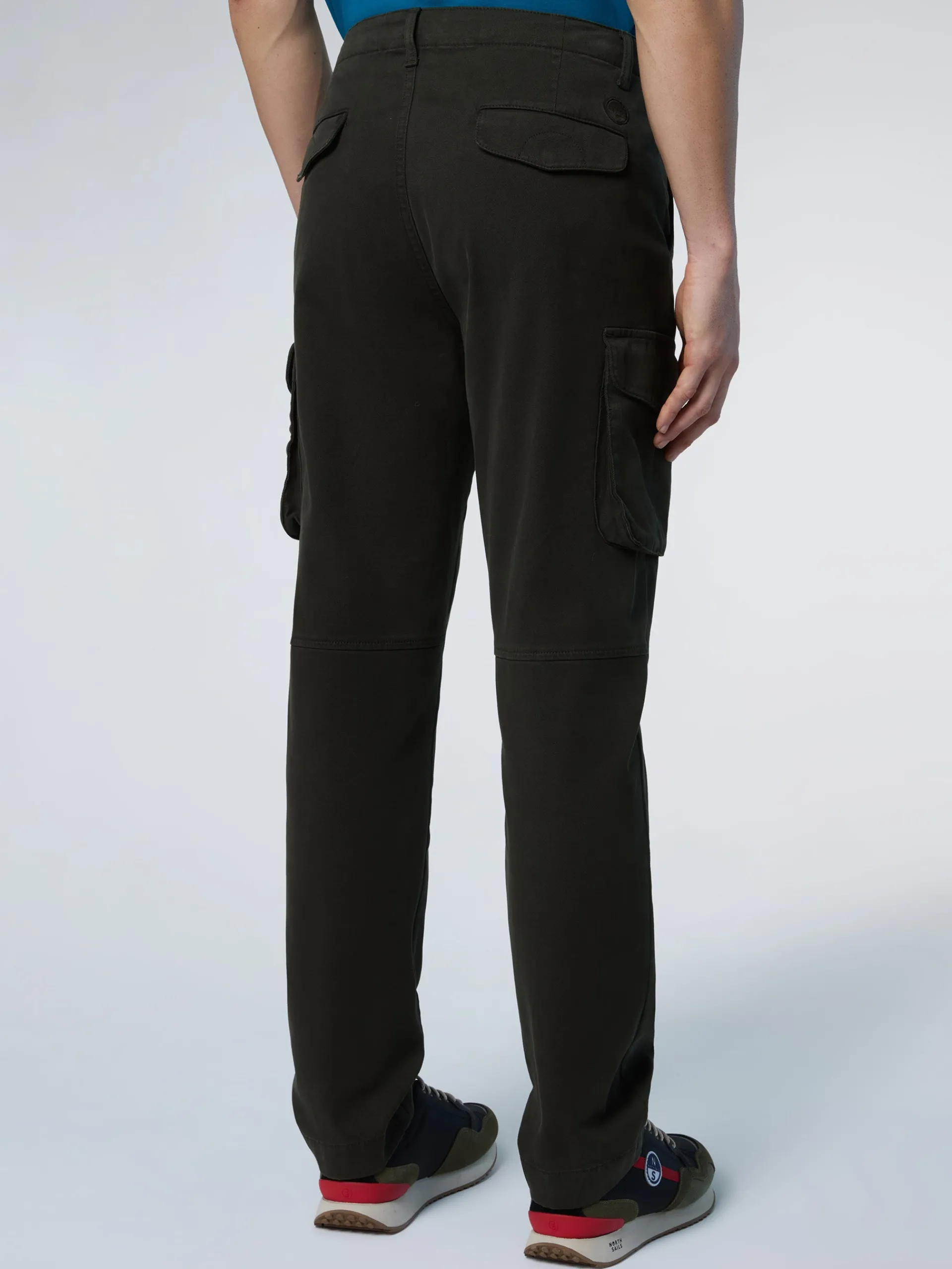 Questi pantaloni cargo combinano ricerca estetica e spirito funzionale e diventano l'essenziale raffinato del guardaroba quotidiano. Il modello è realizzato in gabardina di cotone organico che dimostra il nostro impegno nella ricerca di materiali rispettosi del pianeta. Rifiniti con diverse tasche utility e la patch North Sails tono su tono sul retro.