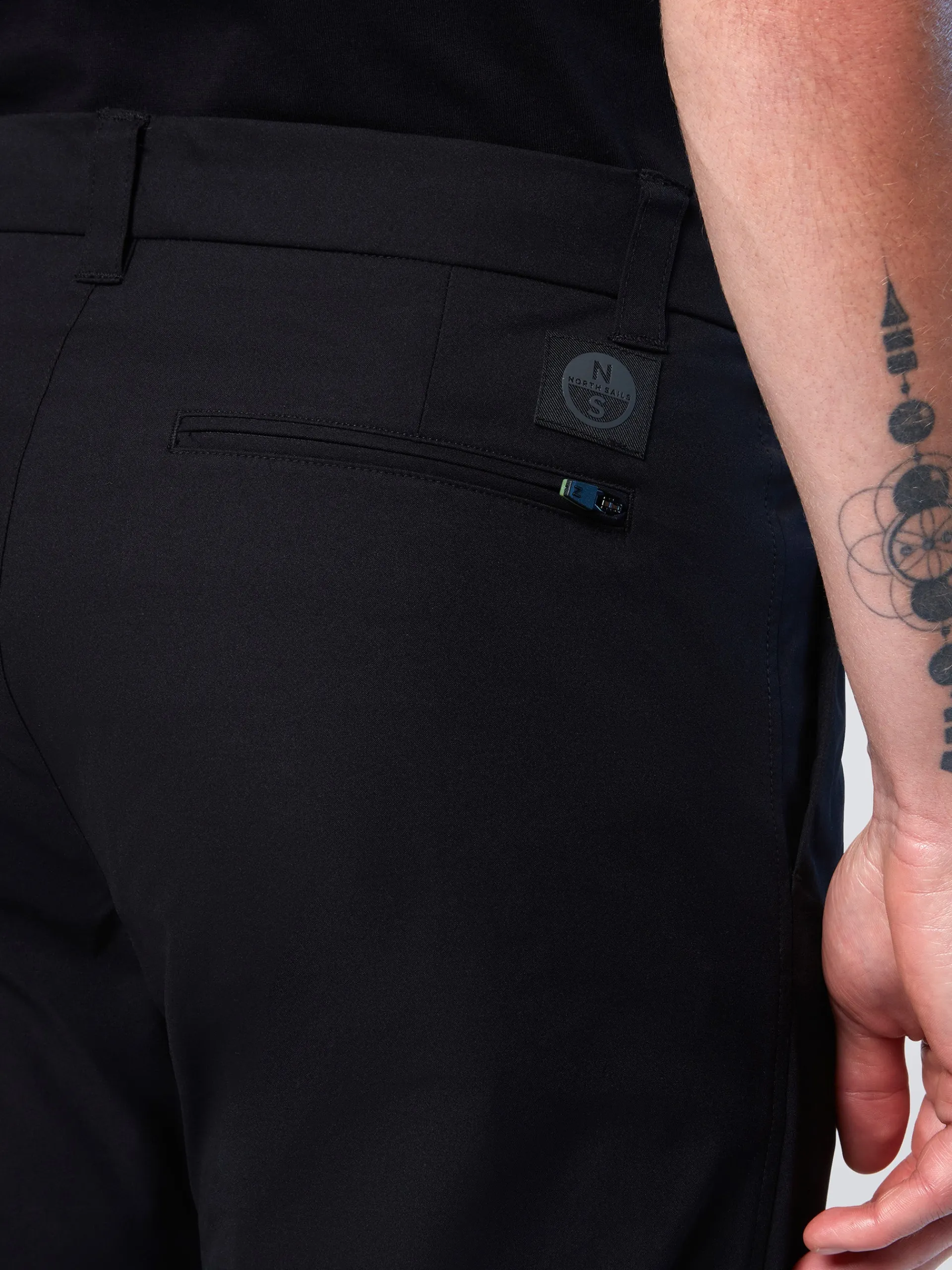 I pantaloni Black Arrow sono un mix perfetto di eleganza e funzionalità. Il modello reinterpreta il design del classico chino con pinces ed è realizzato in gabardina riciclata stretch, flessibile in 2 direzioni per la massima libertà di movimento. Si caratterizza per l'anello portachiavi sul fianco e la tasca con zip per custodire piccoli essenziali.