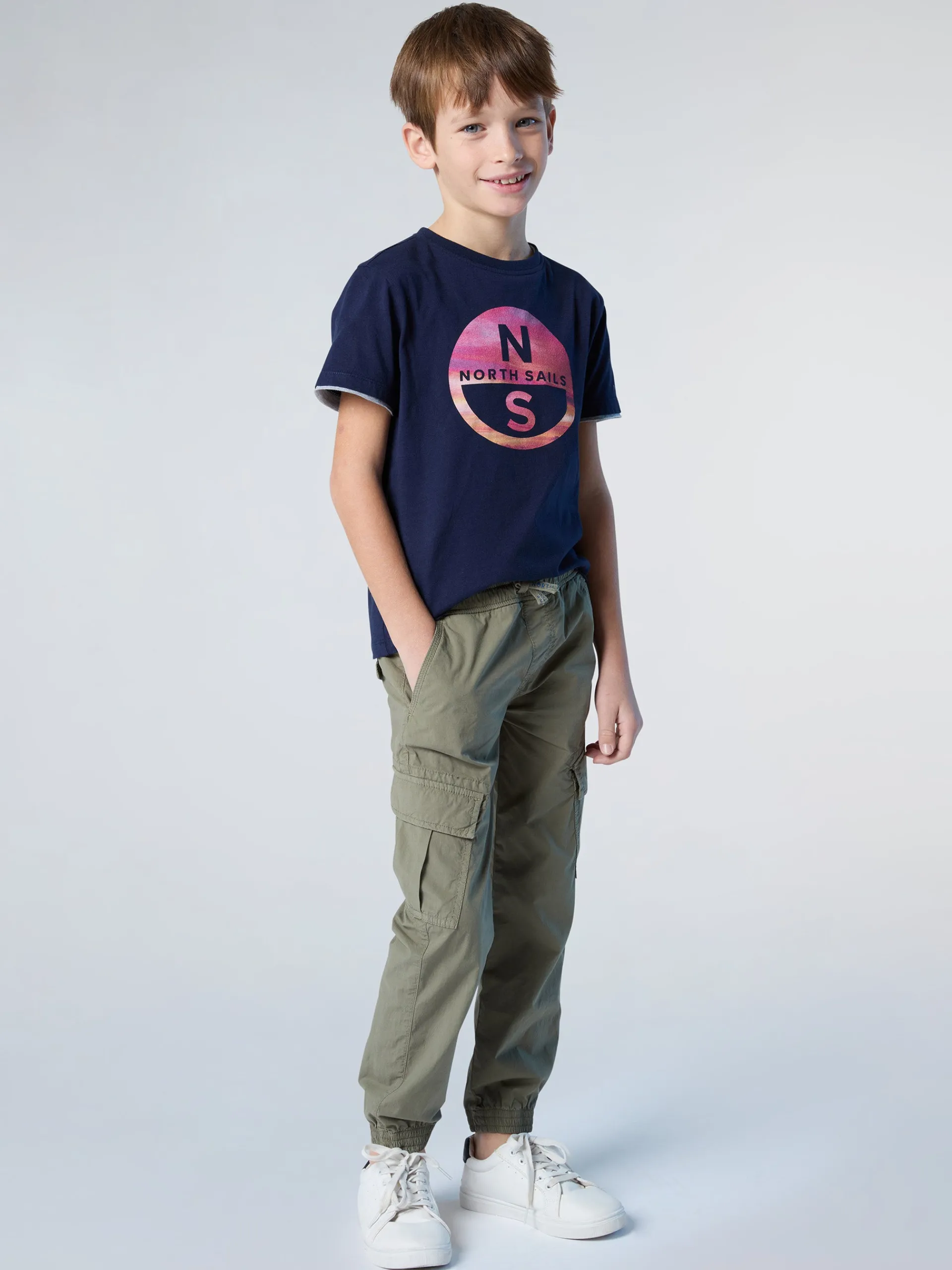 Perfetti per il viaggio e i look del weekend, questi bermuda cargo da bambino hanno inserto elastico in vita e coulisse per la massima libertà di movimento. Il modello è realizzato in popeline stretch di cotone organico per contenere le emissioni nocive e il consumo di acqua. I dettagli logati danno un distintivo tocco North Sails.
