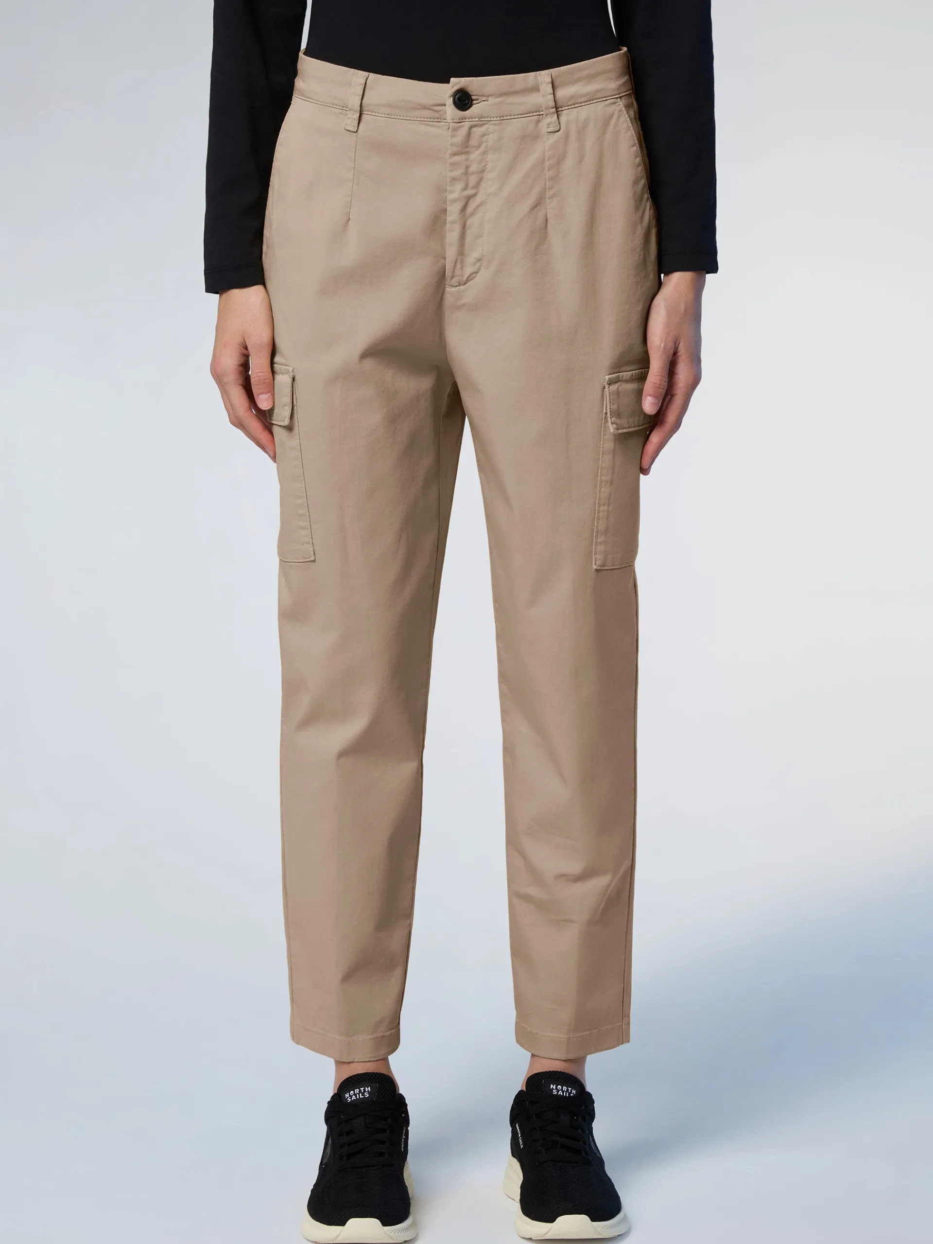 I pantaloni cargo North Sails uniscono ispirazione workwear e attitudine sofisticata. Il modello è realizzato in gabardina di misto cotone organico stretch che contribuisce a ridurre le emissioni e il consumo di acqua rispetto alle fibre tradizionali. Una silhouette utility ma femminile con gamba morbida che si ristringe al fondo e le tasche applicate sui lati.