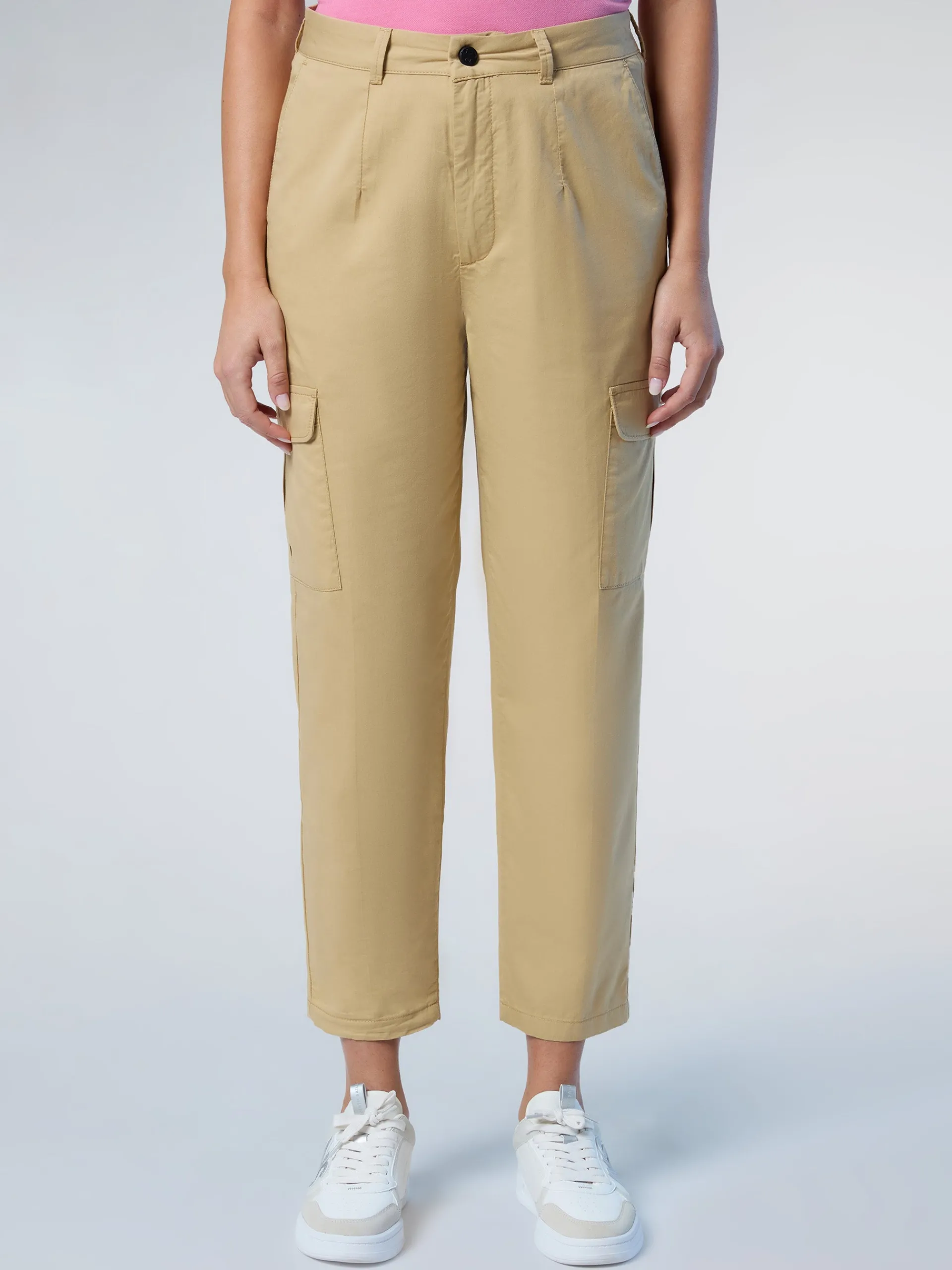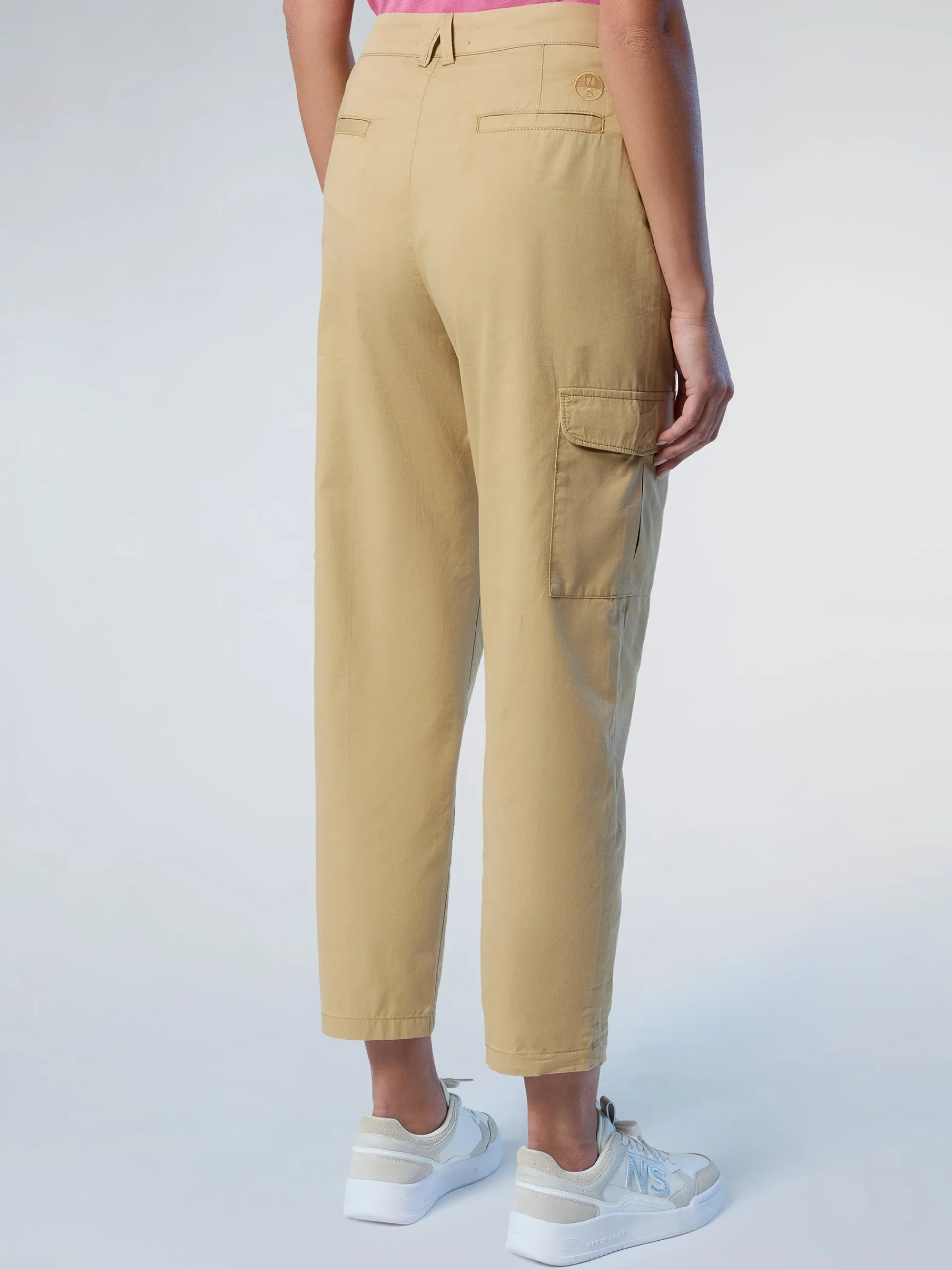 Questi pantaloni cargo da donna combinano ricerca estetica e spirito funzionale e diventano l'essenziale raffinato del guardaroba quotidiano. Il modello esprime il nostro impegno positivo per il pianeta perchè è realizzato in gabardina di misto cotone organico e SeaCell™