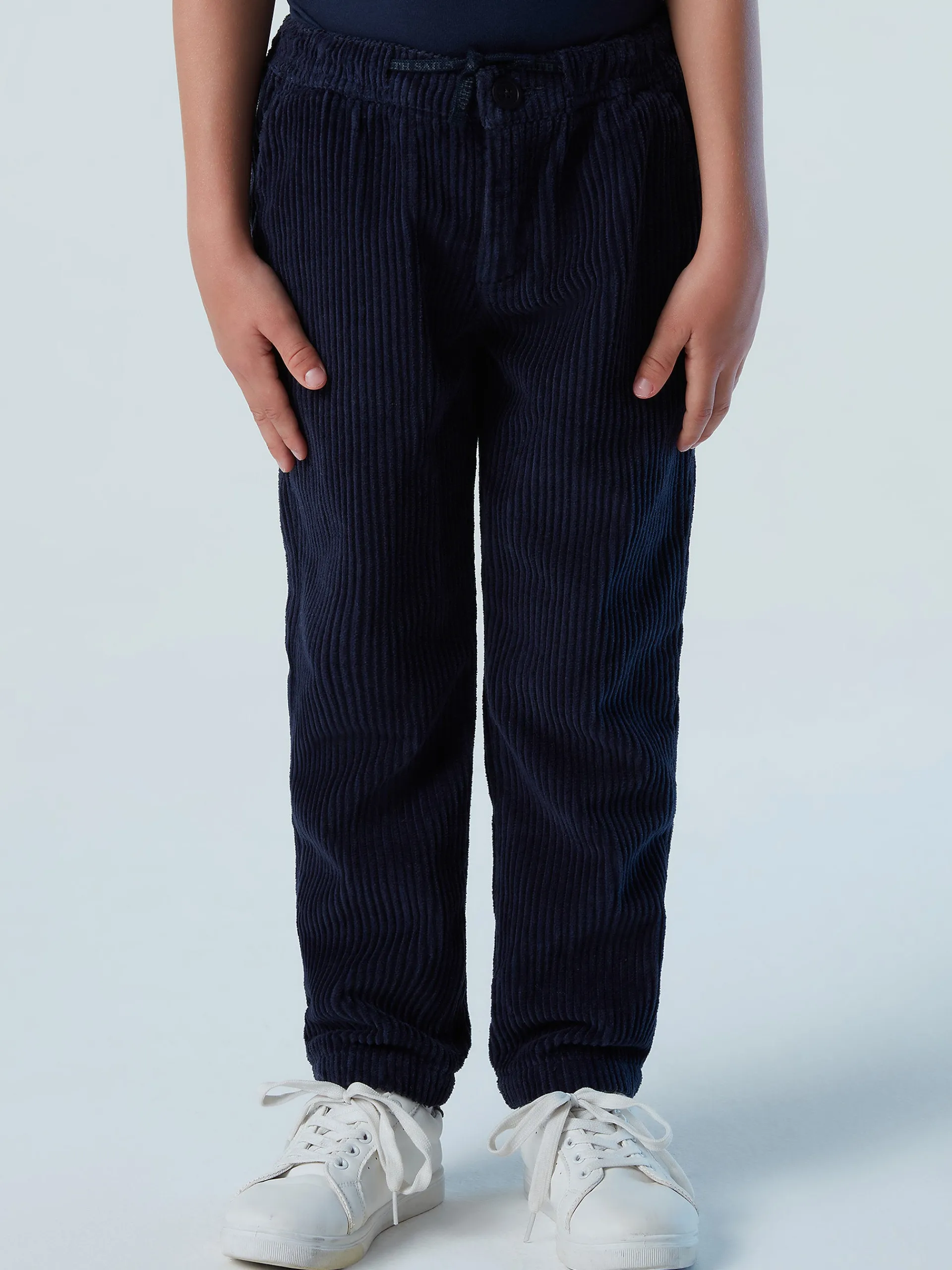 Stile casual ed eleganza funzionale per questi pantaloni chino da bambino. Il modello ha una linea versatile a gamba larga arricchita dalla texture in velluto di cotone organico che riduce le emissioni e il consumo d'acqua rispetto alle fibre tradizionali. La coulisse elastica al punto vita è pensata per il dinamismo dei più piccoli sempre in movimento.