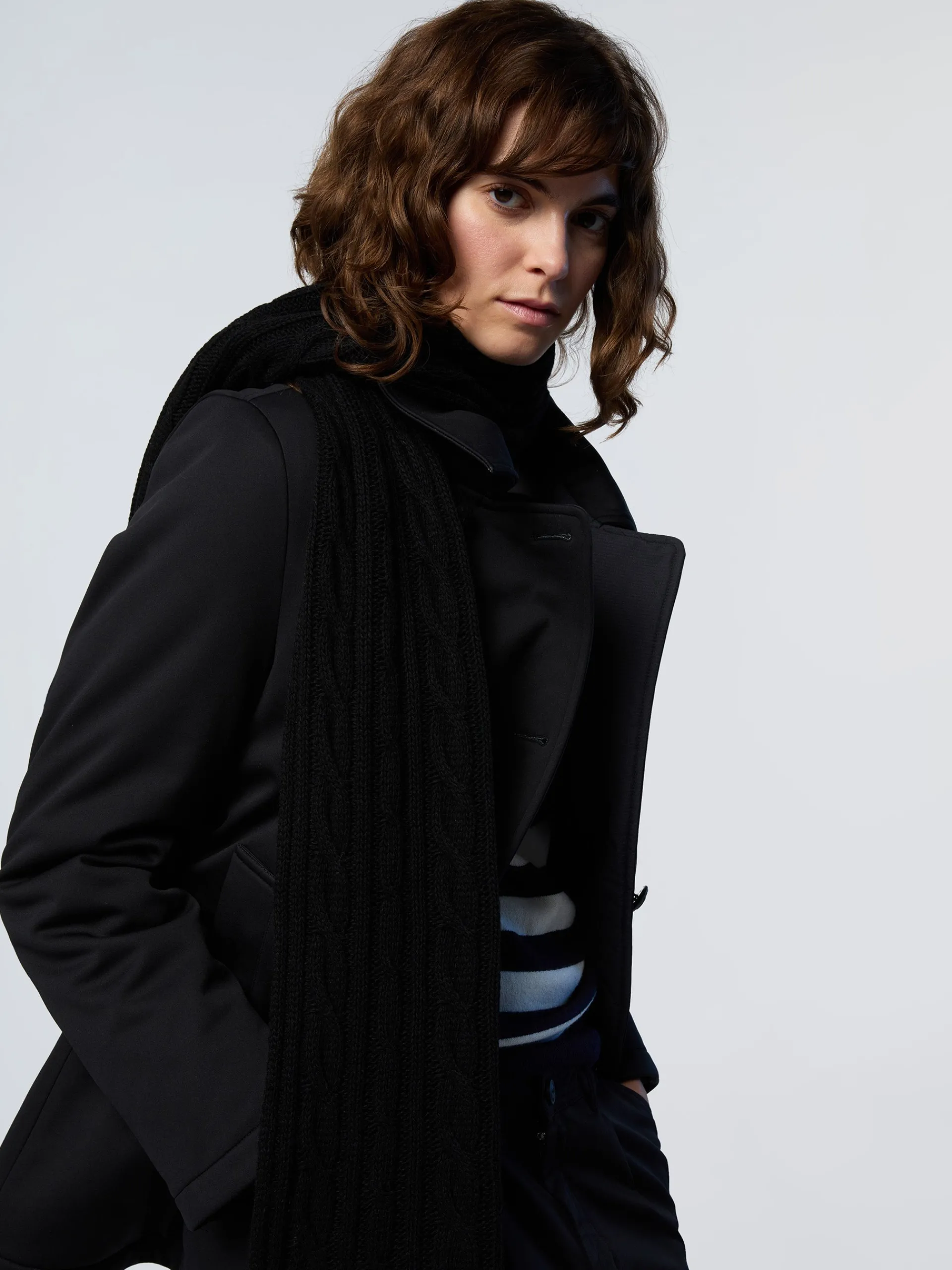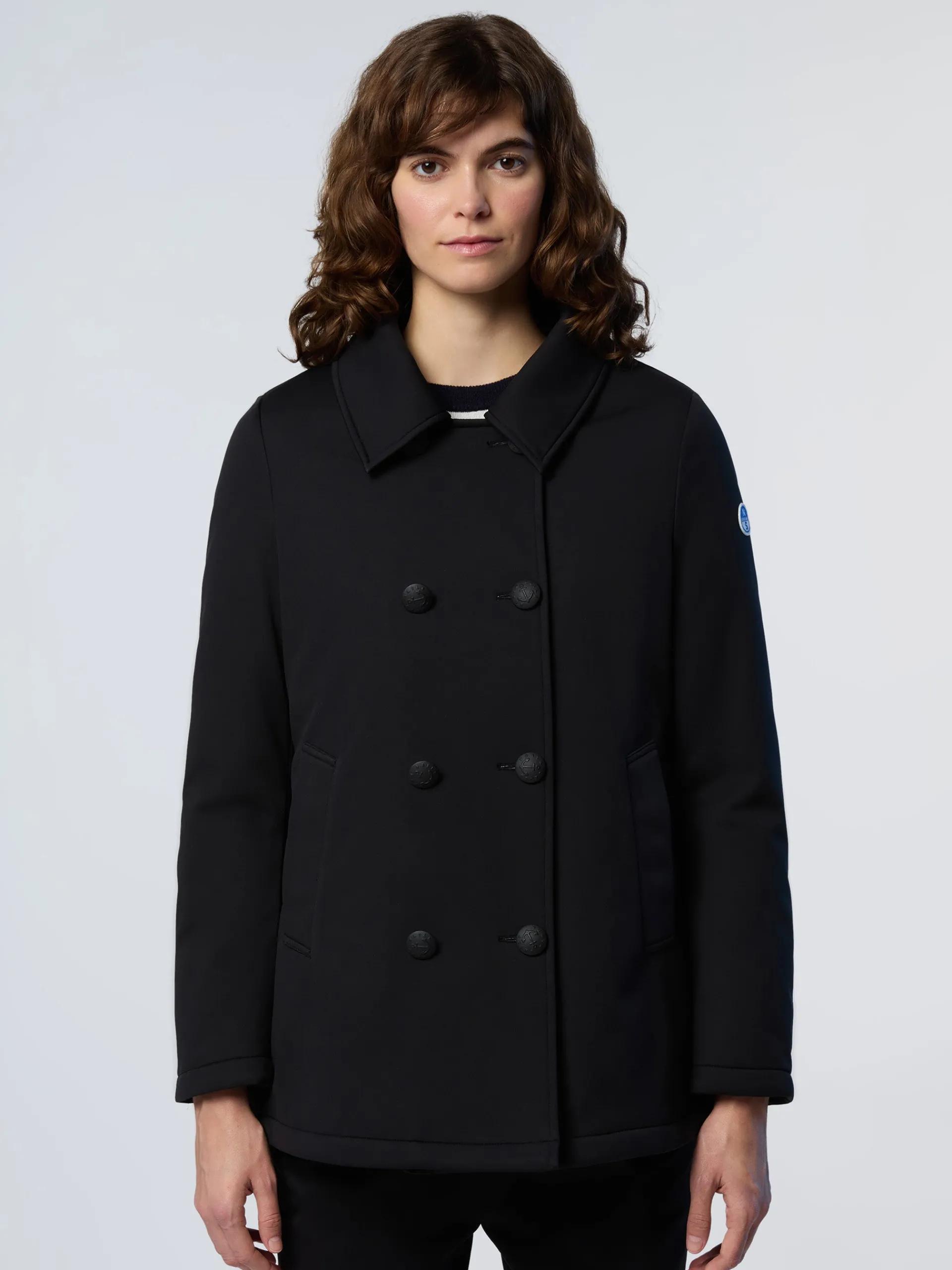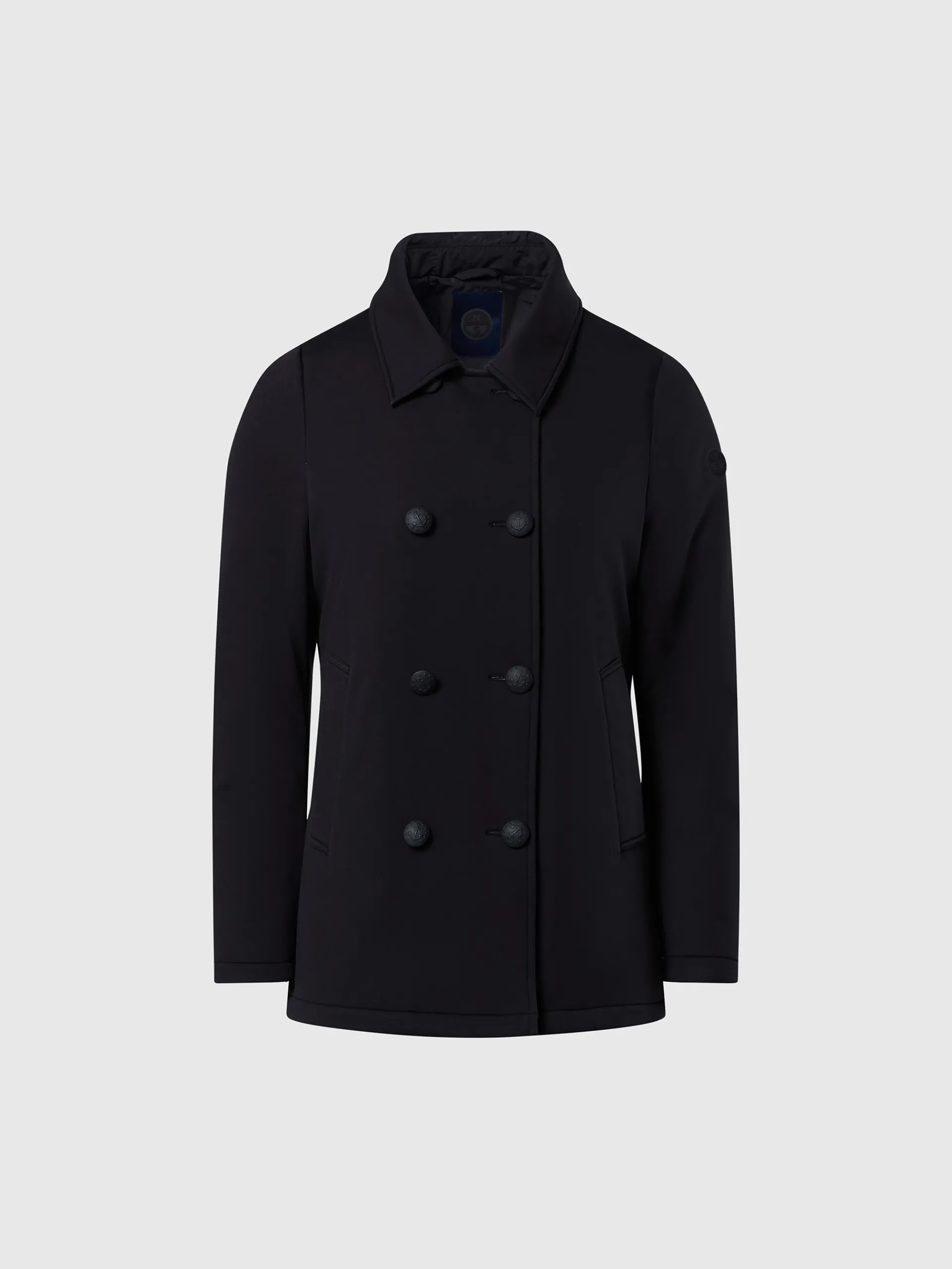 Il peacoat Jessica è l'icona d'ispirazione sailing reinterpretata con un allure femminile e ricercato. Perfetto per il tempo libero e gli appuntamenti cittadini, il modello si caratterizza per il design ad A ed è realizzato in softshell riciclato con un finish laminato resistente all'acqua e in linea con il nostro impegno per il consumo consapevole. La chiusura doppiopetto con bottoni logati e il colletto a camicia danno un tocco raffinato.