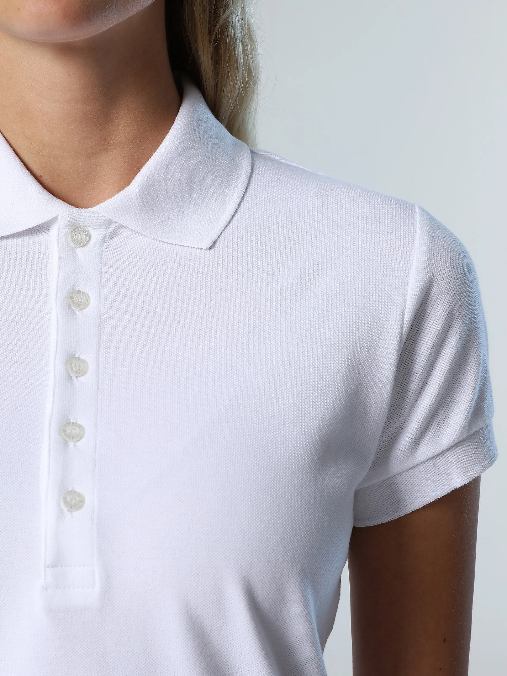 Versatile e pratica dall'attitudine casual: questa polo a maniche corte da donna è perfetta per i look off duty dell'estate. Simbolo dell'impegno positivo per il Pianeta, il modello è realizzato in piquet stretch di cotone organico. La chiusura con bottoni sottile e profonda enfatizza la silhouette femminile del capo.