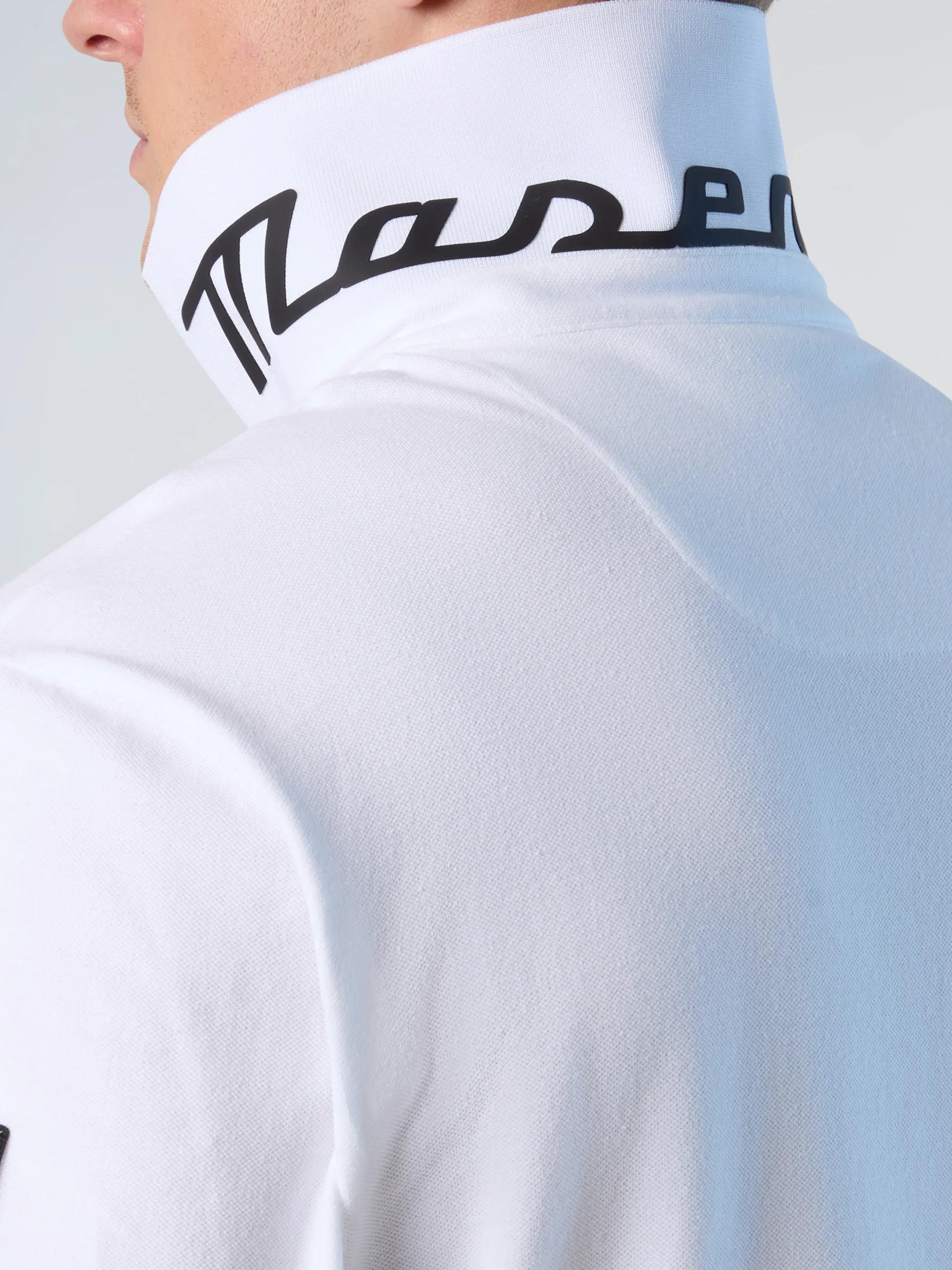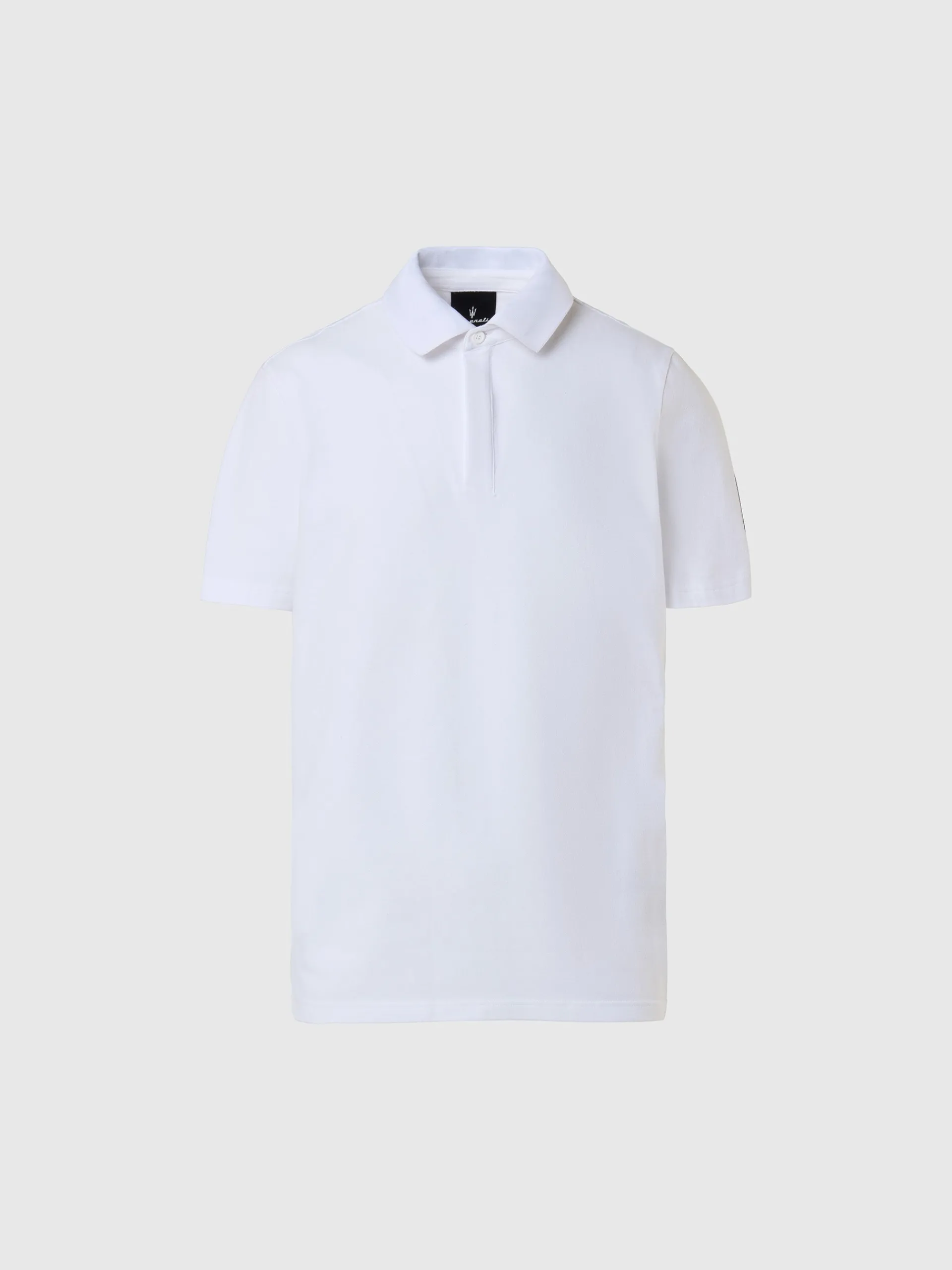 Elegante e sinuosa, proprio come l'iconica supercar: questa polo da uomo fa parte dell'esclusiva collezione Maserati x North Sails. Il modello è realizzato in piquet tecnico estremamente flessibile e fresco sulla pelle, si caratterizza per la chiusura coperta e il look minimal senza cuciture. Impreziosita con il lettering Maserati sotto il colletto e il logo ufficiale della collaborazione sulla manica.